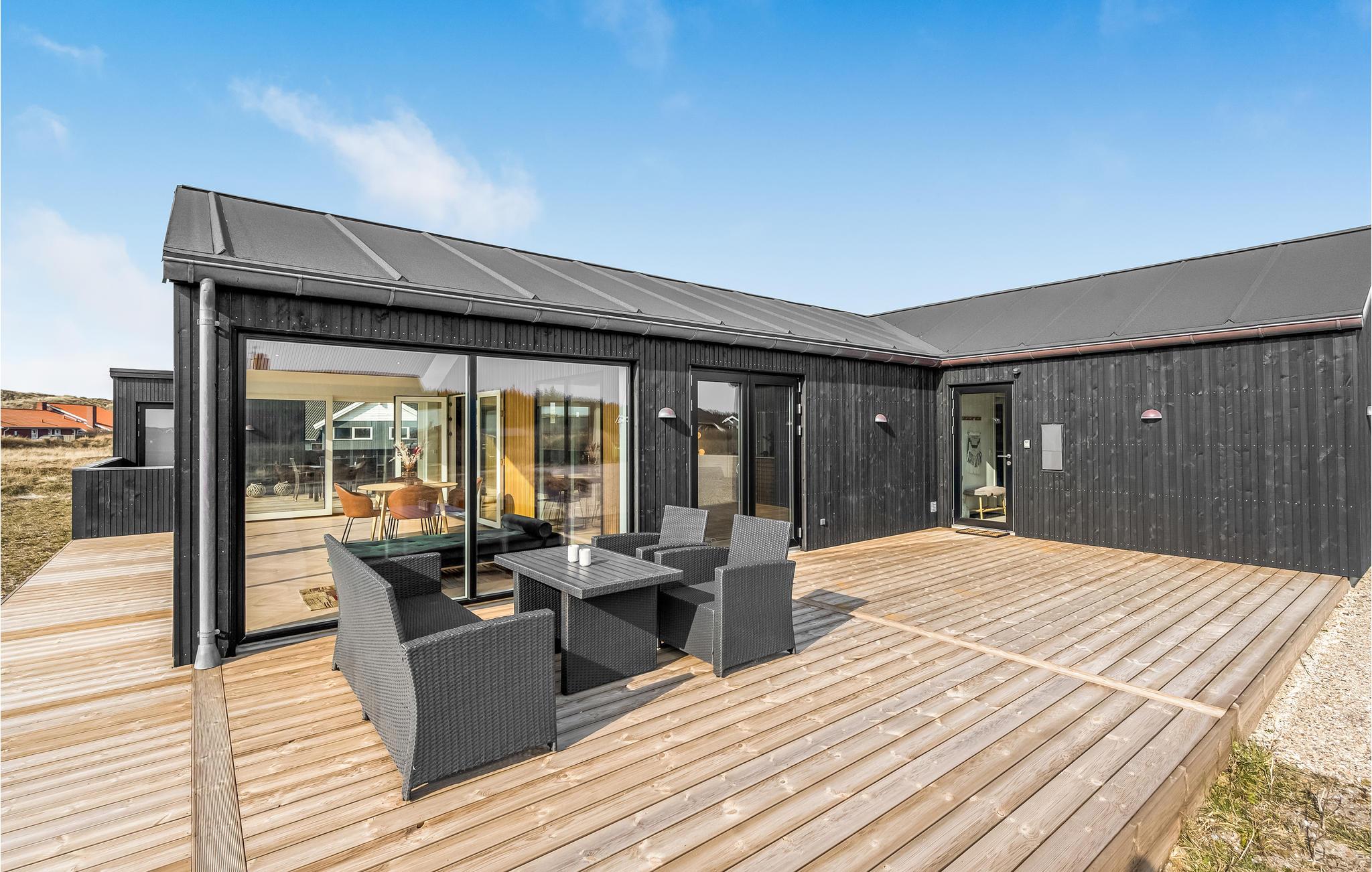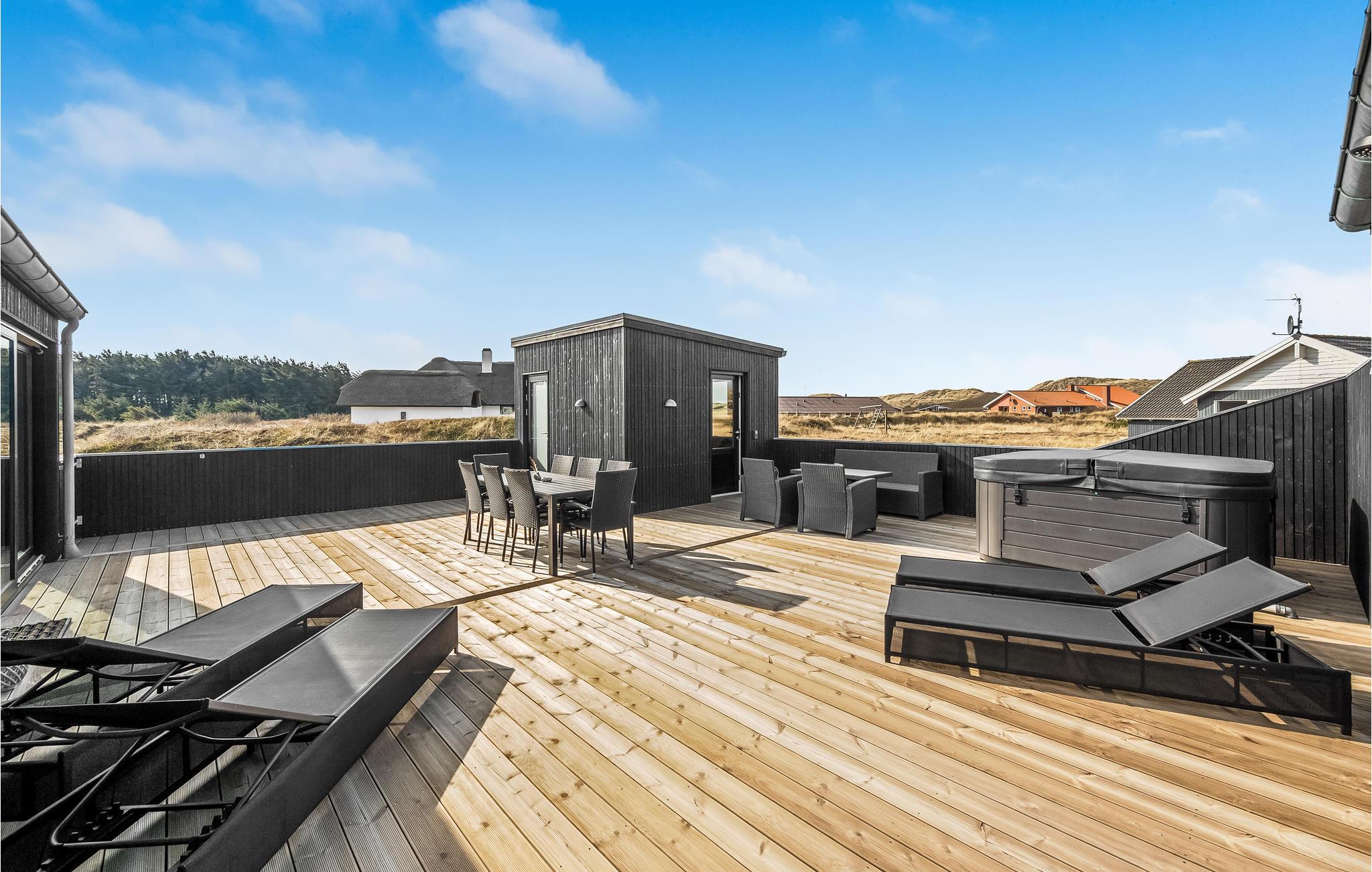 Luksuriøst sommerhus med spa, sauna og aktivitetsrum tæt på Vesterhavet og naturskønne omgivelser.
