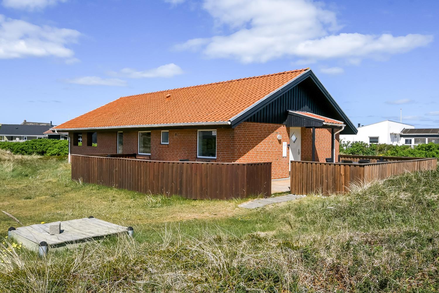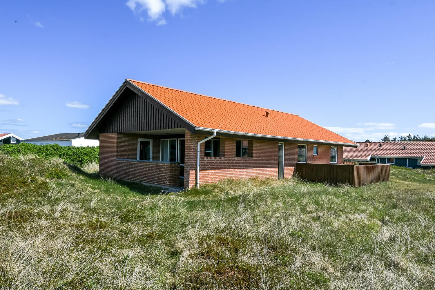 Huset ligger på en ca. 1.358 m2 dejlig grund. Fra stuen er udgang til et helt fantastisk, overdækket terasse. Herudover er der også et dejlig stort terrasseanlæg med gode havemøbler, liggestole og grill som nemt kan flyttes til en plads i solen. Et terrasseanlæg hvor der altid er læ, selv på blæsende dage, og hvor man altid kan nyde udsigten til de høje klitter. En åben naturgrund bekræfter de mange muligheder. Vesterhavet ligger kun 250 fra huset og det er altid en fornøjelse at komme op at se hvordan havet nu "har det". Om sommeren er der fine bademuligheder og børnene kan få mange timer til at gå med at lave sandborge eller små dæmninger i sandet, mens det voksne kan ligge og slappe af. Her er nemlig altid masser af plads, så man føler man får stranden for sig selv. Der er 700m til nærmeste indkøbsmulighed på torvet i Vejlby Klit Vrist, som dog kun har åbent i sæsonen. Dette helt specielle og meget charmerende feriehus byder på en ferieoplevelse i særklasse uanset årstid.