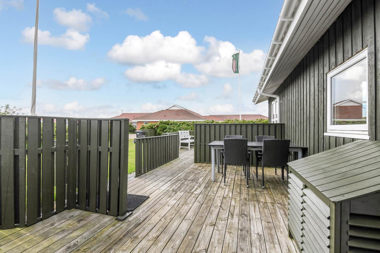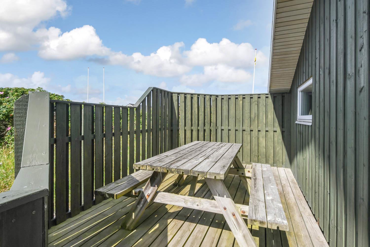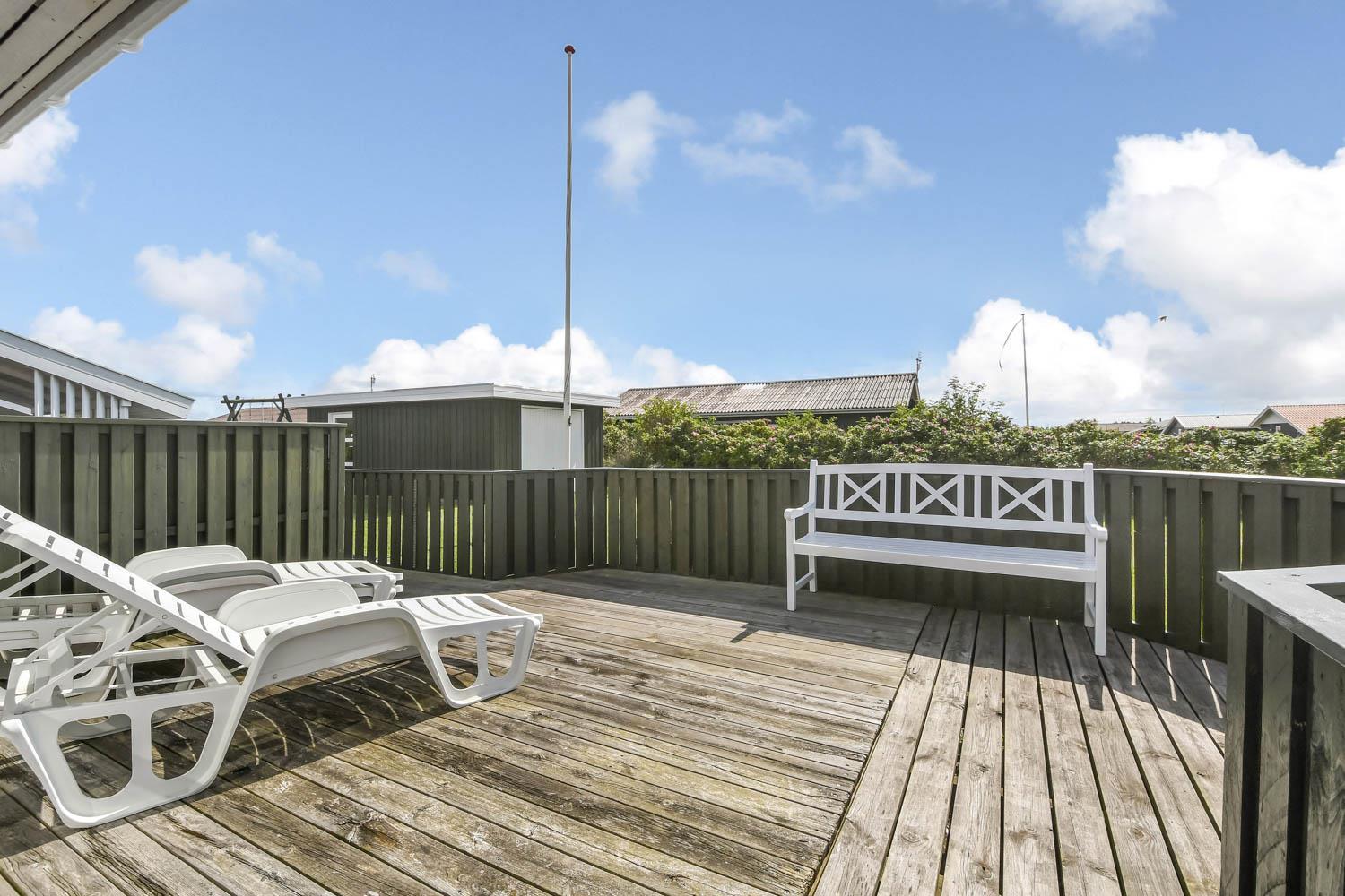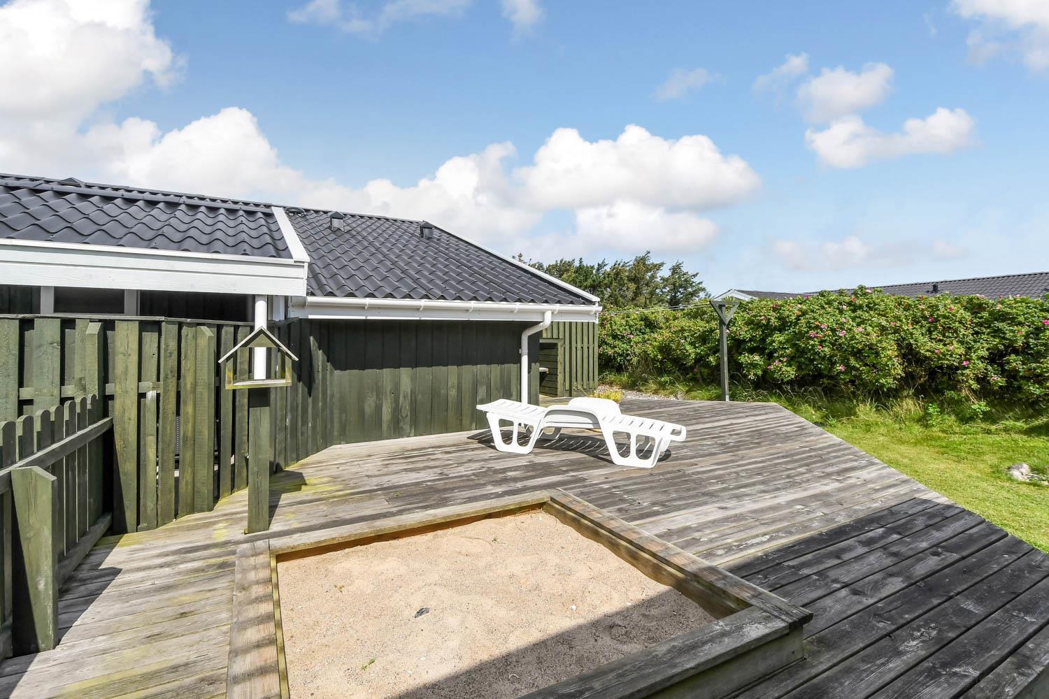 Huset ligger på en ca. 900 m2 velholdt grund. Fra opholdsstuen er der udgang til dejlig, afskærmet, vestvendt terrasseanlæg med havemøbler, liggestole og grill. Til børnene er der en sandkasse. Desuden er der garage. I Vejlby Klit og omegn er der rigtig gode muligheder for at cykle, vandre eller løbe en tur. I sæsonen kan du hente morgenbrød, købmandsvarer eller måske invitere familien ud at spise og det hele ligger kun ca. 150m fra huset ligesom der kun er ca. 400m til Vesterhavet og ca. 550 m til Ferring Sø. Nyd solen, hinanden, en god grillaften eller gå en tur med hunden i området. Dette hus er et besøg værd på alle årstider. Indenfor kort køre afstand nås både den aktive handelsby i Lemvig med flere specialbutikker eller den unikke fiskerby Thyborøn som udover den aktive fiskerihavn også byder på badestrand og op til flere aktivitetstilbud, som alle er et besøg værd.