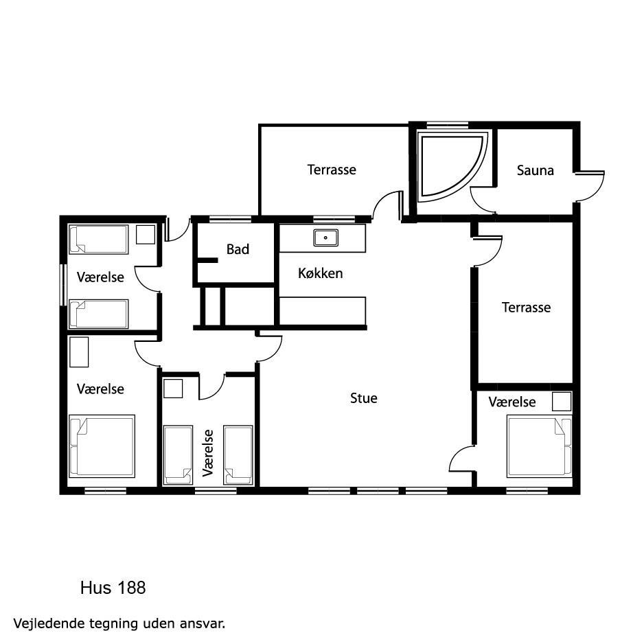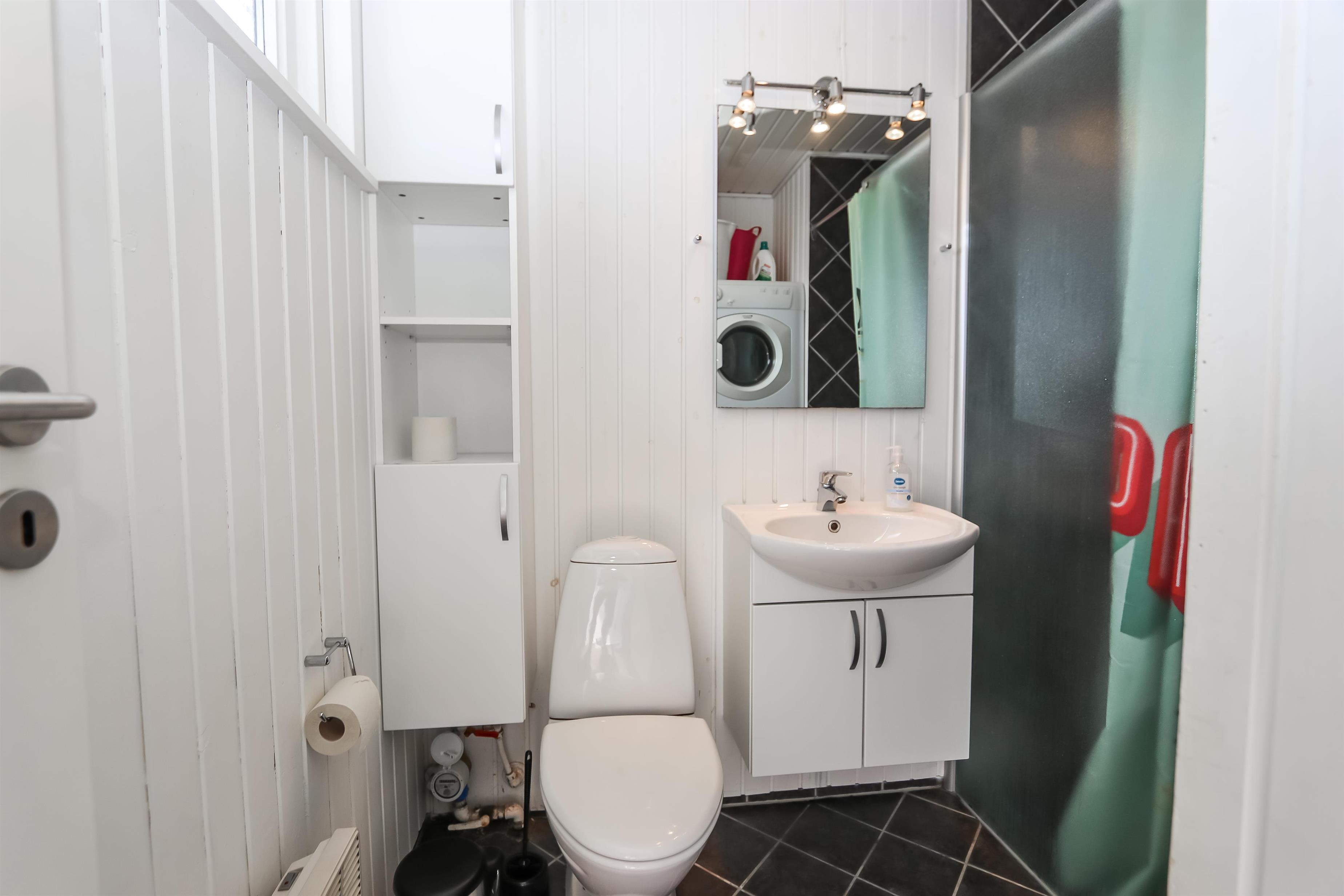 Huset har et badeværelse med bruser, håndvask og toilet. Herudover er der også et wellnessrum med spa og direkte adgang til husets sauna. huset har 4 soveværelser bestående af 2 soveværelser med dobbeltsenge og et værelse med 2 enkeltsenge og et enkelt værelse med een seng. Hvis man er er her i en længere ferie eller har brug for at vaske tøj hvis man for eksempel er fysisk aktiv, som området giver mange muligheder for. Ikke ryger hus.