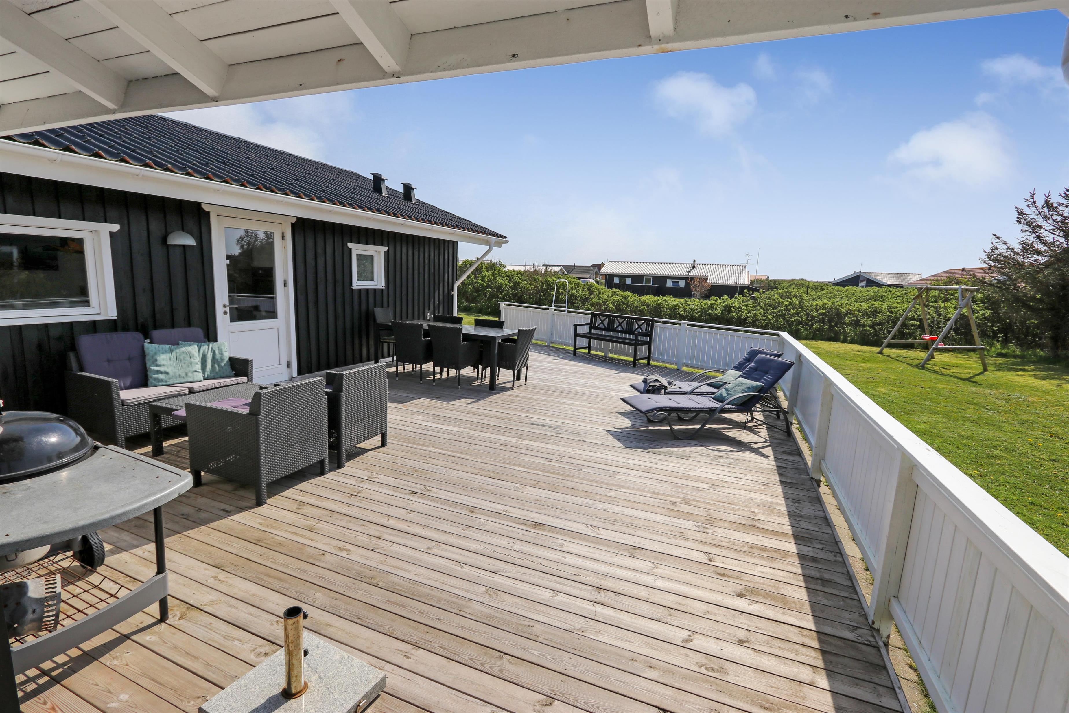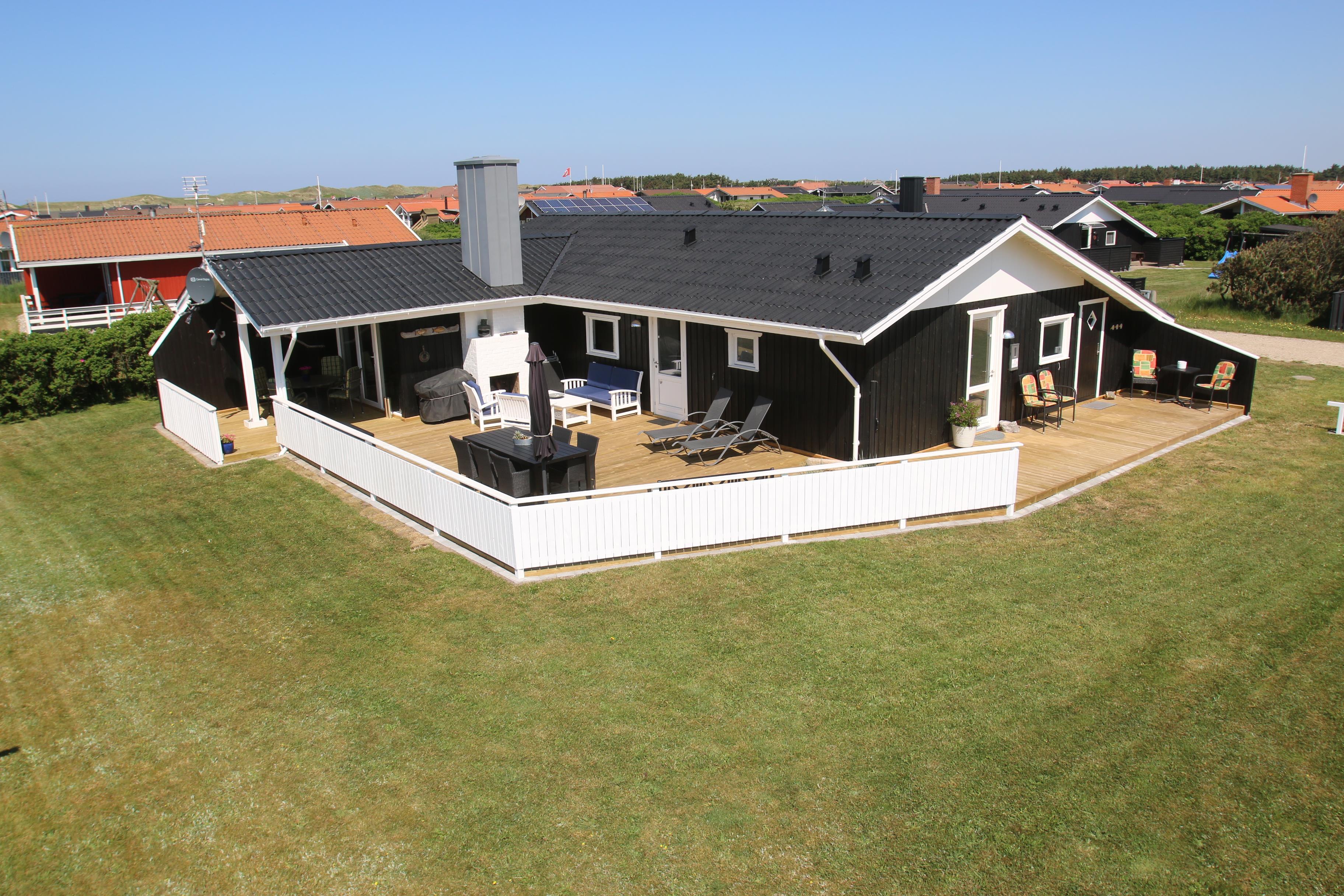 Huset er beliggende på en 950 m2 naturgrund blot 200 m fra Ferring sø og Vesterhavet er blot 450 m fra huset. Der er en stor delvis overdækket og delvis indhegnet terrasse med mange gode muligheder for at finde læ eller en plads i solen. Der er havemøbler, solvogne og gasgrill som kan flyttes rundt efter behov. Til de små gæster er der en gynge. Huset beliggenhed i Vejlby Klit byder på mange udendørs aktiviteter, rundt om Ferring Sø er der anlagt en sti så man kan vandre en tur hele vejen omkring søen og opleve naturen på nærmeste hold. Området indbyder også til gode cykelture, der er anlagt cykelsti så man kan cykle en tur til Thyborøn og hjemturen kan så evt. foregå med VLTJ som du har gratis kørsel med som gæst i dette hus. Nyd også nogle gode timer ved Vesterhavet som hver dag byder på nye oplevelser. Ønsker I at shoppe eller gå på museum så er der kun ca. 15 min. Kørsel i bil til Lemvig som er bakker og bølgernes land, en gammel handelsby med en helt ny havnepromenade, her finder I også flere gode restauranter samt butikker. Dette feriehus er det perfekte valg, hvis I ønsker at bo i Vejlby Klit i et lækkert velholdt feriehus.
