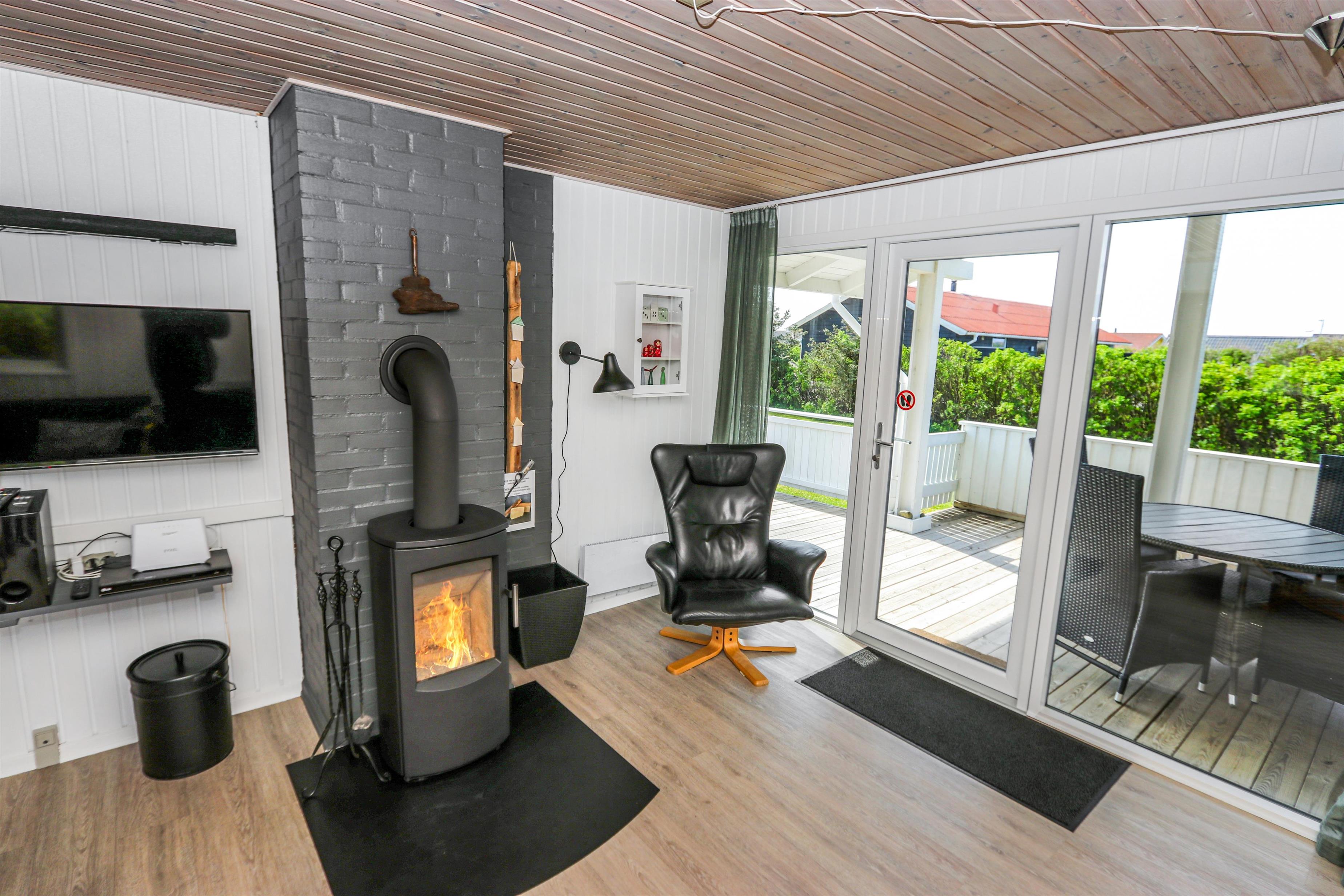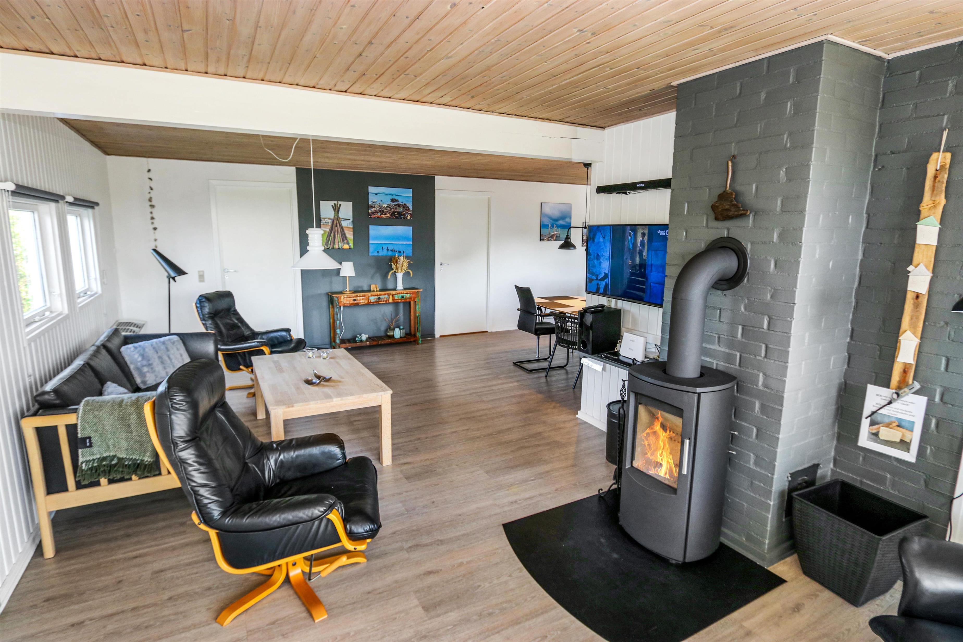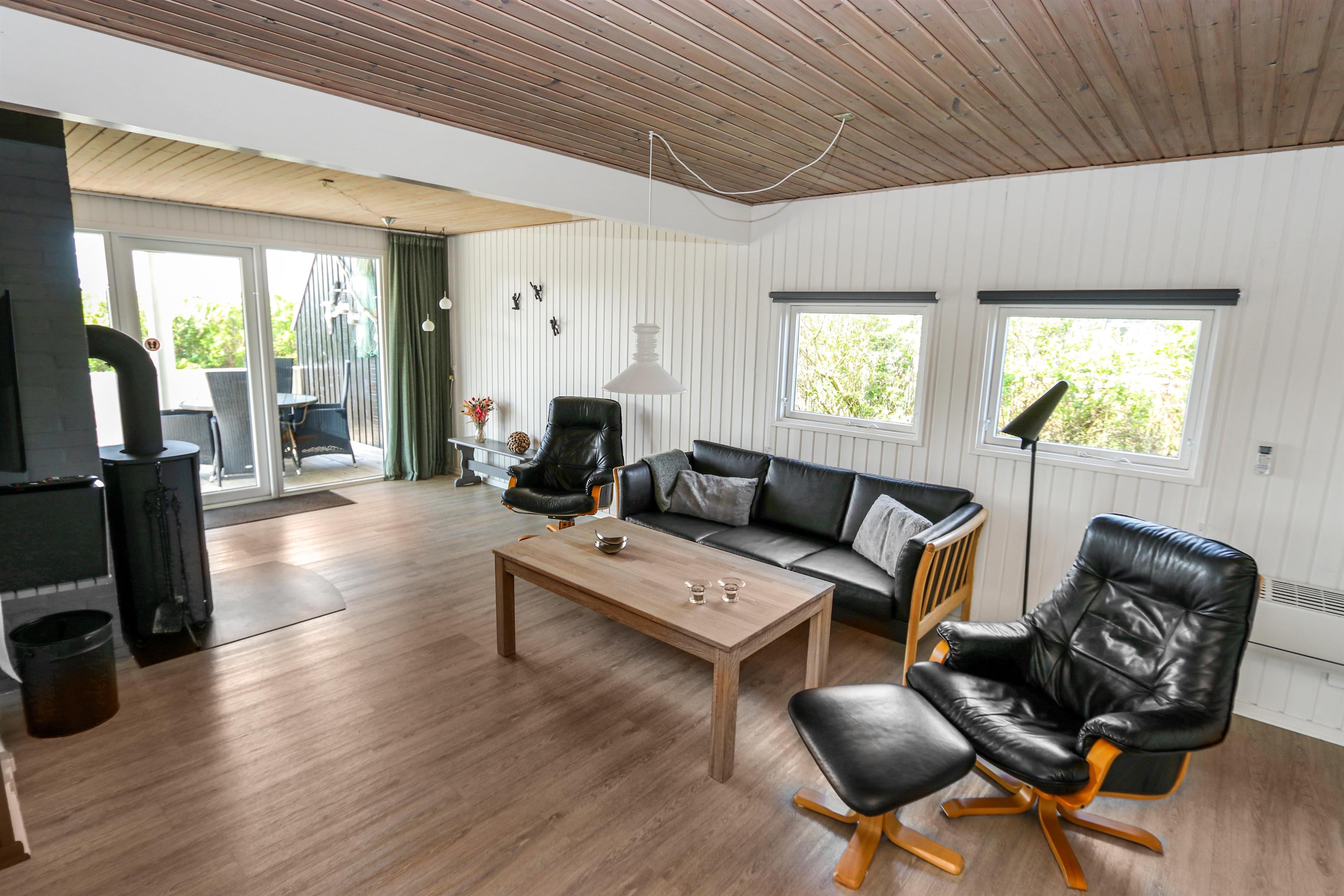 Dette feriehus er meget velholdt og godt indrettet. Bryggers med vaskemaskine og tørretumbler. Der er en kombineret stue og køkken som er med laminatgulv. Stuen er meget hyggeligt indrettet med lædermøbler, TV med danske og tyske programmer og bluetooth radio samt en brændeovn som giver en behagelig varme uanset årstid. I huset er der også en varmepumpe og sammen med brændeovnen er de begge medhjælpende til en lavere forbrugsafregning. Tæt på køkkenet er spisebordet placeret. Huset råder over 3 soverum: 1DS + 1DS + 2S. Til de mindste gæster er der barneseng og barnestol og babybadekar, der er trægulv i soverummene. Det moderne køkken er veludstyret med alt i service og kogegrej, der er glaskeramisk komfur, emhætte, køle-/fryseskab, opvaskemaskine, mikroovn. Flot badeværelse med toilet, håndvask, bruser samt gulvvarme. 1 husdyr er tilladt. Ikke ryger hus. Dette hus udlejes ikke til ungdomsgrupper.