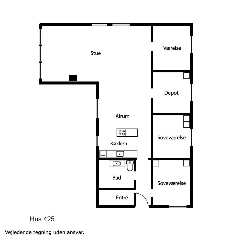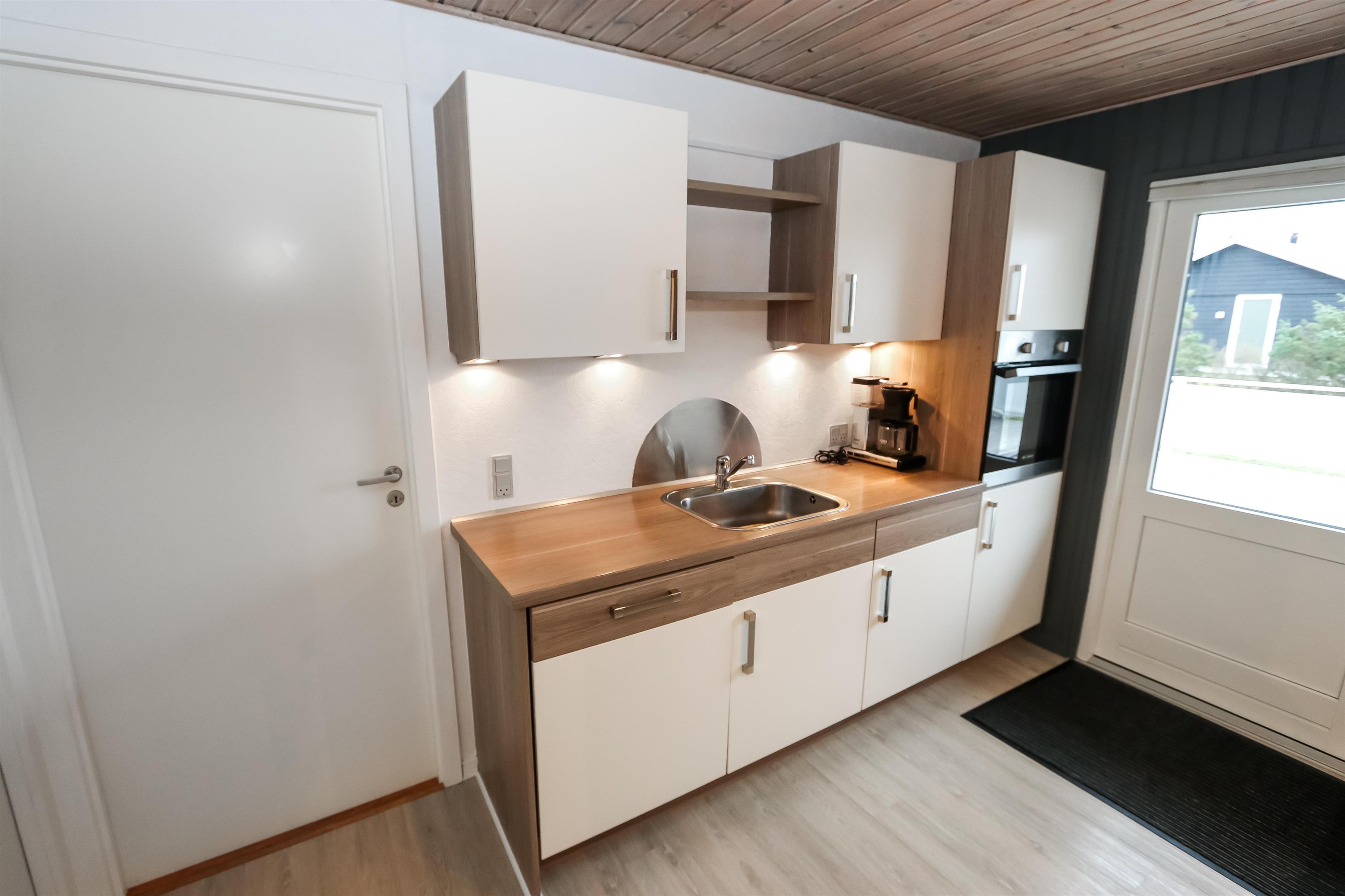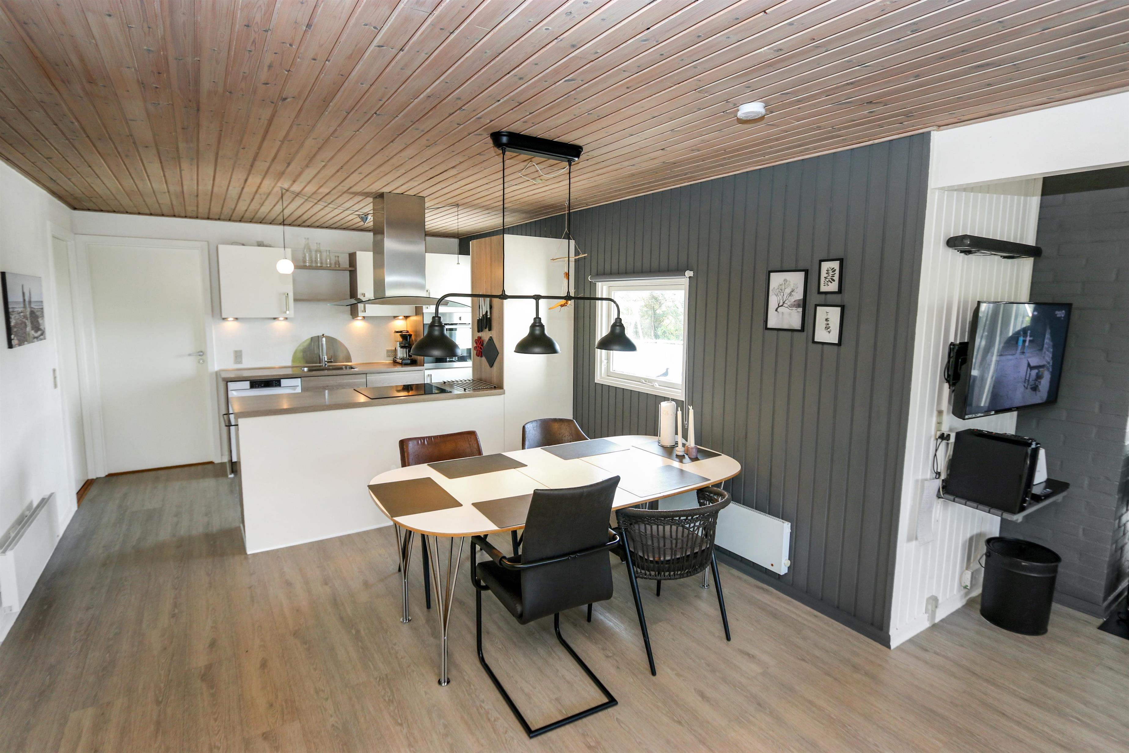 Dette feriehus er meget velholdt og godt indrettet. Bryggers med vaskemaskine og tørretumbler. Der er en kombineret stue og køkken som er med laminatgulv. Stuen er meget hyggeligt indrettet med lædermøbler, TV med danske og tyske programmer og bluetooth radio samt en brændeovn som giver en behagelig varme uanset årstid. I huset er der også en varmepumpe og sammen med brændeovnen er de begge medhjælpende til en lavere forbrugsafregning. Tæt på køkkenet er spisebordet placeret. Huset råder over 3 soverum: 1DS + 1DS + 2S. Til de mindste gæster er der barneseng og barnestol og babybadekar, der er trægulv i soverummene. Det moderne køkken er veludstyret med alt i service og kogegrej, der er glaskeramisk komfur, emhætte, køle-/fryseskab, opvaskemaskine, mikroovn. Flot badeværelse med toilet, håndvask, bruser samt gulvvarme. 1 husdyr er tilladt. Ikke ryger hus. Dette hus udlejes ikke til ungdomsgrupper.