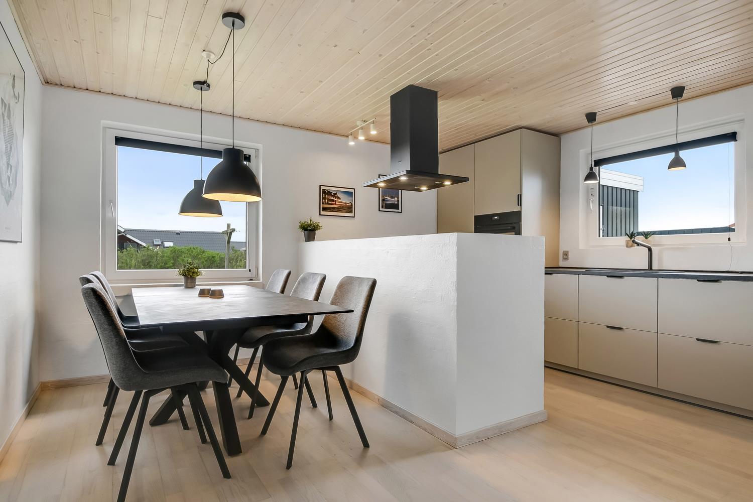 Rummeligt, moderniseret træhus med udsigt til de høje klitter ved Vesterhavet. Huset har gratis Internet og ligger i gåafstand til både Ferring sø og Vesterhavet samt købmand og spisested i sæsonen.
