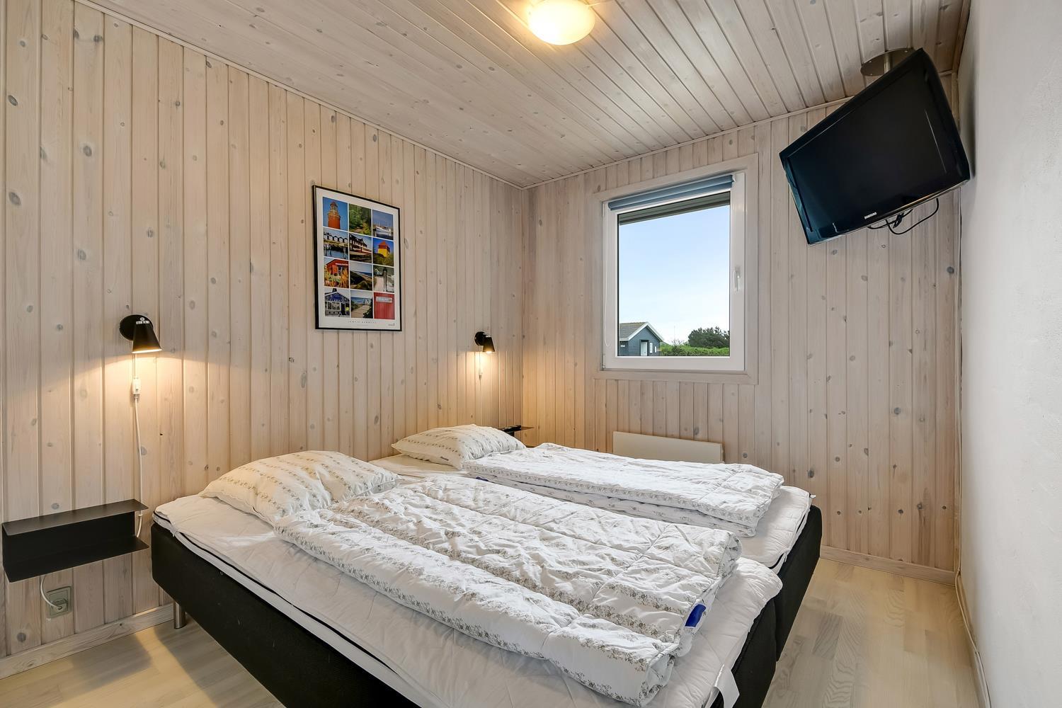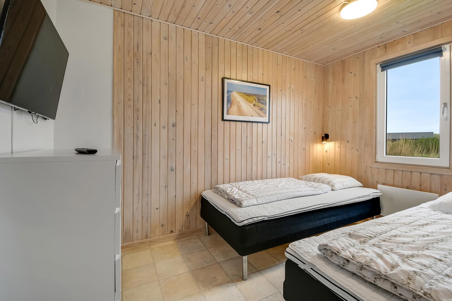 Dejligt træhus på 103 m2 med 3 gode soverum (1DS, 1DS, 2ES). Alle soverum har nye, gode senge, TV med Chromecast og god opbevaringsplads. Mellem værelser ligger et dejligt badeværelse med klinkegulv med gulvvarme, vaskemaskine, tørretumbler, toilet, håndvask, bruseniche, spabad og direkte adgang til sauna. Ekstra toilet med gulvvarme, toilet og håndvask. Stor opholdsstue med masser af plads, nye polstermøbler, Smart TV tyske programmer og mulighed for app´s og radio/CD afpiller. Brændeovn og varmepumpe til de kolde aftener og til at minimere strømregningen. Hyggelig spisekrog med et flot spisebord og dejlige stole. Helt nyt køkkenhjørne med komfur med keramiske kogeplader, emhætte, mikroovn, opvaskemaskine, køleskab med fryseboks og masser af service køkkengrej. Entré med aflægge- og afhængeplads til både tøj og fodtøj m.m. Barneseng, puslepude og højstol til børnene. Ikke Ryger hus. Max 2 husdyr tilladt.