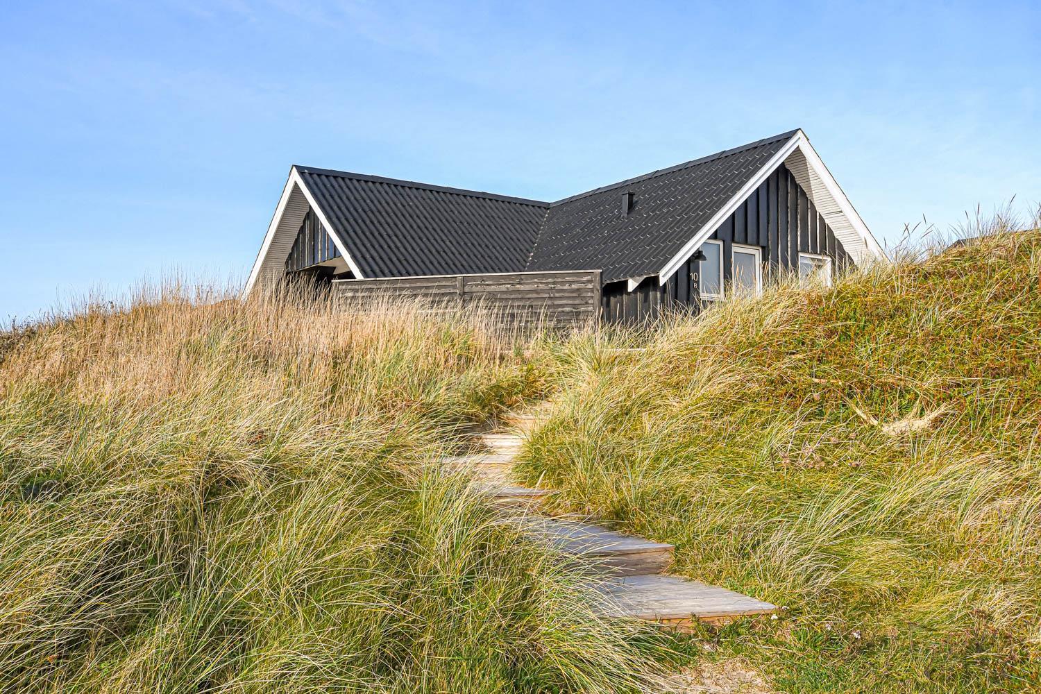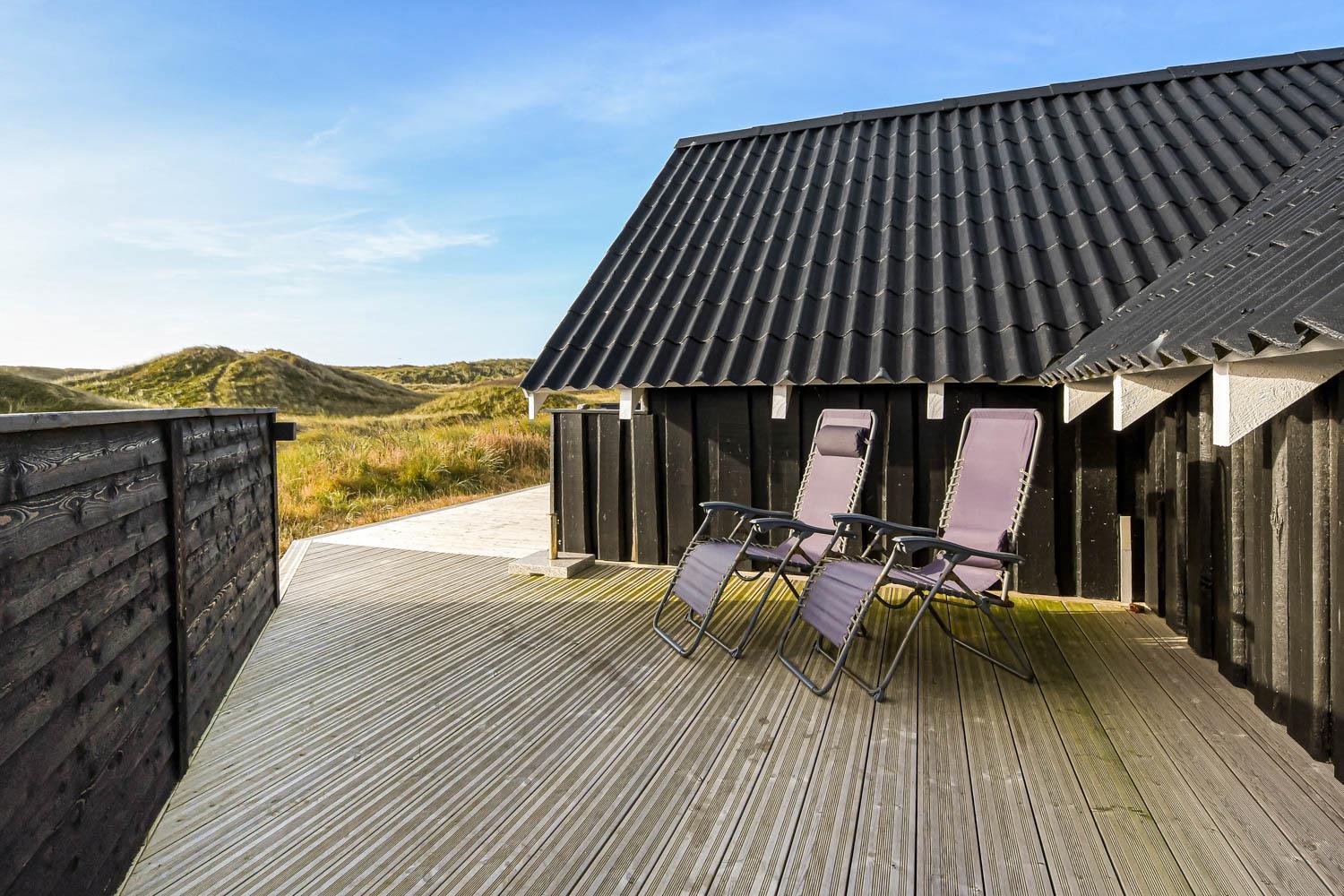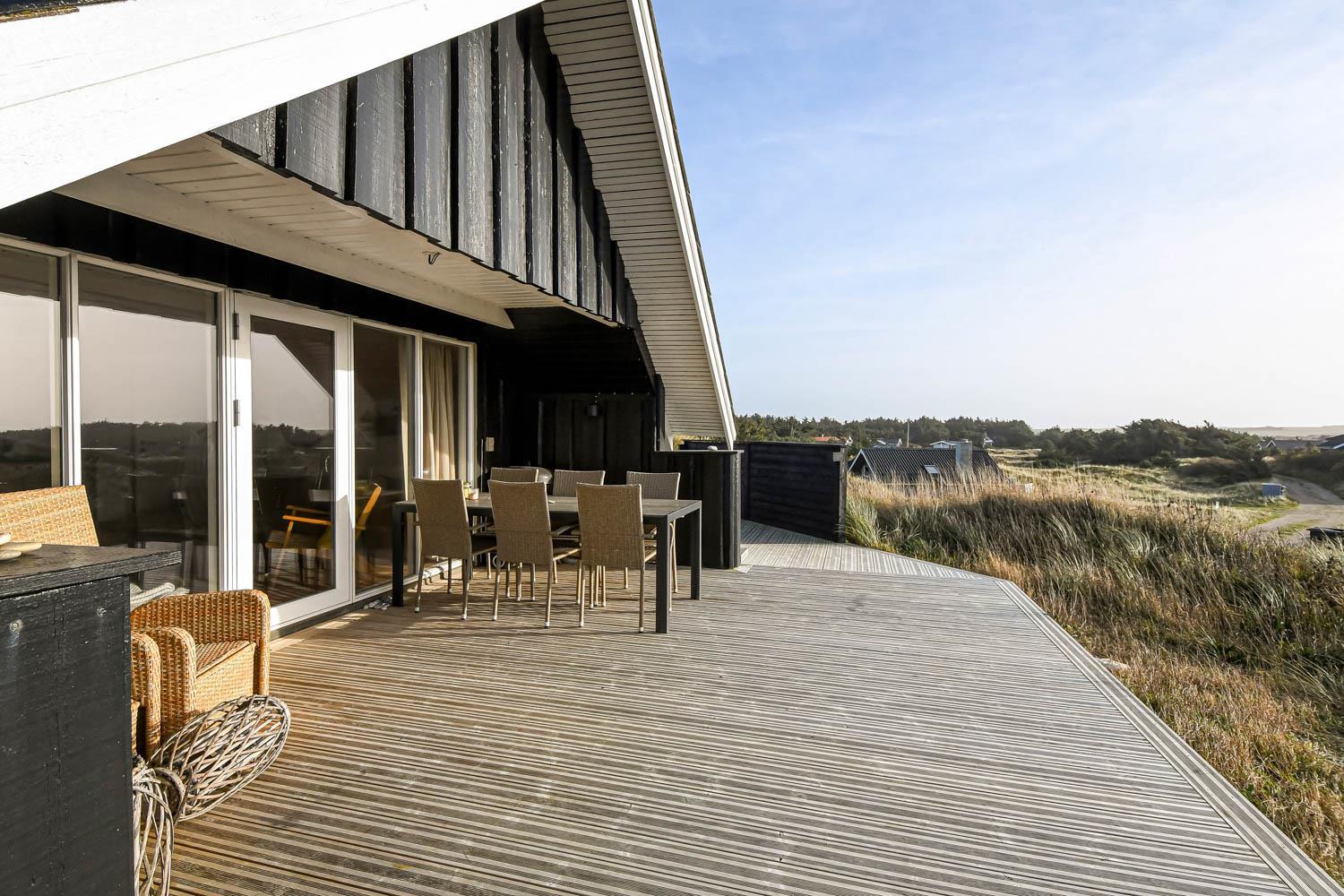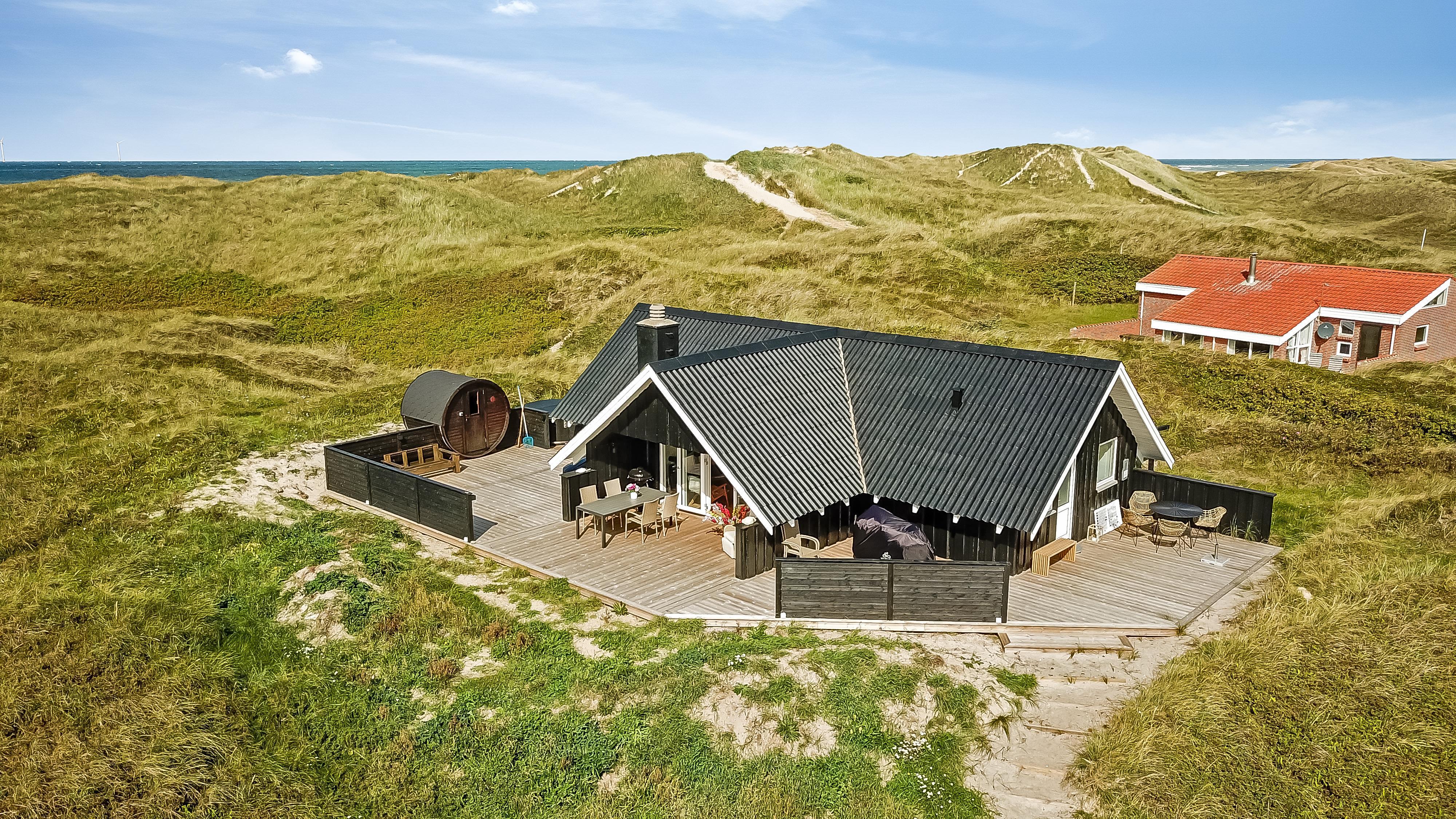 Fuldstændig unikt og fantastisk beliggende, nyrenoveret luksushus. Huset ligger som det sidste hus helt op til klitterne ved Vesterhavet med fantastisk udsigt til de høje klitter ved Vesterhavet. Moderne feriehus i træ, som er noget ganske særligt. Der er en stor terrasse omkring huset som bl.a. er med en udendørs spa og en udendørs sauna og udendørs bruser, gratis fibernet. Et hus med plads til max. 7 personer som kan nyde denne luksus. En rolig stund, en plads i solen er blot noget af det huset tilbyder.