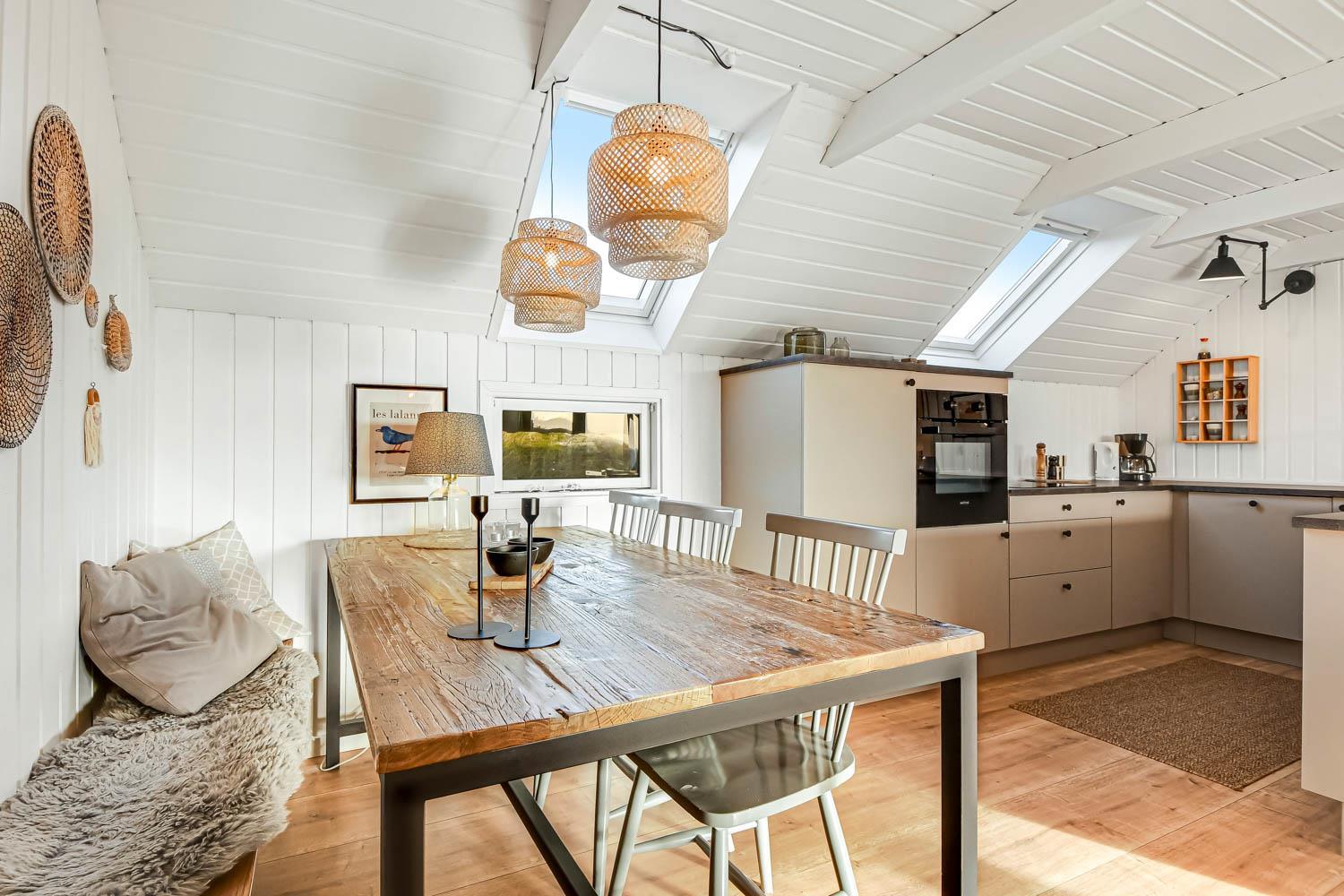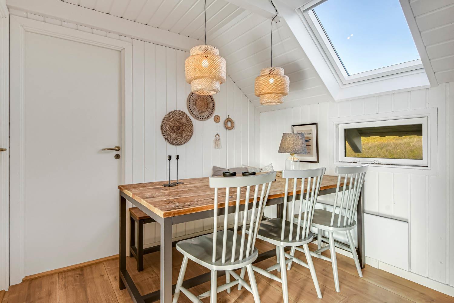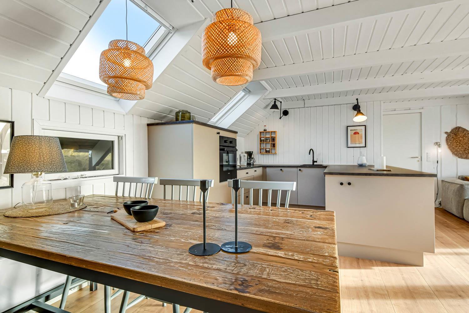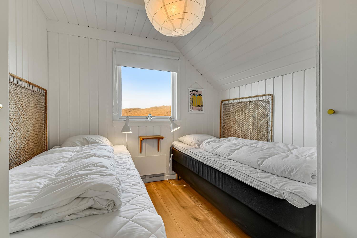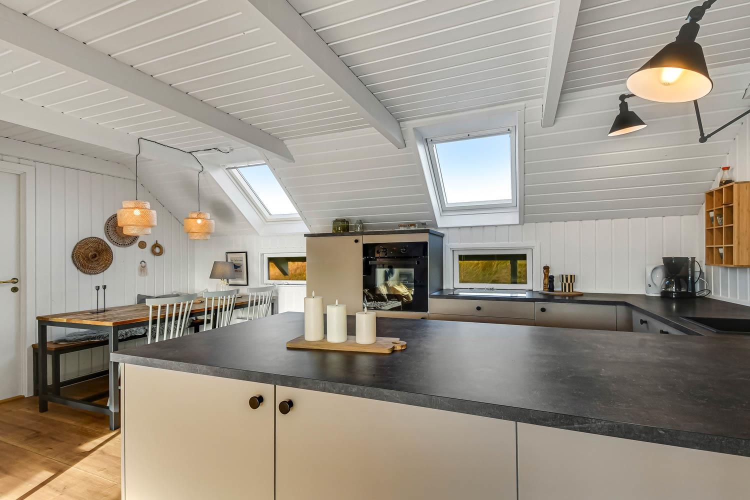 Allerede når bilen rammer grusvejen, med få meter til huset, bliver det klart at beliggenhed og hus er noget ganske særligt. Huset ligger på en meget privat grund for enden af en lukket grusvej. Huset er 82 m2 og har 4 dejlige soverum (1DS, 1DS, 2S , 1S), det er helt nye og gode senge. I hjertet af huset findes et stort, veludstyret køkken/alrum med alt i service/køkkengrej og alt i hårde hvidevarer. Det åbne køkken har bl.a. keramiske kogeplade, indbygningsovn, opvaskemaskine, mikroovn, køleskab med fryseboks og meget mere. Nyd den tilberedte mad ved spisebordet, som er placeret tæt ved køkkenet. Bliv betaget af at kigge ud ad vinduerne og nyd udsigten til klitterne ved Vesterhavet. Slap af i de nye, bløde kvalitetsmøbler. Se TV på husets smart-TV som har indbygget danske og tyske TV-programmer, radio og mulighed for streaming tjenester, dejlig brændeovn som sørger for en behagelig varme også i den kolde tid. Der er praktiske trægulve i hele huset, som også er særdeles rengøringsvenlige.