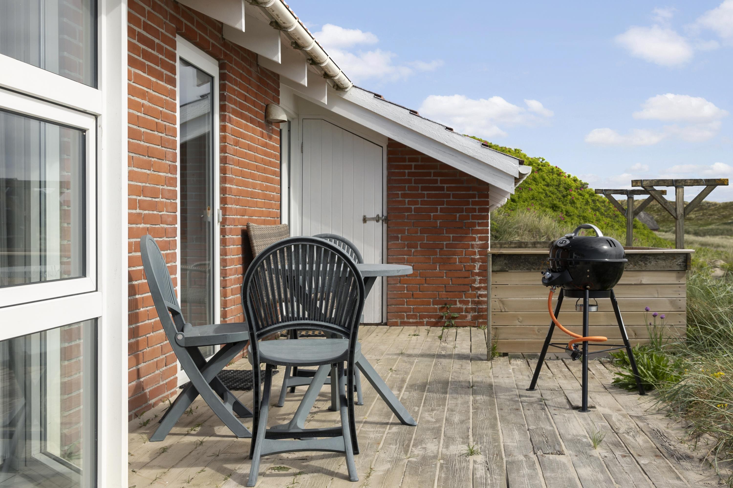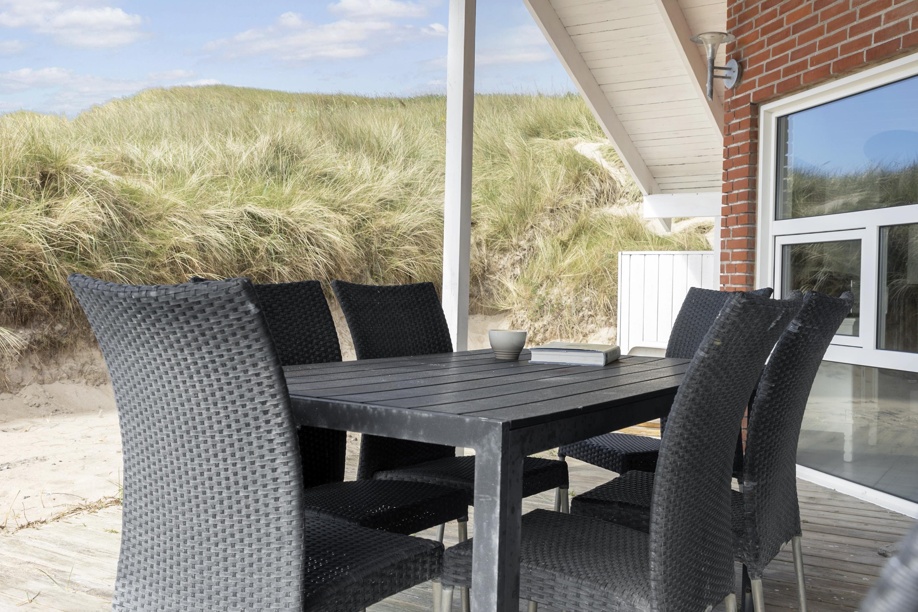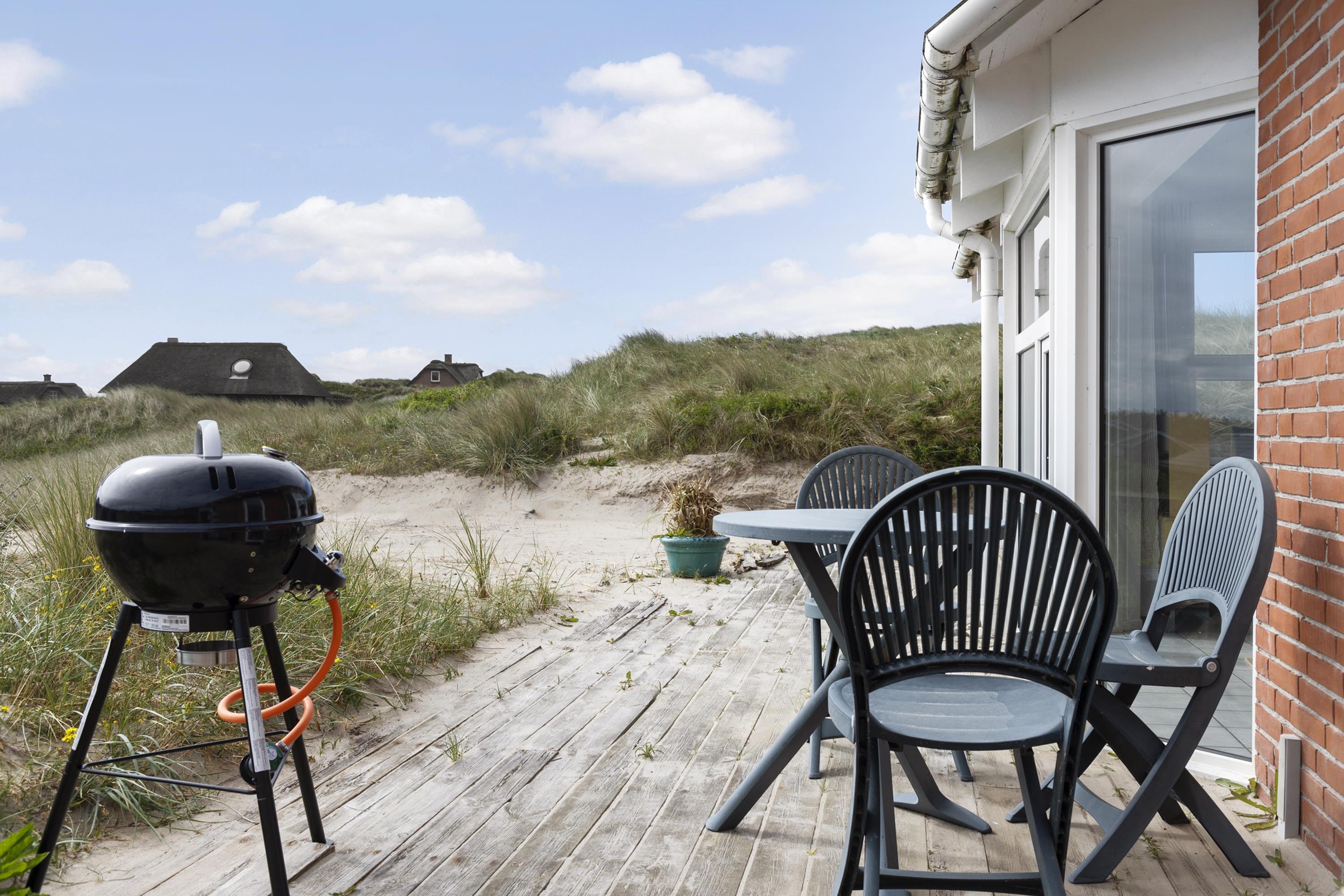 Nyd livet på den store, nyanlagte terrasse, hvor havemøbler, liggestole og gasgrill står klar. Terrassen er nærmest bygget ind i klitterne – her kan I sidde i læ, mens I mærker solen og lytter til bølgerne.