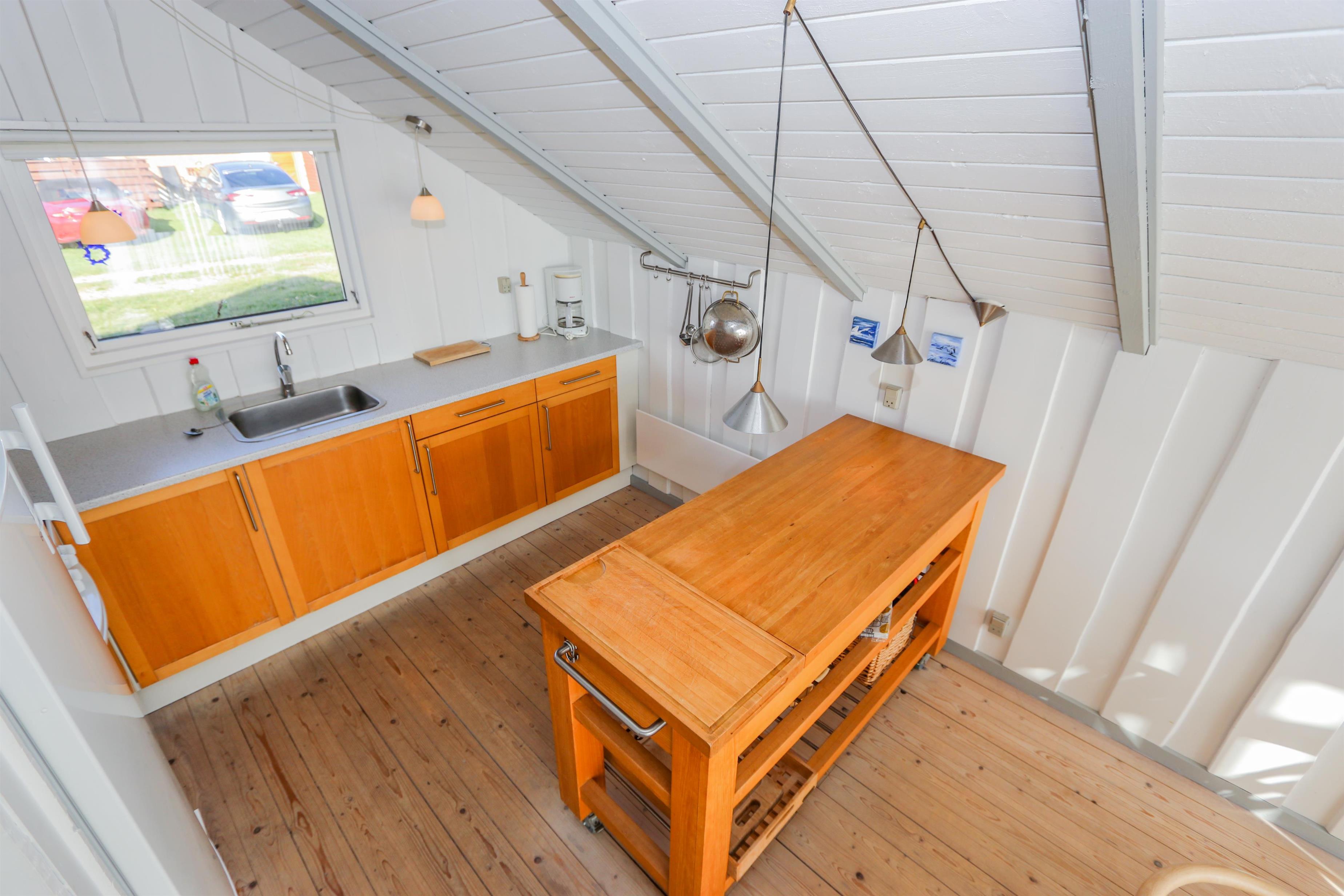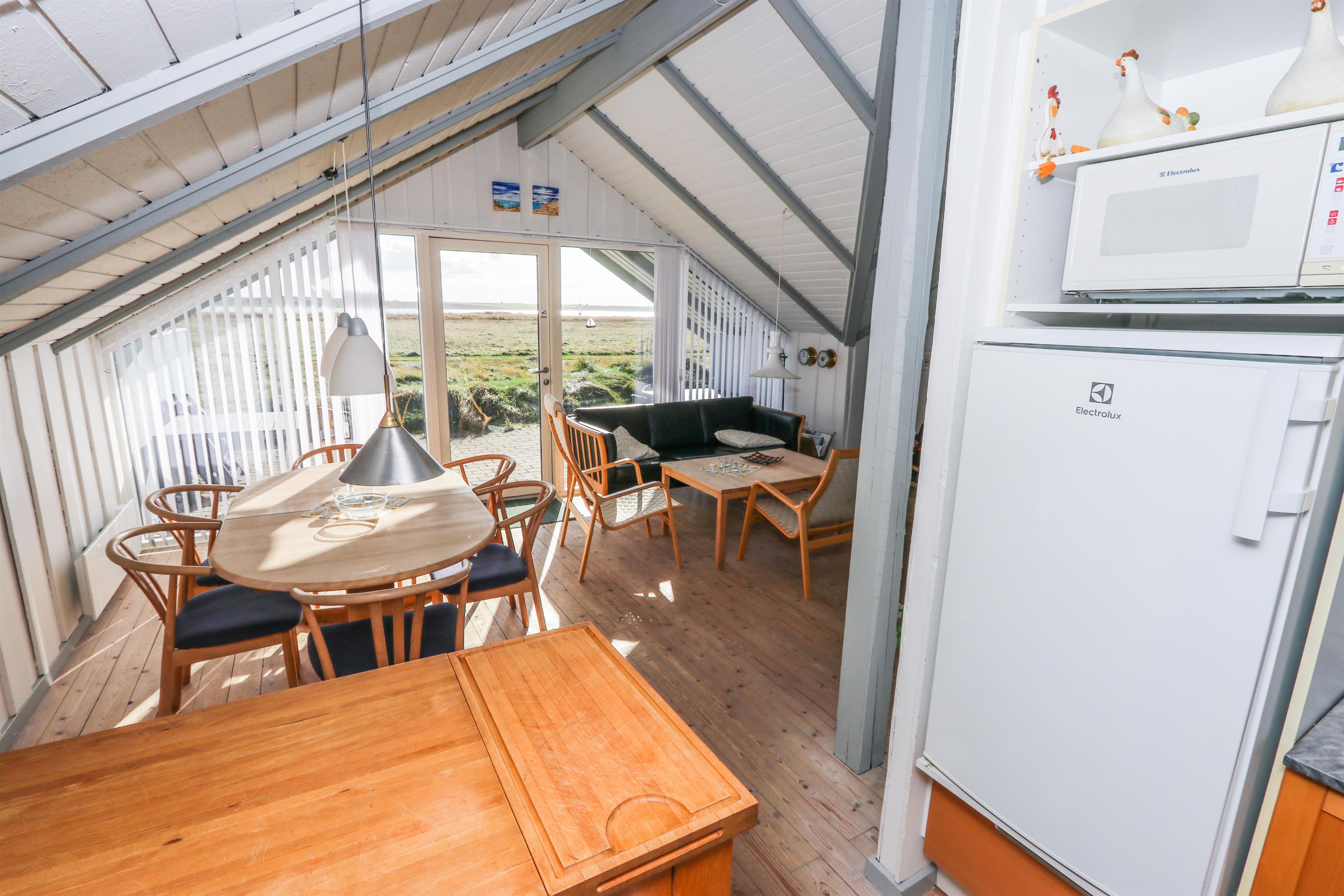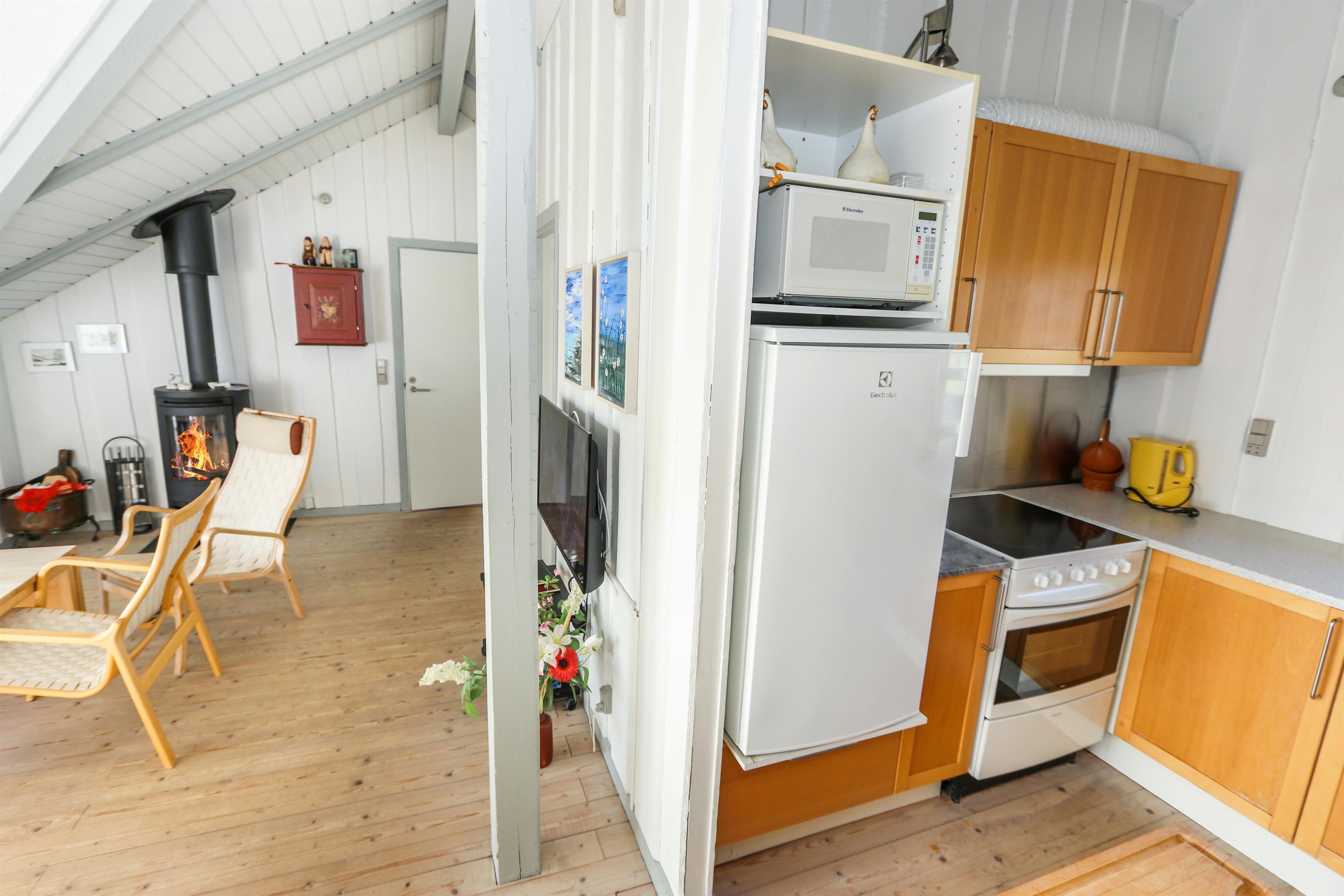 Stuen indbyder til hyggelige stunder med TV (danske og tyske kanaler) og en dejlig brændeovn, som spreder varme og feriestemning på køligere dage. Spiseafdelingen ligger i åben forbindelse med det veludstyrede køkken, som blandt andet byder på glaskeramisk komfur, mikroovn og fryser.