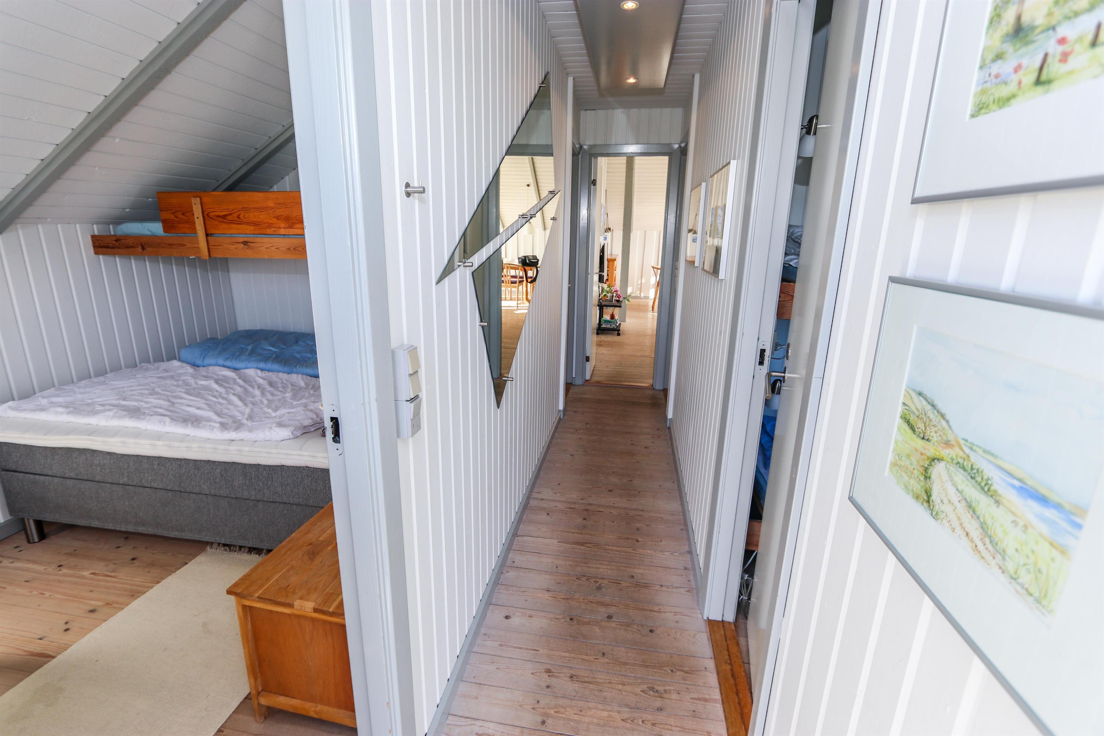 Huset rummer tre soveværelser: to med dobbeltsenge og ét med køjeseng – perfekt til den lille familie. Badeværelset er lyst og funktionelt med bruser og gulvvarme. Der er både vaskemaskine og barnestol, og husdyr er velkomne. Huset er røgfrit.