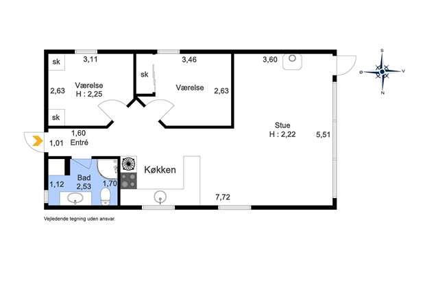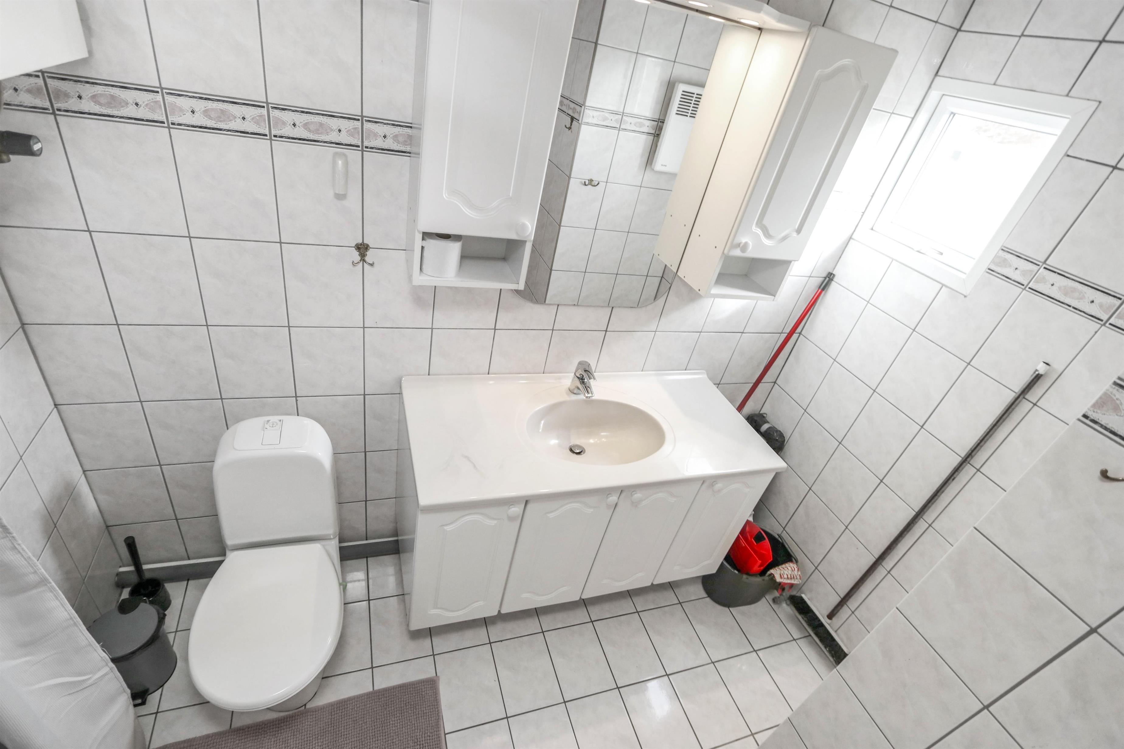 Lyst og venligt indrettet. 2 soveværelser (1DS, 1DS). Godt udstyret køkkenhjørne med bla. mikroovn, opvaskemaskine og glaskeramisk komfur. Godt udnyttet opholdsstue med lædersofaer, brændeovn, tv med tyske kanaler. Badeværelse med toilet, brusenische, håndvask. Vaskemaskine forefindes.
