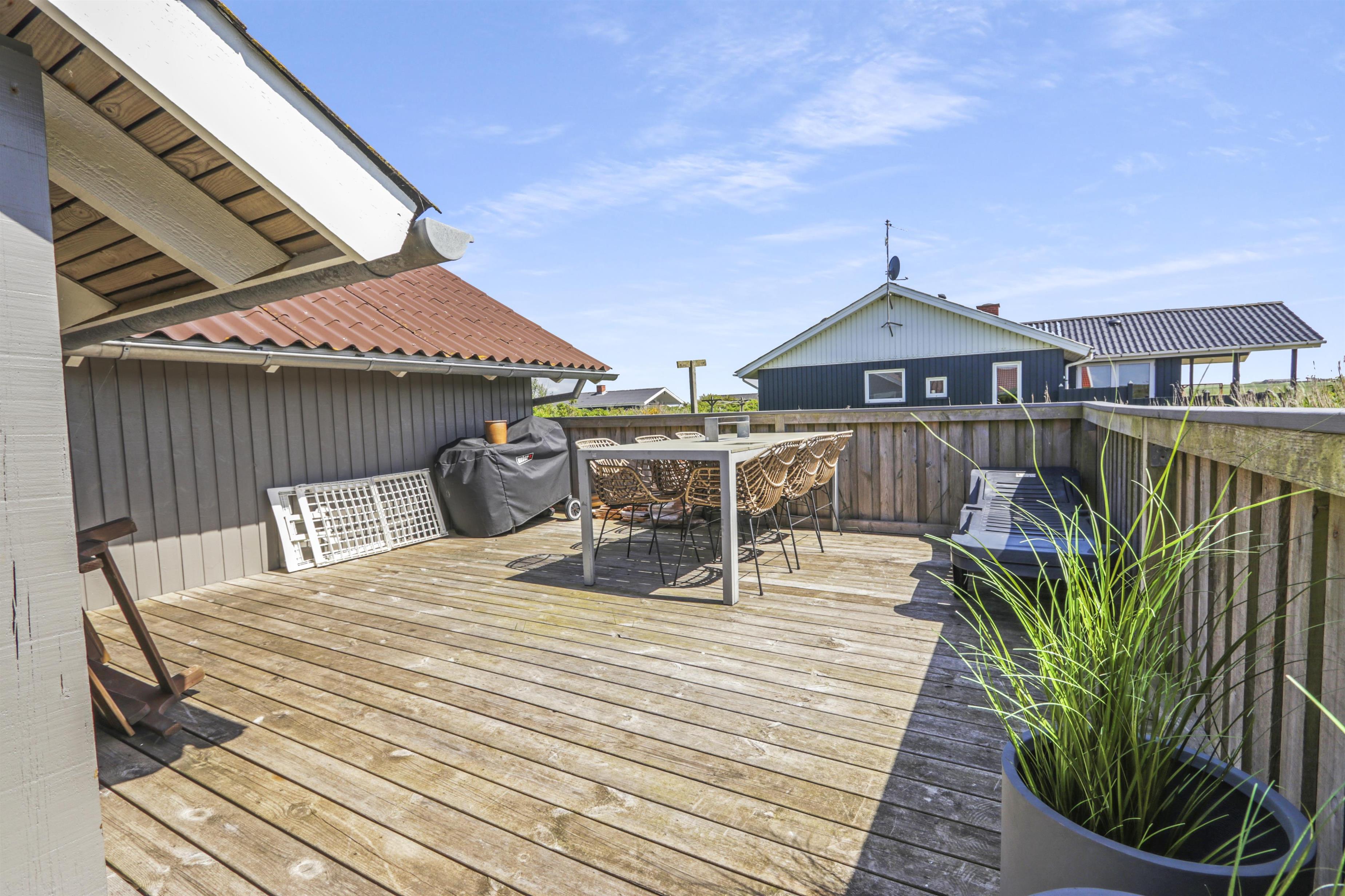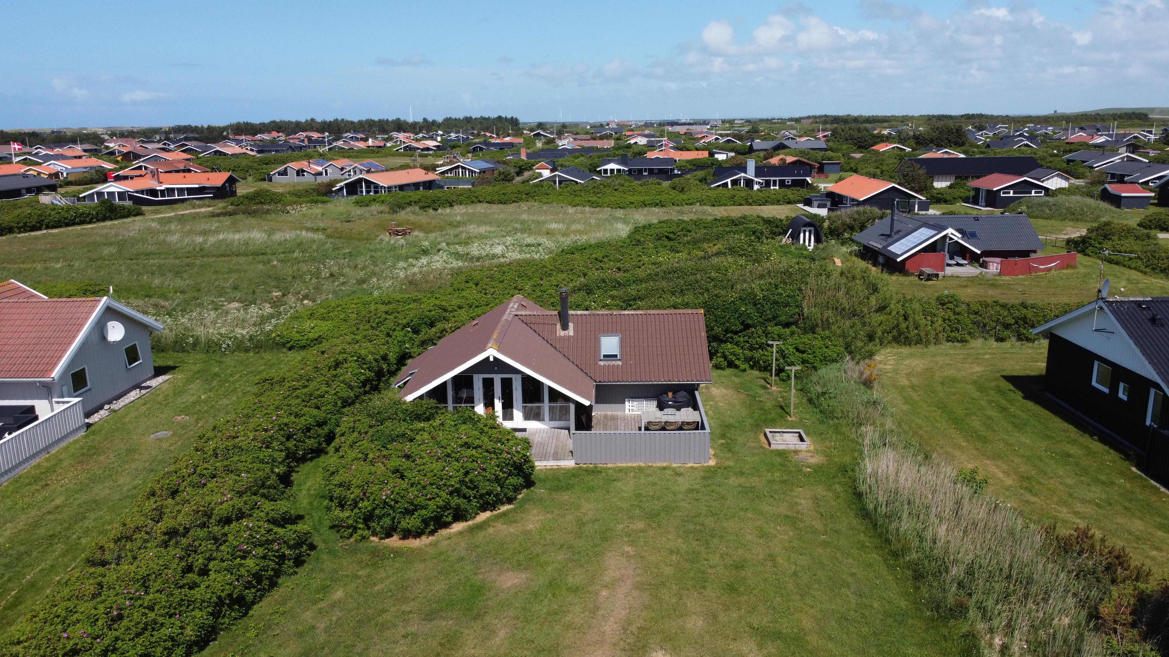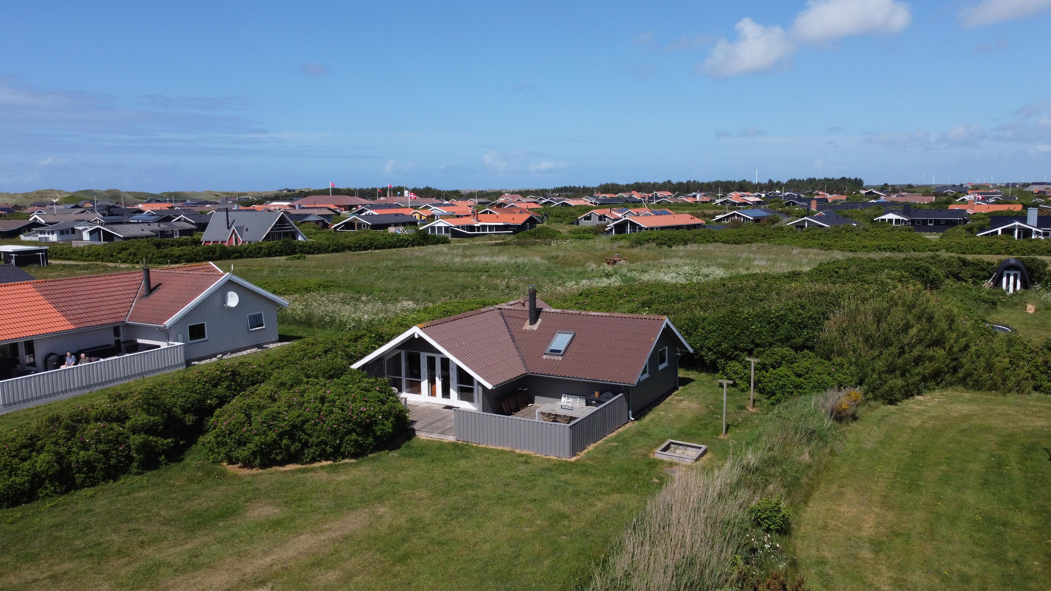 Huset er beliggende på en 700 m2 naturgrund tæt på Vesterhavet og Ferring sø. Der er en delvis overdækket terrasse med havemøbler, solvogne og grill. Til de mindste gæster er der en sandkasse på grunden. Huset ligger også tæt på Vejlby Klit torv hvor der i sæsonen er en købmand og en cafe som har åbent daglig. Nyd at huset ligger tæt på Ferring Sø hvor der er anlagt en sti omkring søen. I nærheden findes der legeplads, boldplads og petanquebane. Besøg havnebyen Thyborøn og handelsbyen Lemvig som ligger blot 15 min. Fra huset i bil. I begge byer er der gode shopping muligheder, restauranter samt seværdigheder. Et dejligt hus til den lille familie som gerne vil bo centralt i Vejlby Klit.