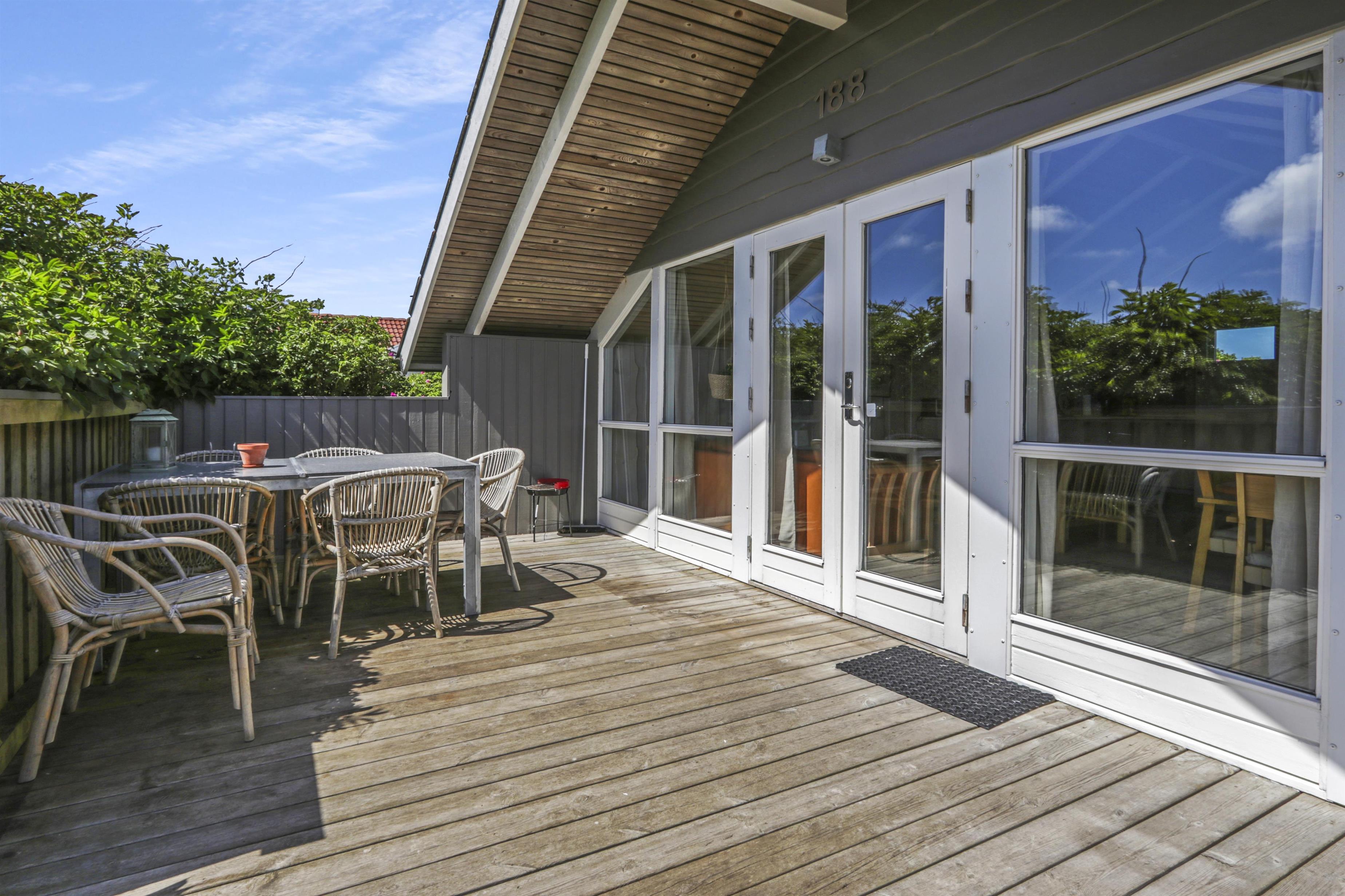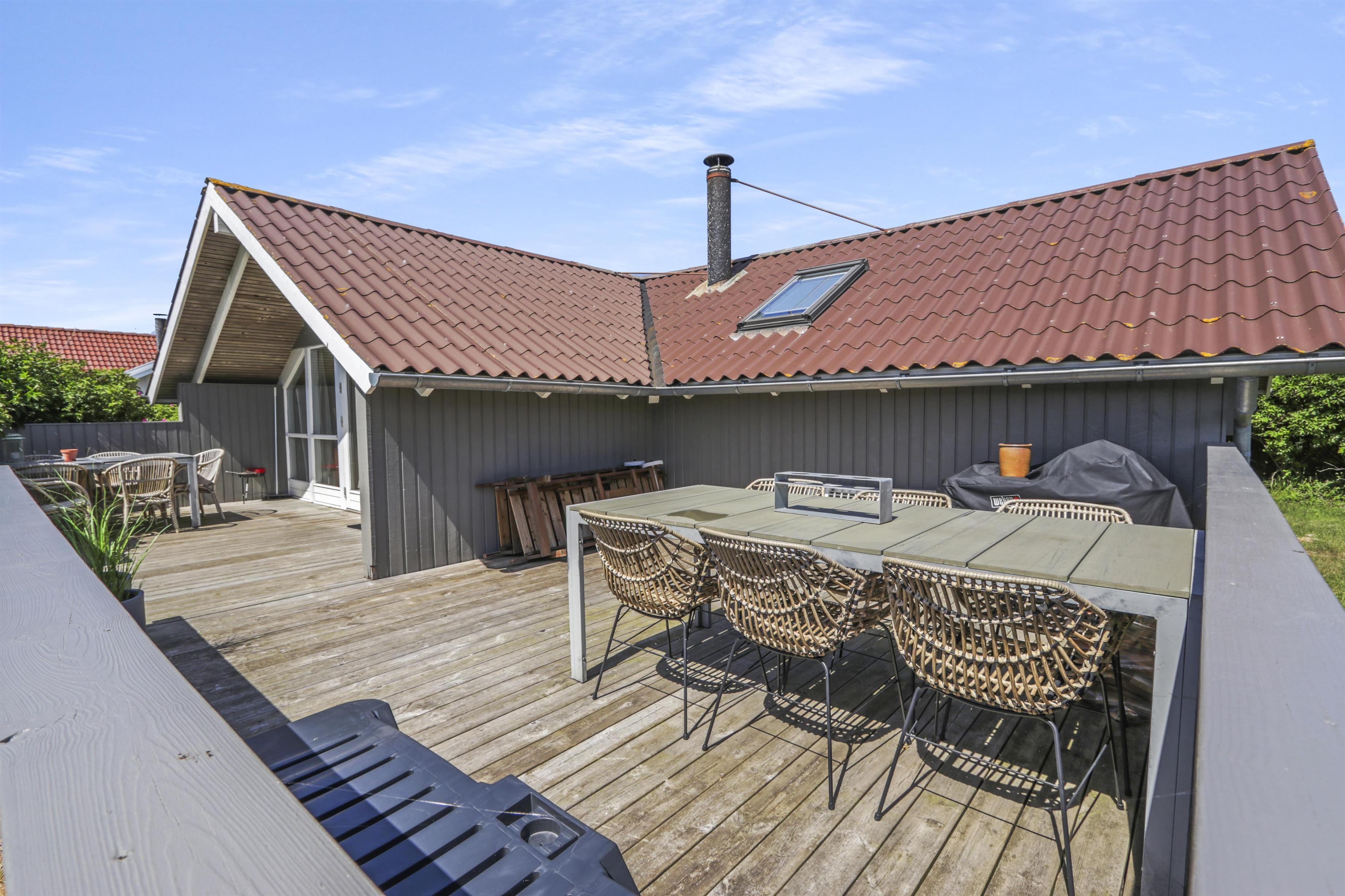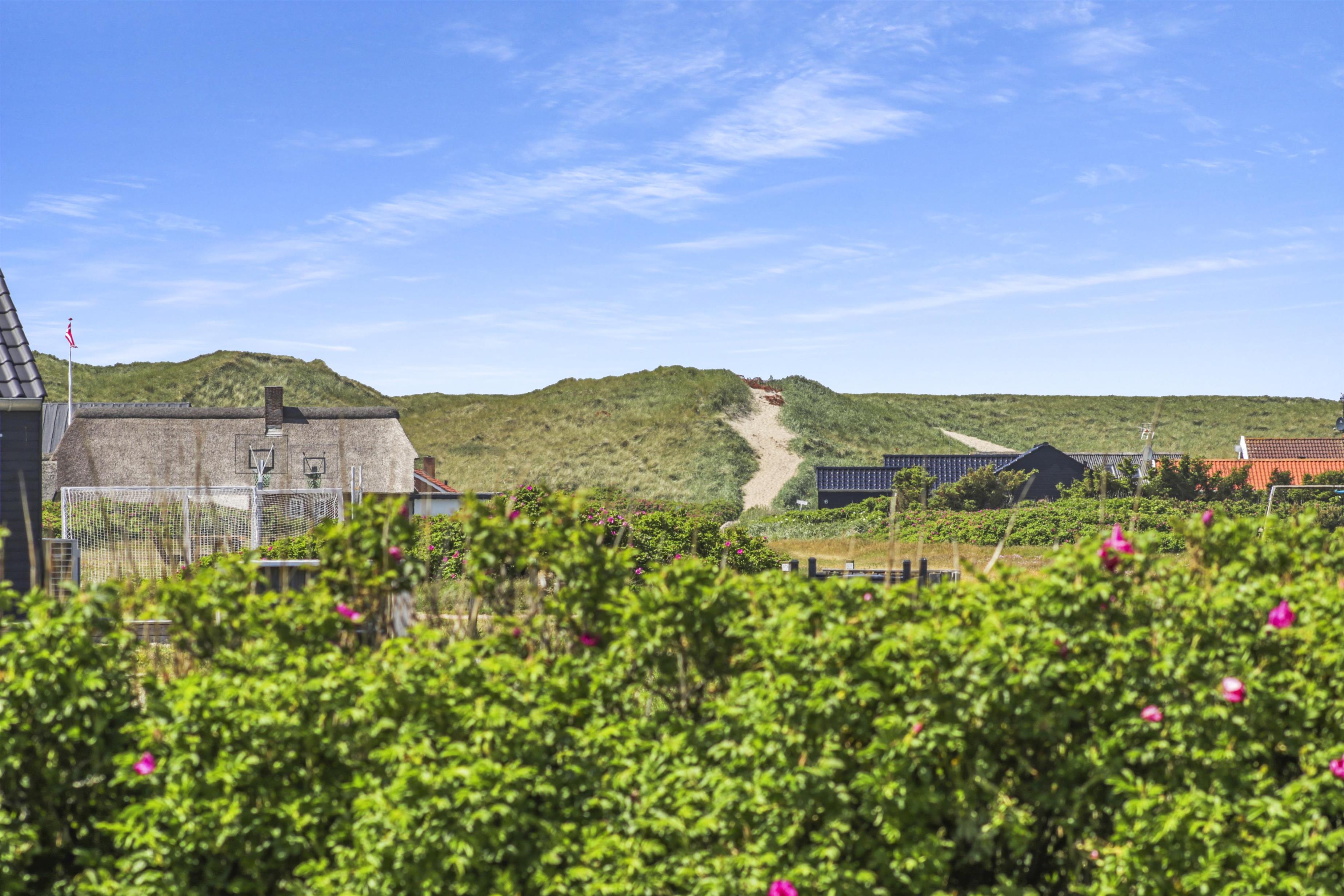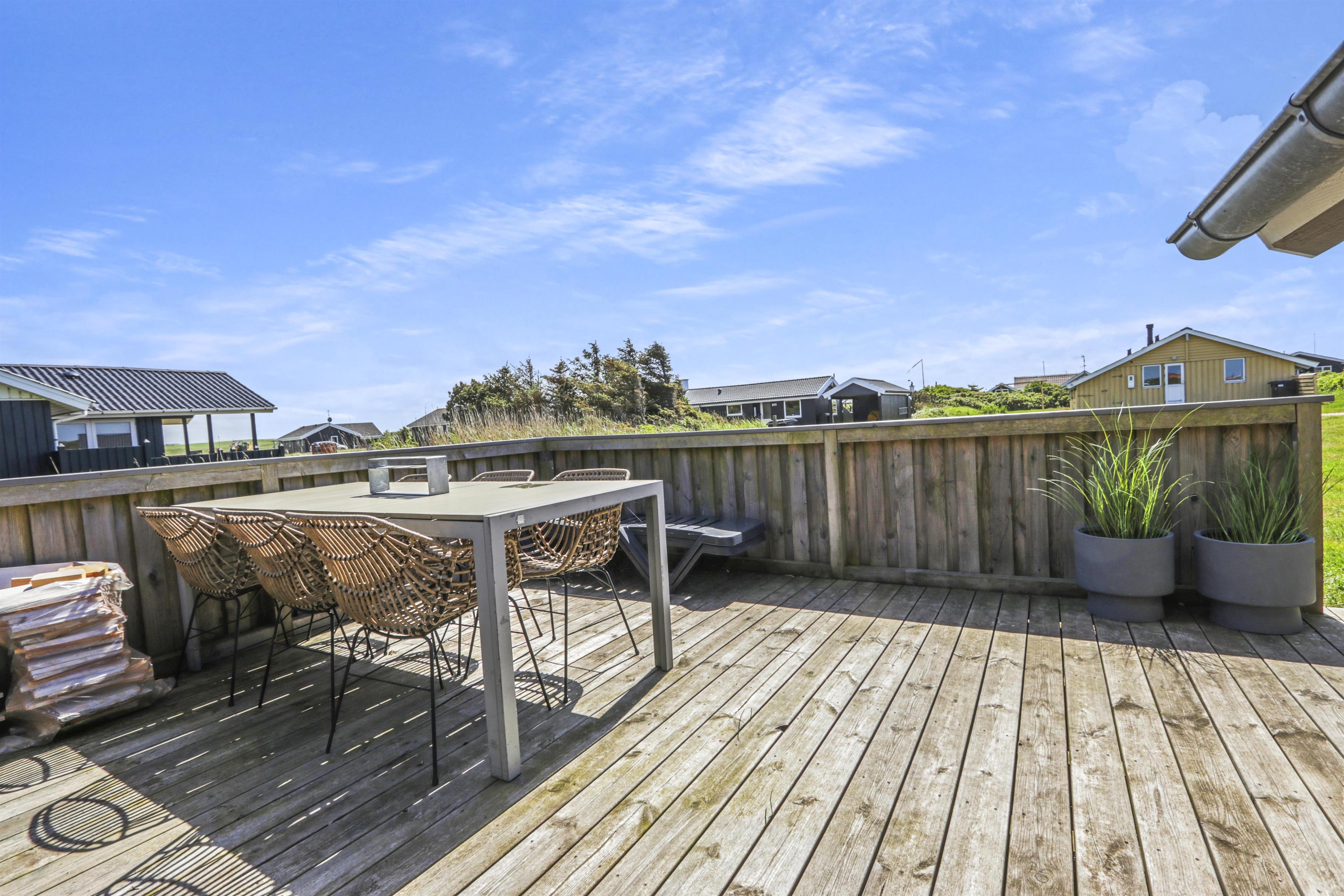 Huset er beliggende på en 700 m2 naturgrund tæt på Vesterhavet og Ferring sø. Der er en delvis overdækket terrasse med havemøbler, solvogne og grill. Til de mindste gæster er der en sandkasse på grunden. Huset ligger også tæt på Vejlby Klit torv hvor der i sæsonen er en købmand og en cafe som har åbent daglig. Nyd at huset ligger tæt på Ferring Sø hvor der er anlagt en sti omkring søen. I nærheden findes der legeplads, boldplads og petanquebane. Besøg havnebyen Thyborøn og handelsbyen Lemvig som ligger blot 15 min. Fra huset i bil. I begge byer er der gode shopping muligheder, restauranter samt seværdigheder. Et dejligt hus til den lille familie som gerne vil bo centralt i Vejlby Klit.