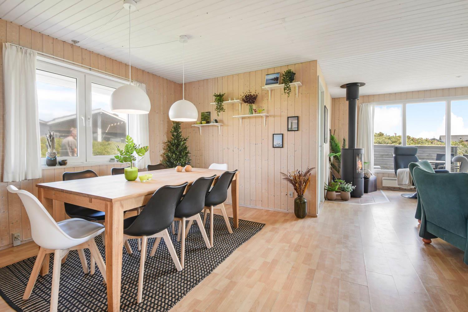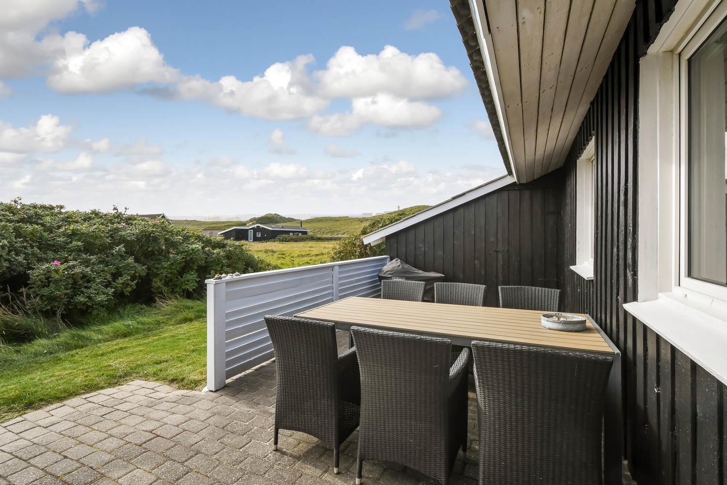 100 meter fra Vesterhavet, ligger dette dejlige, ikke ryger, træsommerhus. Huset er på 90 m2 med en udestue på 11 m2. Grunden er på 1390 m2.