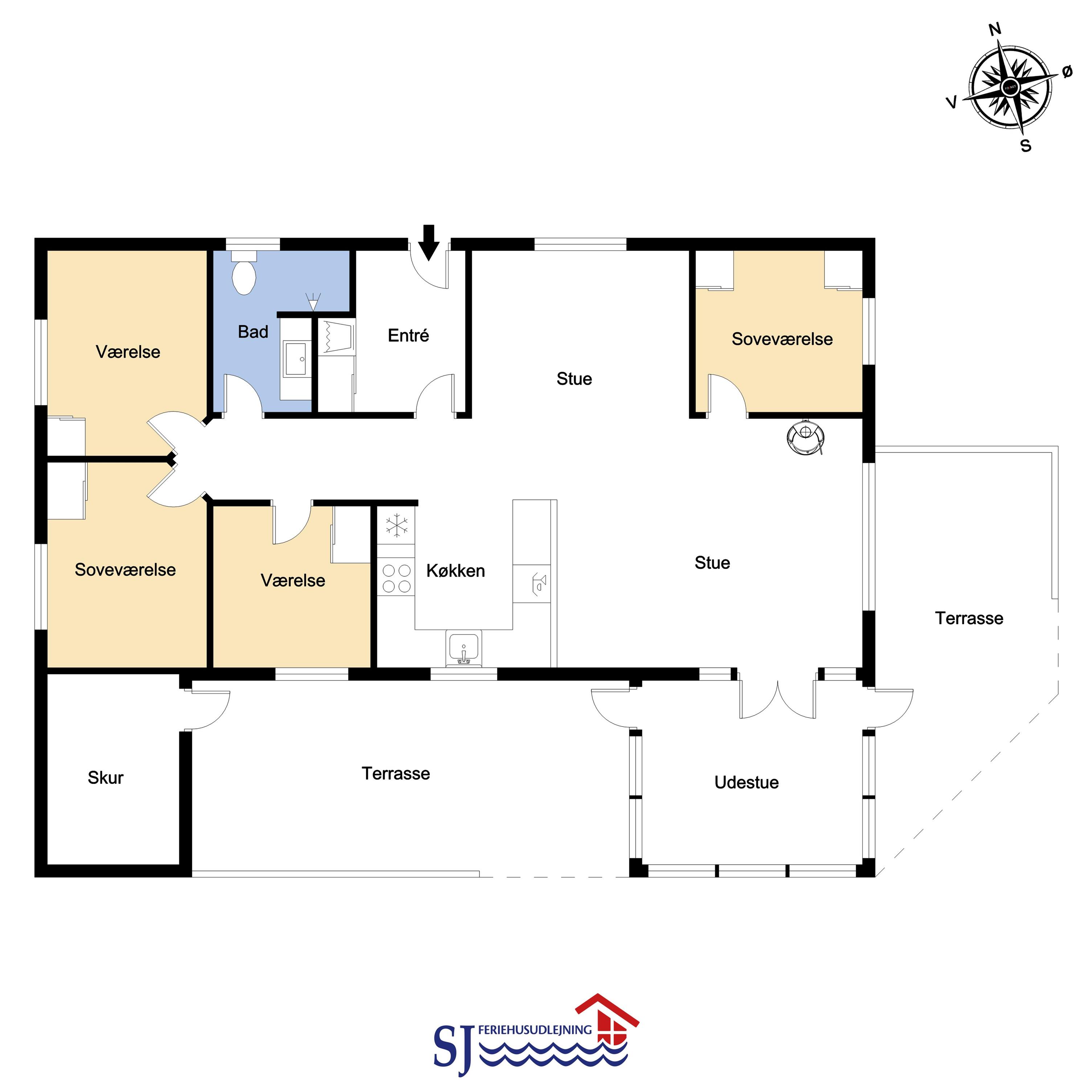 Huset er til max 6 personer og 2 husdyr. Der er 4 soveværelser, 2 med dobbeltsenge, 2 med 2 senge.
