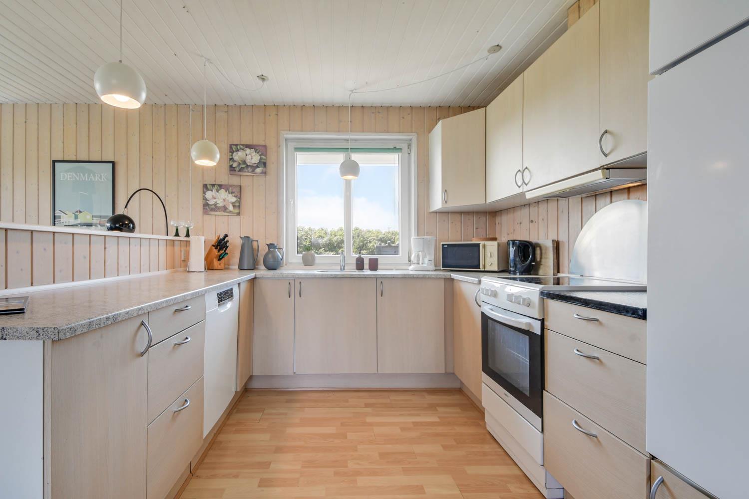 Køkkenet indeholder keramisk komfur, køle/ fryseskab, opvaskemaskine og mikroovn.