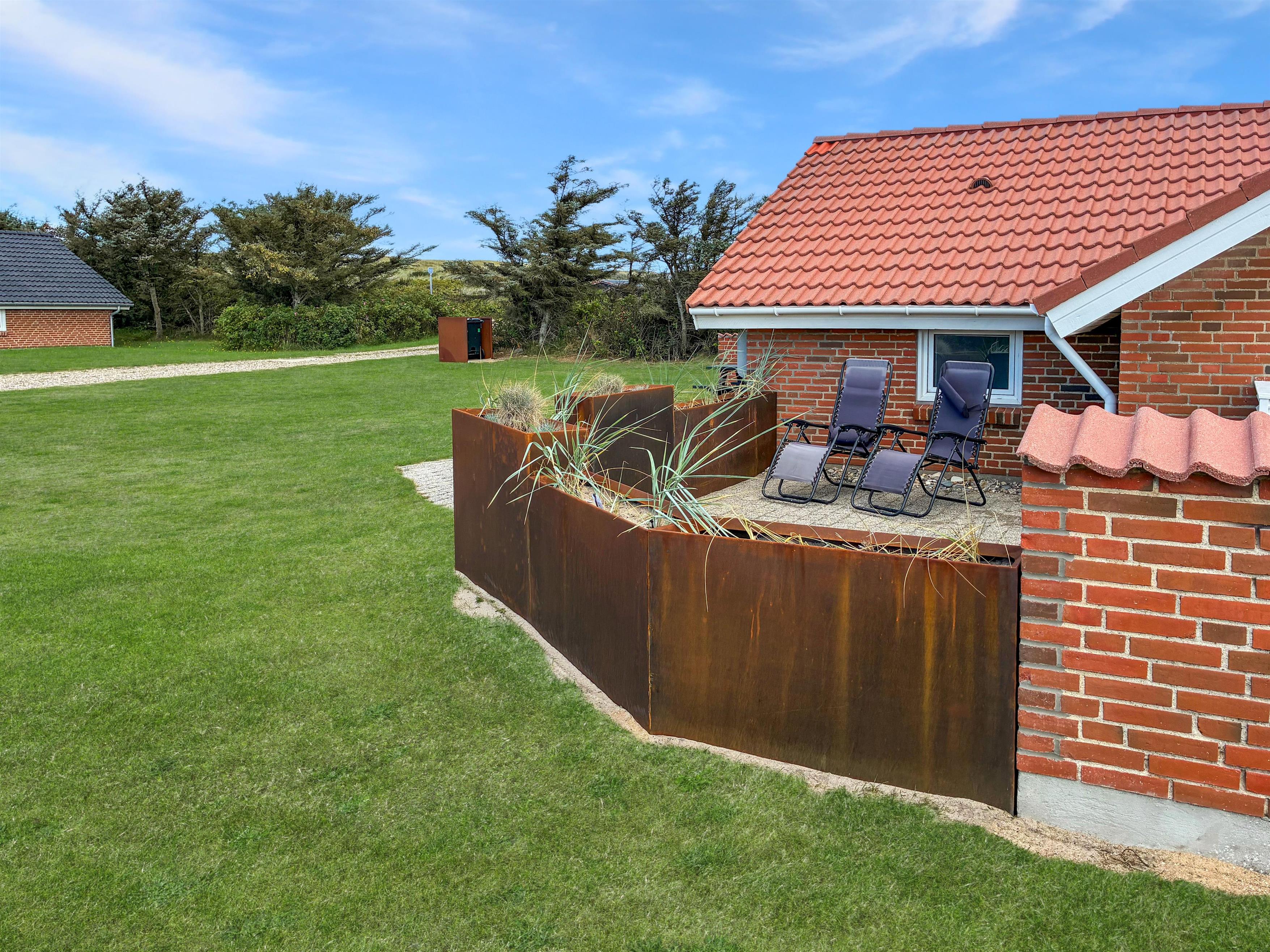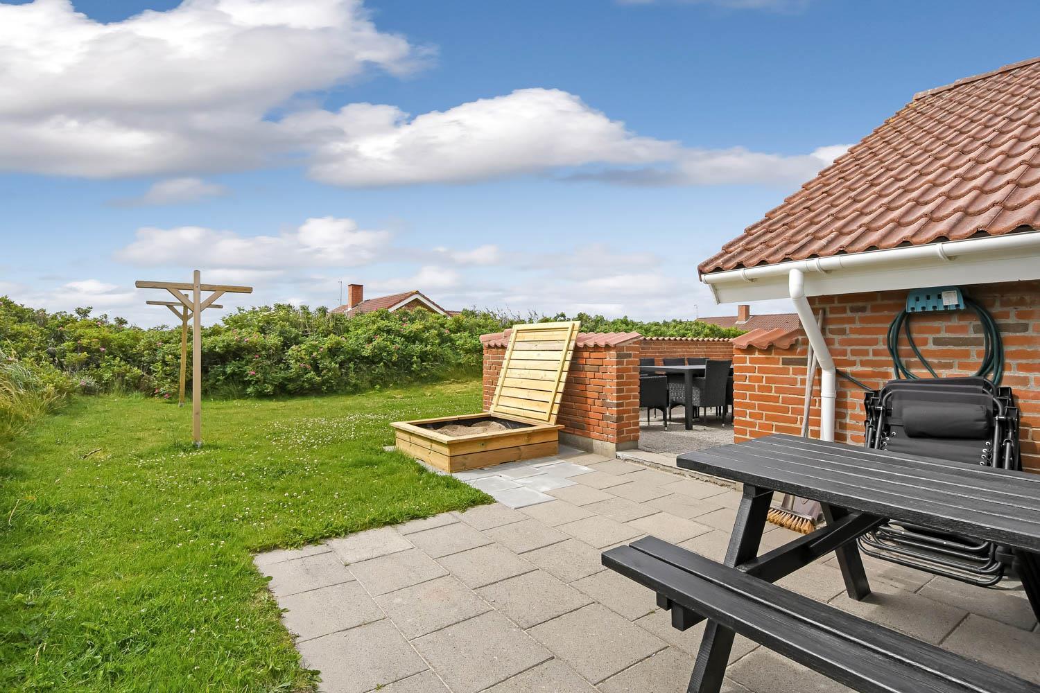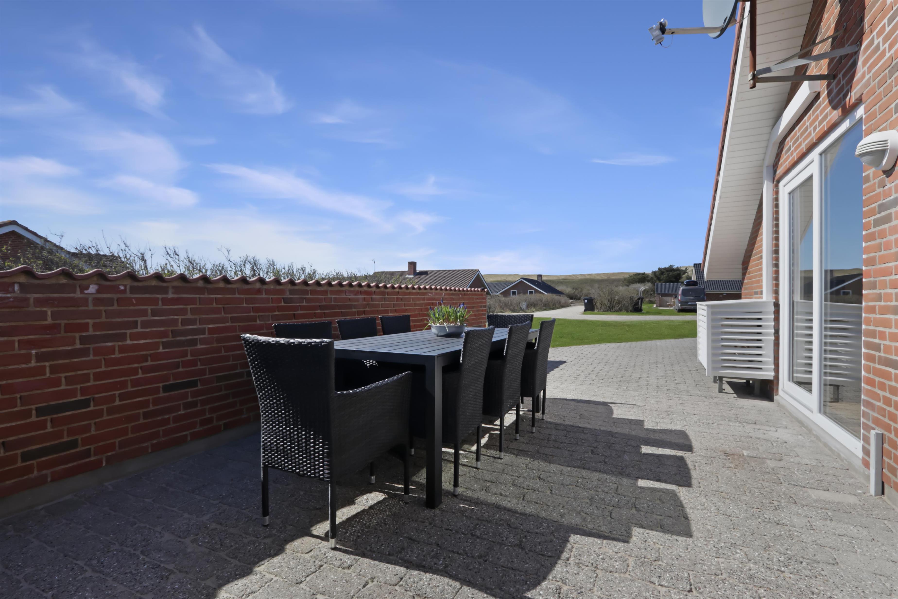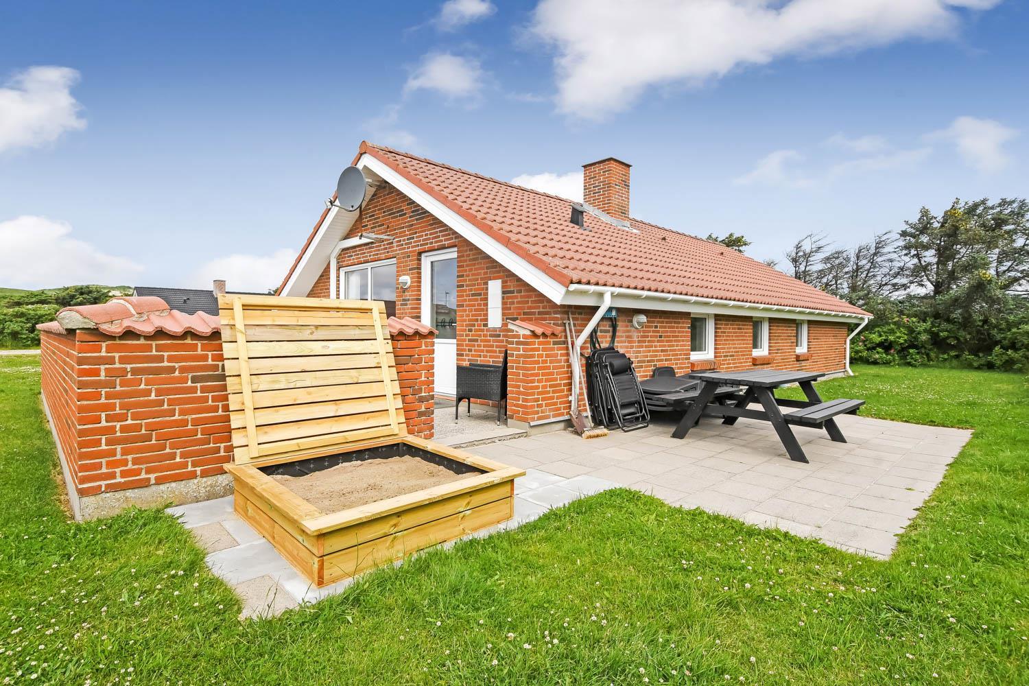 Huset er beliggende på en 1340 m2 naturgrund, blot 200 m fra Vesterhavet. Dejlig stor indhegnet terrasse med havemøbler og en læ mur. Til de mindste gæster er der en sandkasse med låg. Området i Vejlby Klit er velegnet til vandre og cykelture og husets beliggenhed så tæt på Vesterhavet giver mange mulighed for aktiviteter på stranden, her kan man bade, flyve med drager, fiske, samle sten eller rav, bygge sandslotte og meget mere. Fra huset kan man køre en tur enten til fiskerbyen Thyborøn eller handelsbyen Lemvig hvor der er flere restauranter, forretninger samt aktiviteter. Et flot hus med plads til en stor familie eller 2 familier som ønsker at bo sammen i et skønt område tæt på Vesterhavet.