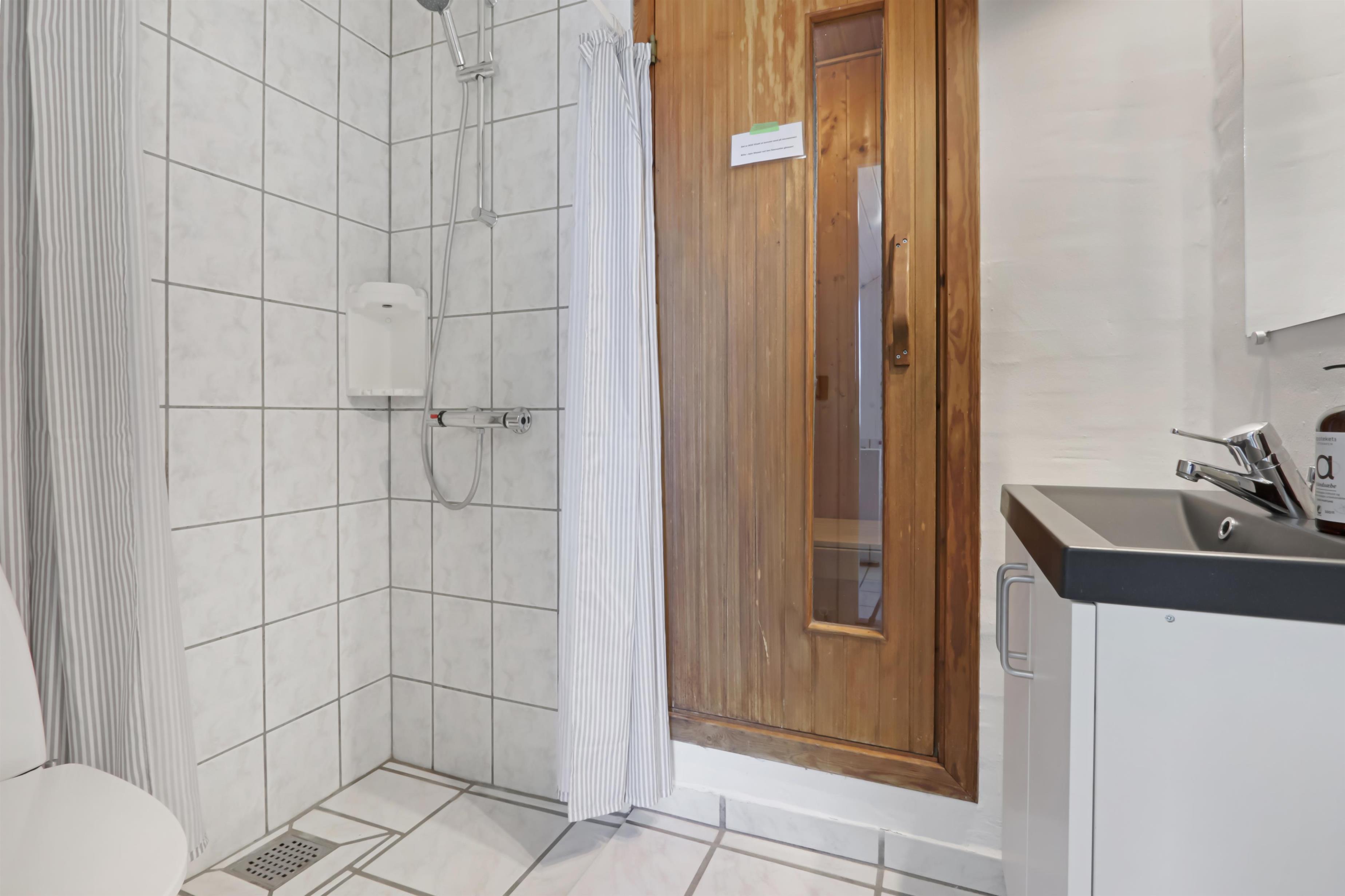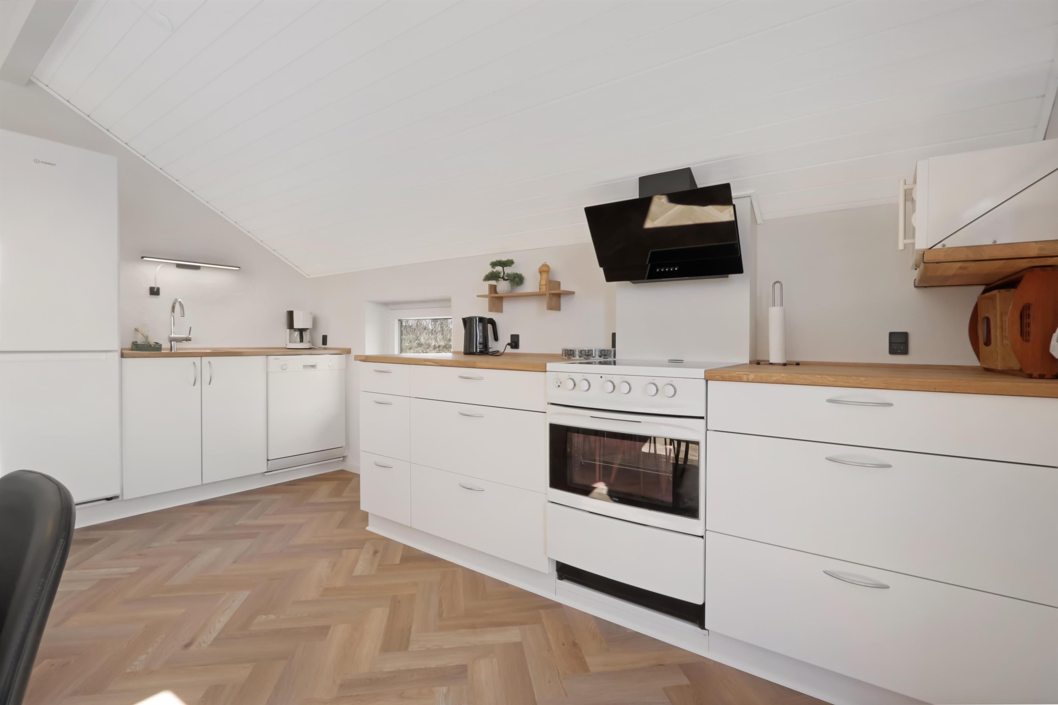 Et dejligt bryggers tager imod jer, her er der god plads til ophængning af overtøj mv, Fra bryggers kommer man direkte ind i stuen som er flot indrettet med gode lædermøbler, brændeovn og varmepumpe som begge er medvirkende til en lavere forbrugsregning, TV med tyske og danske programmer samt et Chromecast med mulighed for streaming af egne programmer via APPs, der er også en DVD, CD og radio. Stuen er med trægulv og gulvvarme. Pænt køkken med elkomfur, køle-/fryseskab, opvaskemaskine og mikroovn. Huset har 2 gode badeværelser med toilet, håndvask, bruser samt flisegulv med gulvvarme Fra entreen er der udgang til et flot sparum med en spa, TV til streamning, vaskemaskine og tørretumbler. I sparummet er der flisegulv med gulvvarme. Fra sparummet er der indgang til det ene af husets badeværelse hvor der også er en sauna. Huset er indrettet med 4 gode soverum: (DS) (2S) (DS) (1S). Til børnene er der barneseng og højstol. Rygning er ikke tilladt. 2 husdyr er tilladt. Billader.