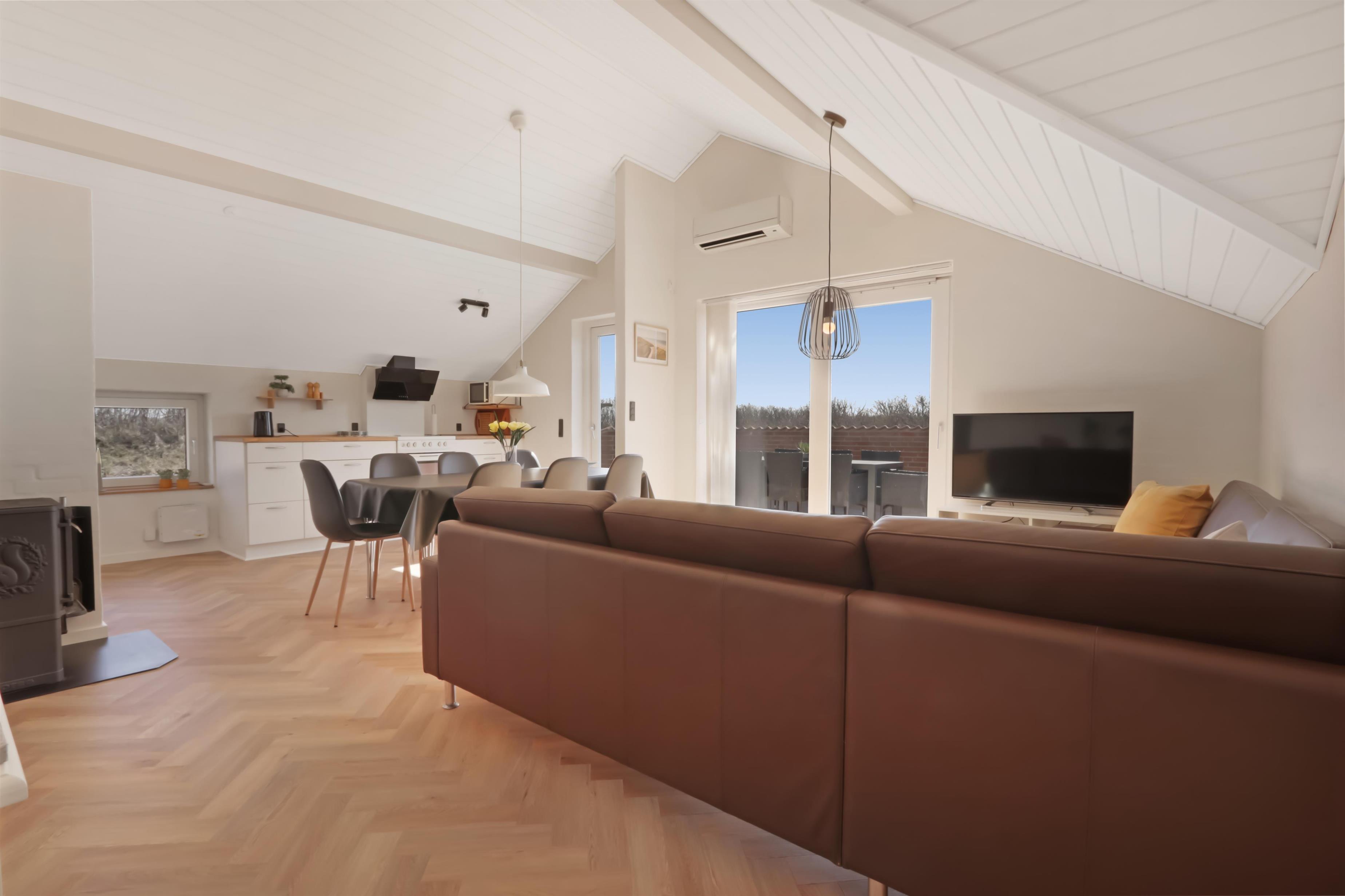 Dette rummelige kvalitets feriehus er renoveret i 2024 med nyt interiør. Huset ligger på en naturgrund blot 200 m fra Vesterhavet og med gratis internet adgang.