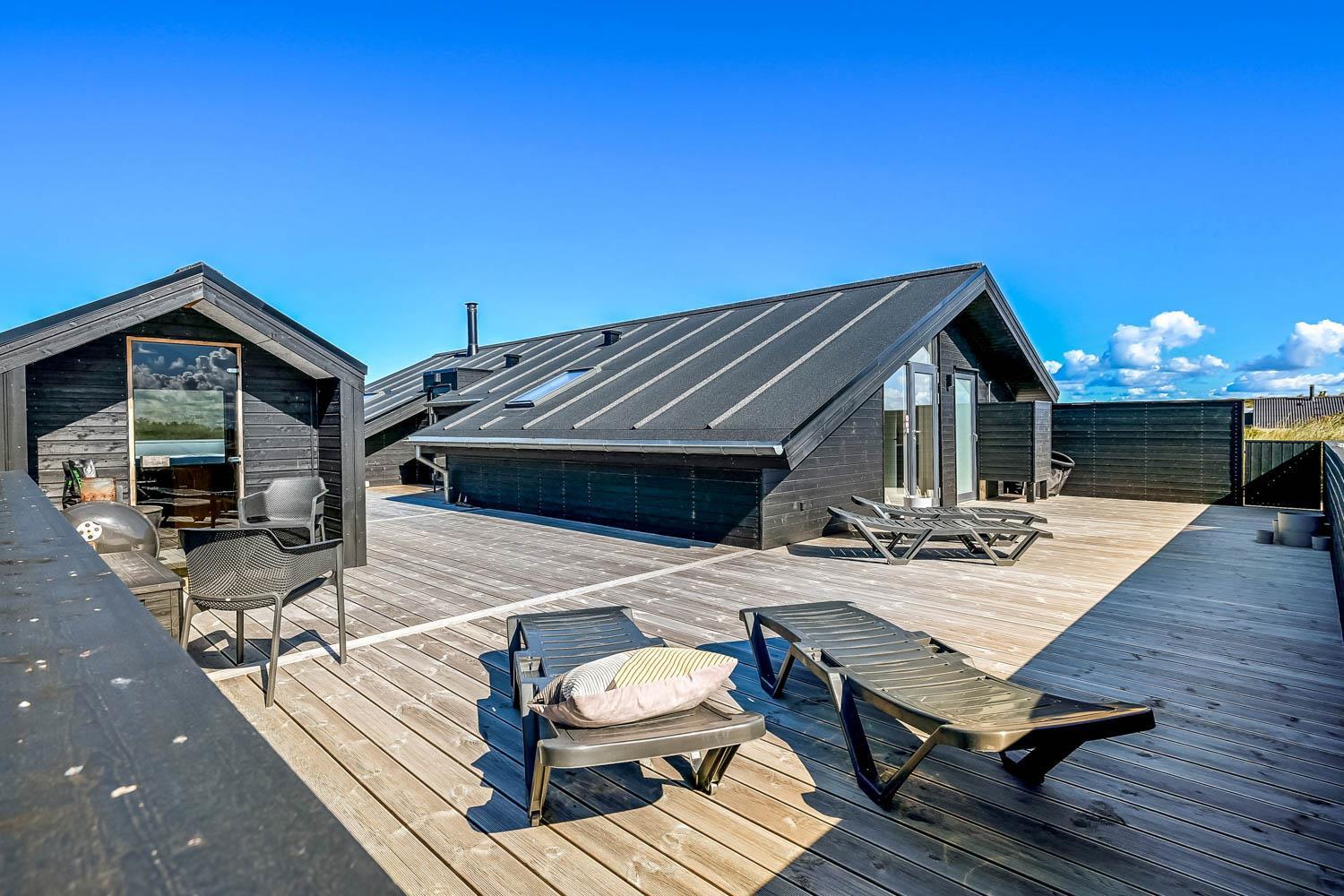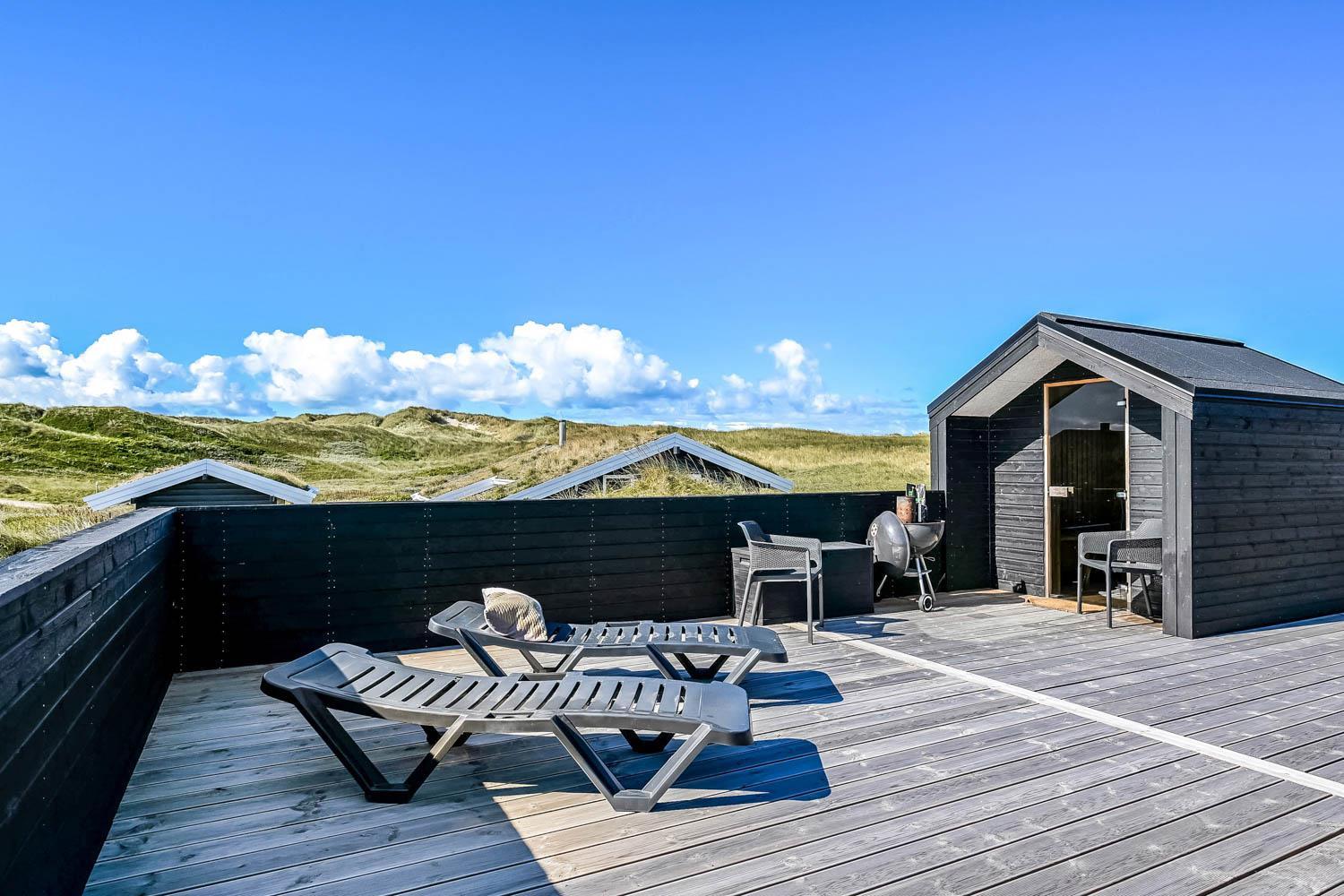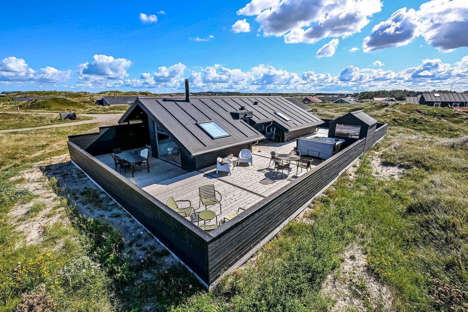 Fuldstændig unikt og fantastisk beliggende, nyrenoveret luksushus. Huset ligger som det sidste hus op mod klitterne ved Vesterhavet og med fantastisk udsigt til klitterne ved Vesterhavet. Et moderne feriehus i træ som er noget ganske særligt. Der er en stor terrasse omkring huset som bla. Er med en udendørs spabad, udendørs bruser, udendørs sauna samt havemøbler, grill og solvogne. Gratis fibernet. Et hus med plads til 6 personer som kan nyde denne luksus. En rolig stund, en plads i solen er blot noget af det huset tilbyder.