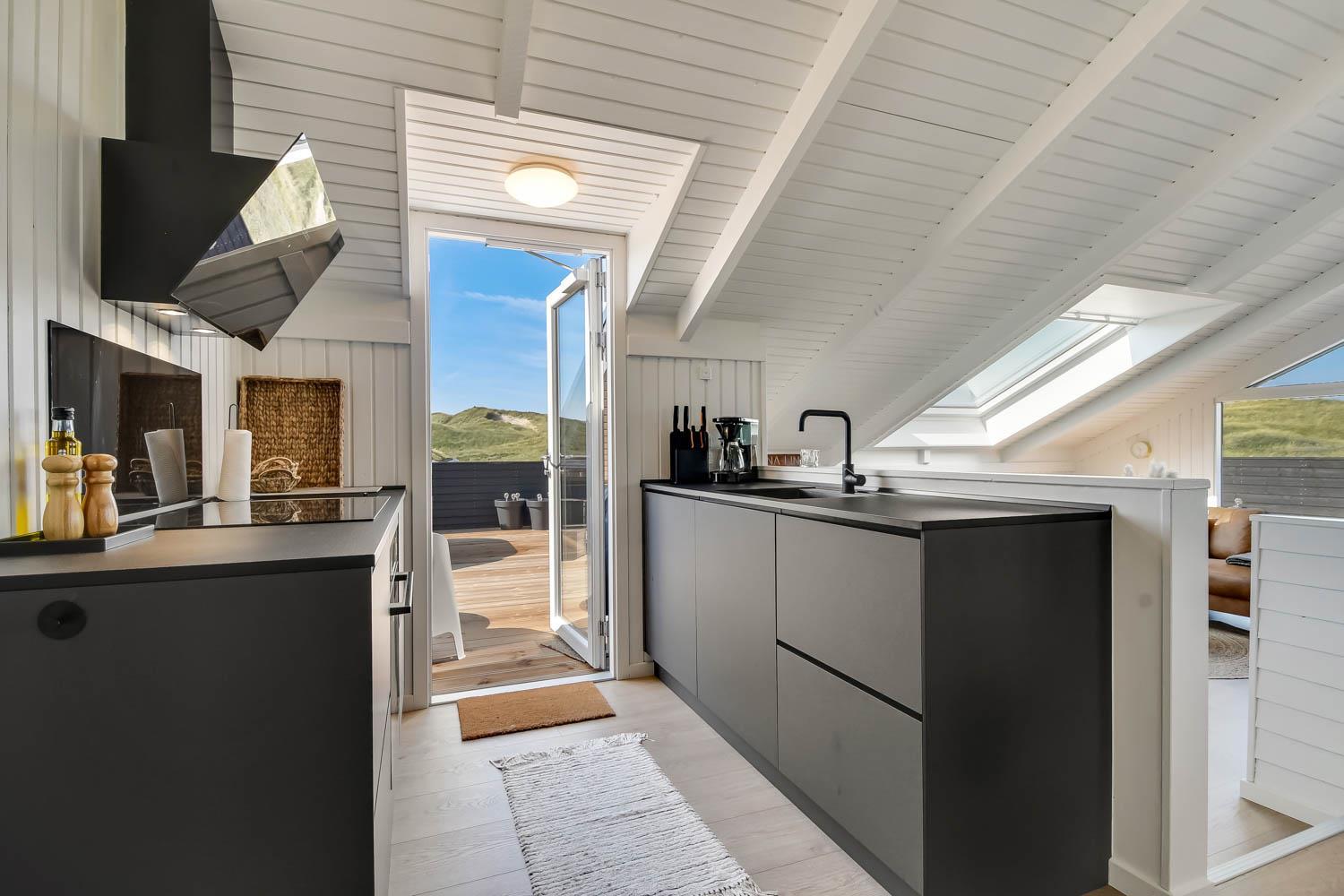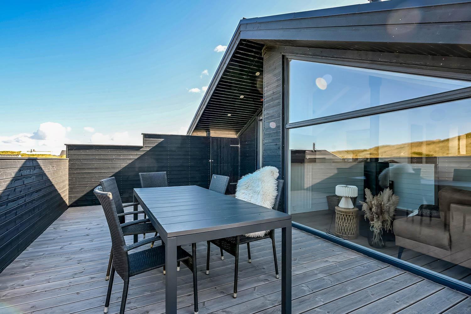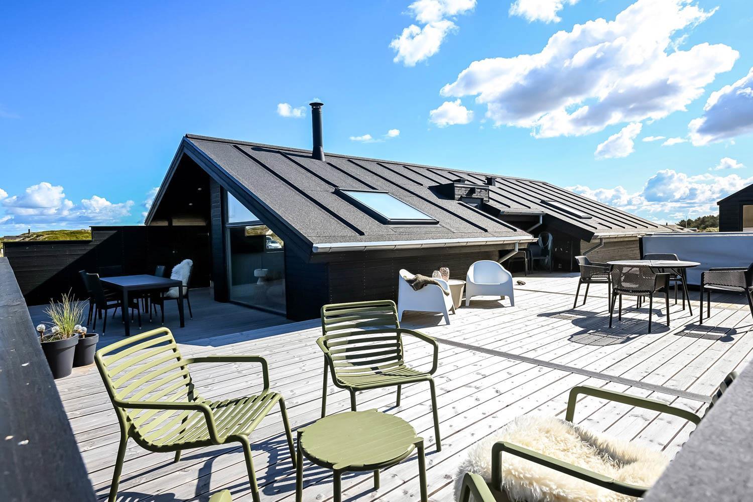 Fuldstændig unikt og fantastisk beliggende, nyrenoveret luksushus. Huset ligger som det sidste hus op mod klitterne ved Vesterhavet og med fantastisk udsigt til klitterne ved Vesterhavet. Et moderne feriehus i træ som er noget ganske særligt. Der er en stor terrasse omkring huset som bla. Er med en udendørs spabad, udendørs bruser, udendørs sauna samt havemøbler, grill og solvogne. Gratis fibernet. Et hus med plads til 6 personer som kan nyde denne luksus. En rolig stund, en plads i solen er blot noget af det huset tilbyder.