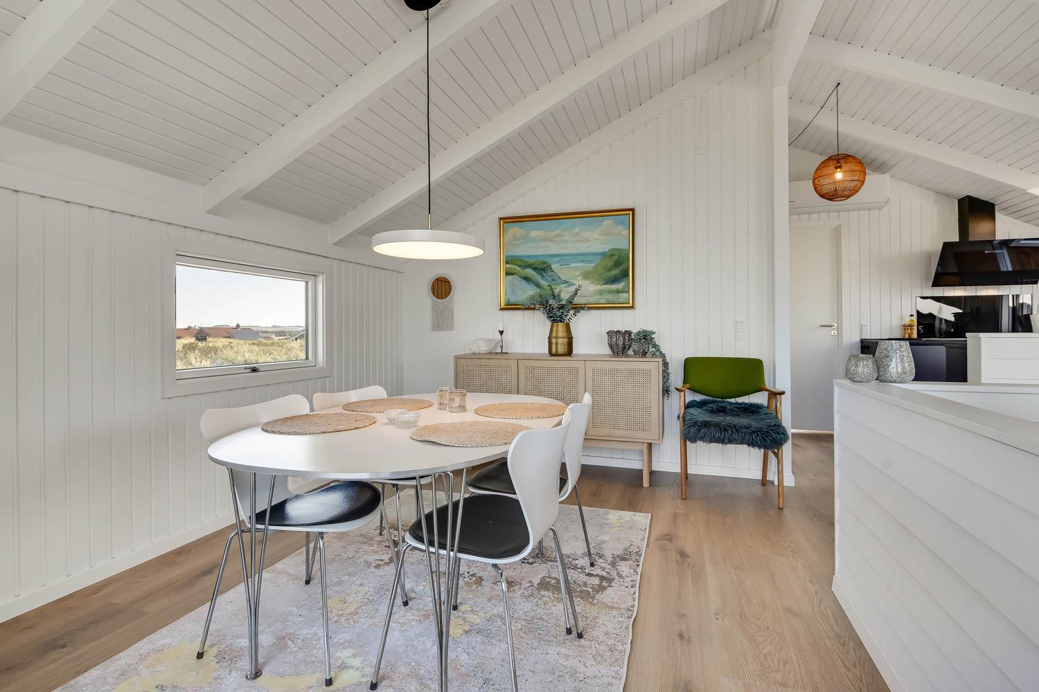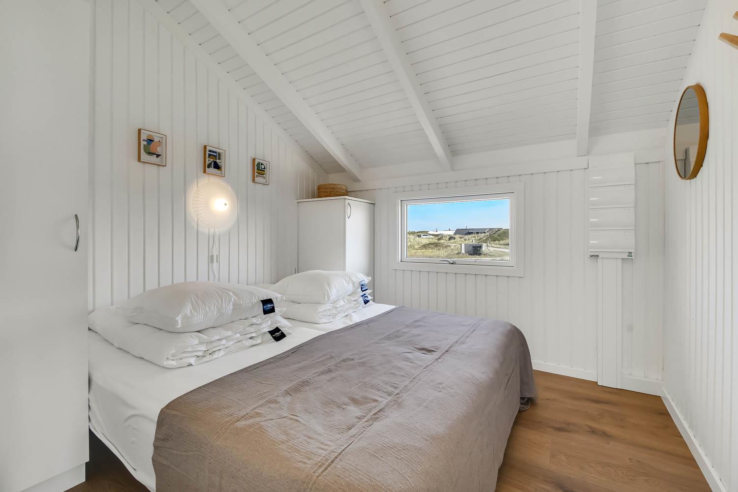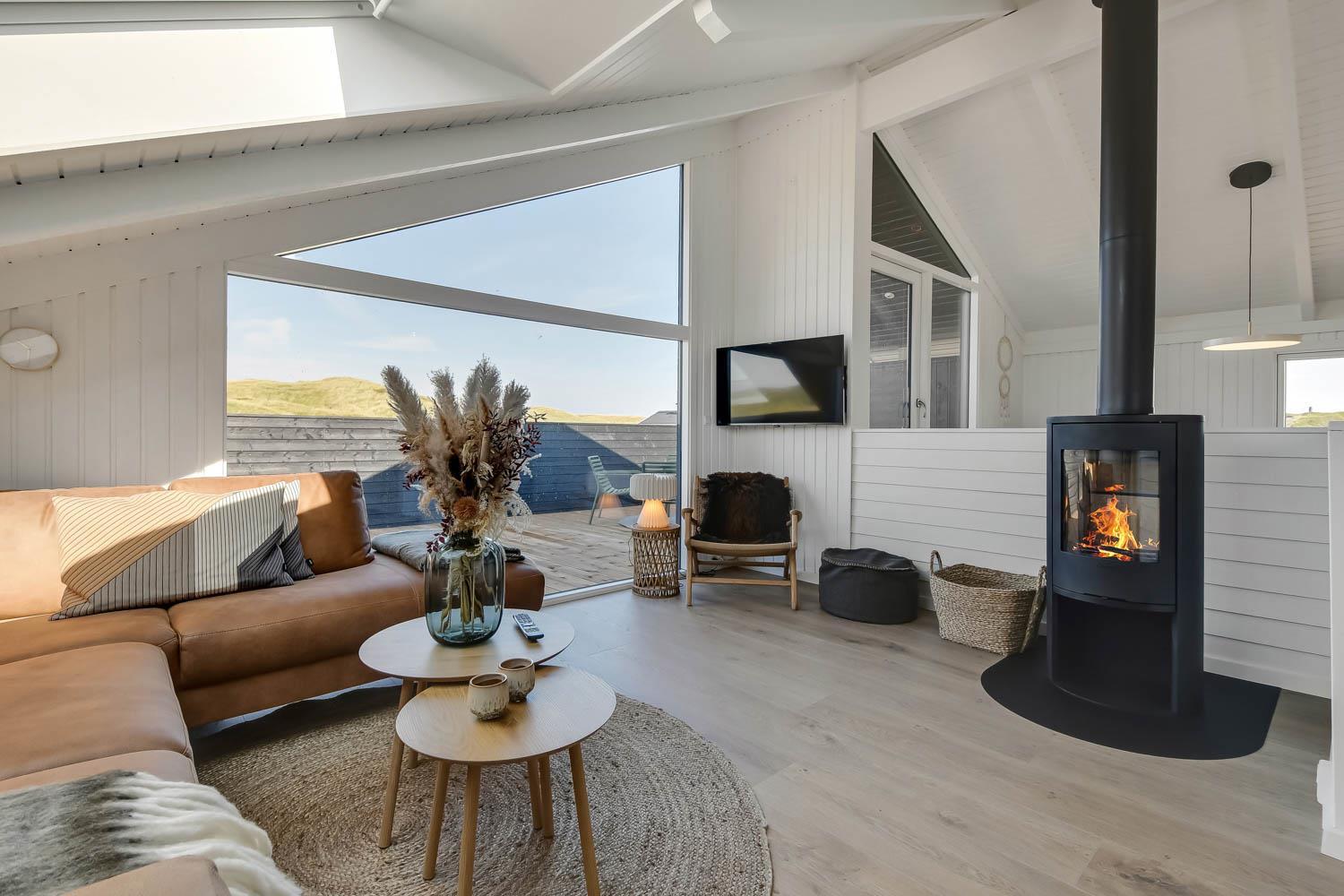 Allerede når bilen rammer grusvejen, med få meter til huset, bliver det klart at husets beliggenhed er noget ganske særligt. Huset er 106 m2 og har 4 dejlige soverum; 1DS + 1DS + 1DS + 2S. Helt nye og gode senge. I hjertet af huset findes et stort veludstyret køkken/alrum med alt i service/køkkengrej og alt i hårde hvidevarer. Det åbne køkken er bl.a med glaskeramisk komfur, emhætte, køle-/fryseskab, mikroovn og opvaskemaskine. Der er linoleumsgulv og udgang til terrassen i køkkenafdelingen. Nyd og bliv betaget af at kigge ud af vinduerne og nyd udsigten til klitterne ved Vesterhavet. Slap af i de flotte lædermøbler. Se TV på husets smart-TV som har indbygget danske og tyske TV-programmer, radio og mulighed for streaming tjenester via Chromecast, brændeovn og varmepumpe som begge sørger for en behagelig varme også i den kolde tid og samtidig er medvirkende til en reduceret forbrugsafregning. Der er linoleumsgulve i hele huset, som også er særdeles rengøringsvenlige. Der er udgang til det unikke terrasse anlæg, hvor der er udendørs vildmarksspa. 2 badeværelser begge med toilet, håndvask, bruser, gulvvarme og klinkegulv. Vaskemaskine er der naturligvis også i huset. Huset lejes ikke ud til ungdomsgrupper og der må max bo 6 personer i huset. Ikke rygerhus. Husdyr ikke tilladt. Obligatorisk slutrengøring