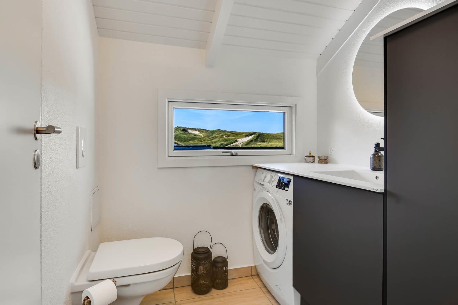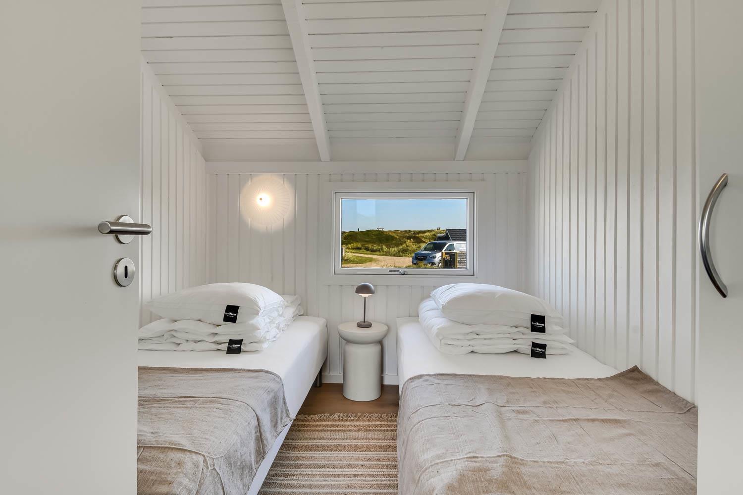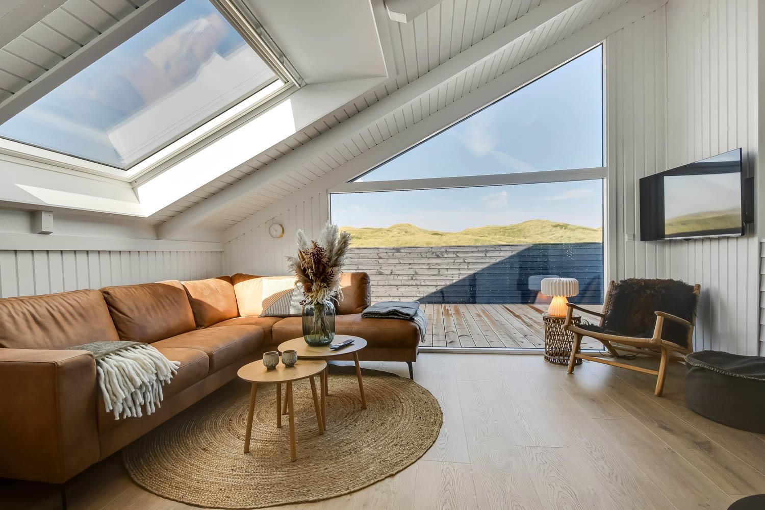 Allerede når bilen rammer grusvejen, med få meter til huset, bliver det klart at husets beliggenhed er noget ganske særligt. Huset er 106 m2 og har 4 dejlige soverum; 1DS + 1DS + 1DS + 2S. Helt nye og gode senge. I hjertet af huset findes et stort veludstyret køkken/alrum med alt i service/køkkengrej og alt i hårde hvidevarer. Det åbne køkken er bl.a med glaskeramisk komfur, emhætte, køle-/fryseskab, mikroovn og opvaskemaskine. Der er linoleumsgulv og udgang til terrassen i køkkenafdelingen. Nyd og bliv betaget af at kigge ud af vinduerne og nyd udsigten til klitterne ved Vesterhavet. Slap af i de flotte lædermøbler. Se TV på husets smart-TV som har indbygget danske og tyske TV-programmer, radio og mulighed for streaming tjenester via Chromecast, brændeovn og varmepumpe som begge sørger for en behagelig varme også i den kolde tid og samtidig er medvirkende til en reduceret forbrugsafregning. Der er linoleumsgulve i hele huset, som også er særdeles rengøringsvenlige. Der er udgang til det unikke terrasse anlæg, hvor der er udendørs vildmarksspa. 2 badeværelser begge med toilet, håndvask, bruser, gulvvarme og klinkegulv. Vaskemaskine er der naturligvis også i huset. Huset lejes ikke ud til ungdomsgrupper og der må max bo 6 personer i huset. Ikke rygerhus. Husdyr ikke tilladt. Obligatorisk slutrengøring