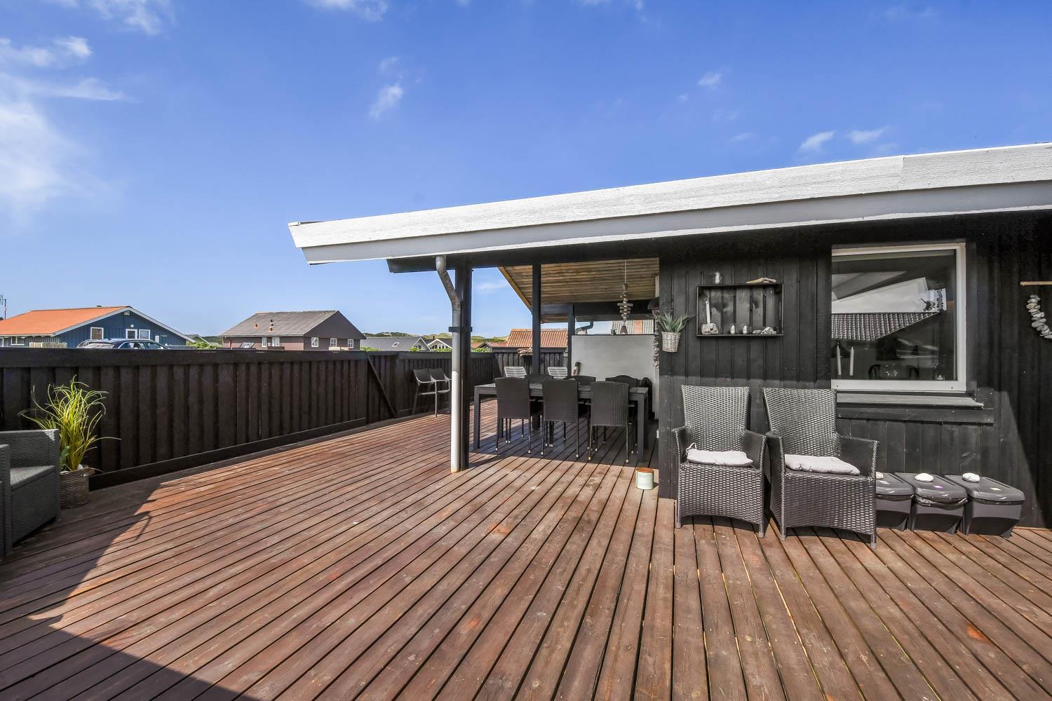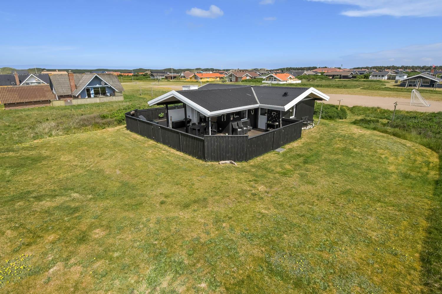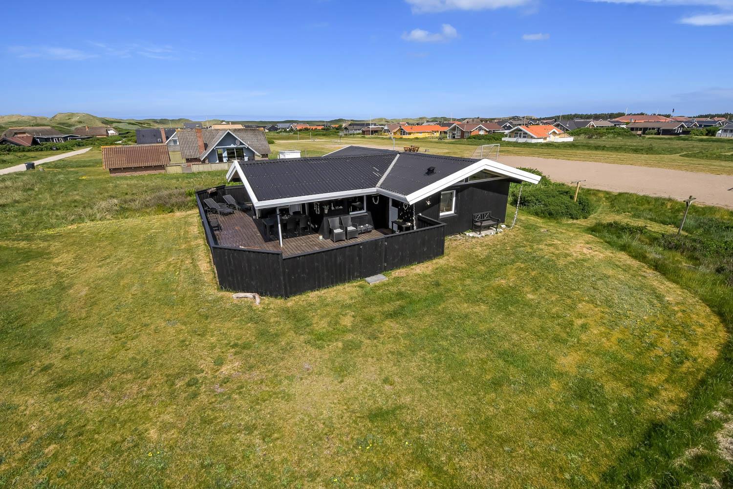 Huset er beliggende i Vejlby Klit blot 250 m fra Vesterhavet og 300 m fra Ferring Sø. Huset ligger på en naturgrund med en dejlig stor indhegnet træterrasse som er delvis overdækket og der er selvfølgelig havemøbler, solvogne og grill. Til de mindste gæster er der en sandkasse. Området omkring Vejlby Klit er meget velegnet til vandreture og cykelture. Der findes en sti omkring Ferring Sø, så man kan vandre hele vejen omkring søen. Vesterhavet indbyder hver dag til nye oplevelser og her er der mulighed for at bade, fiske, sætte drager op og meget andet. Et dejligt hus som er perfekt for en familie eller et par som ønsker et godt hus med en god beliggenhed.