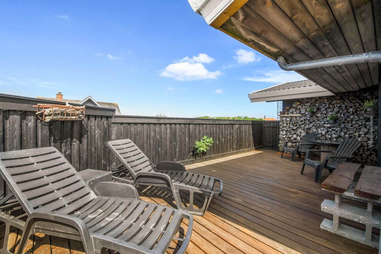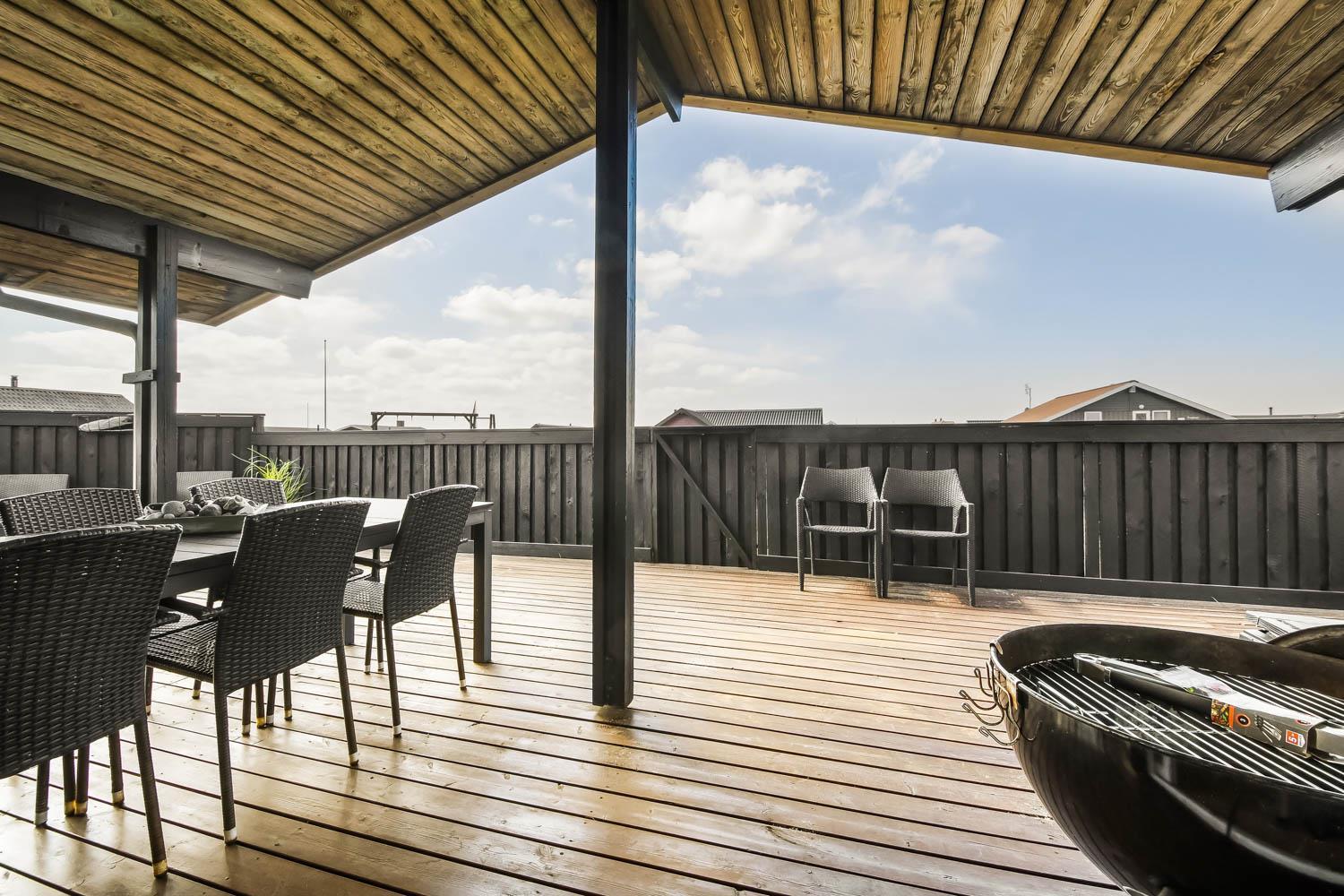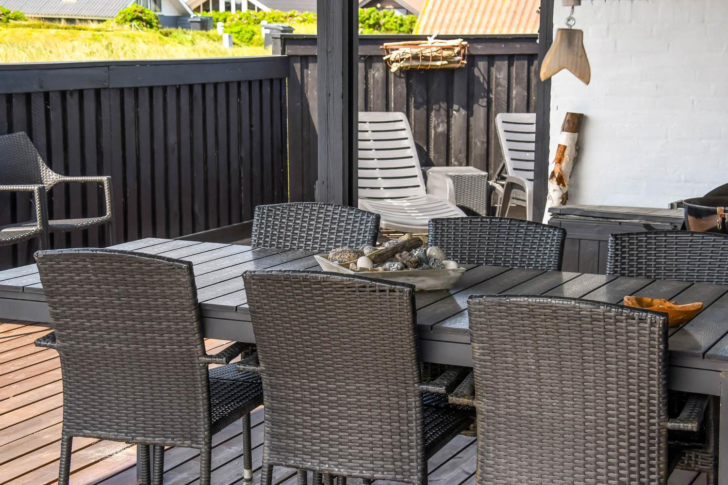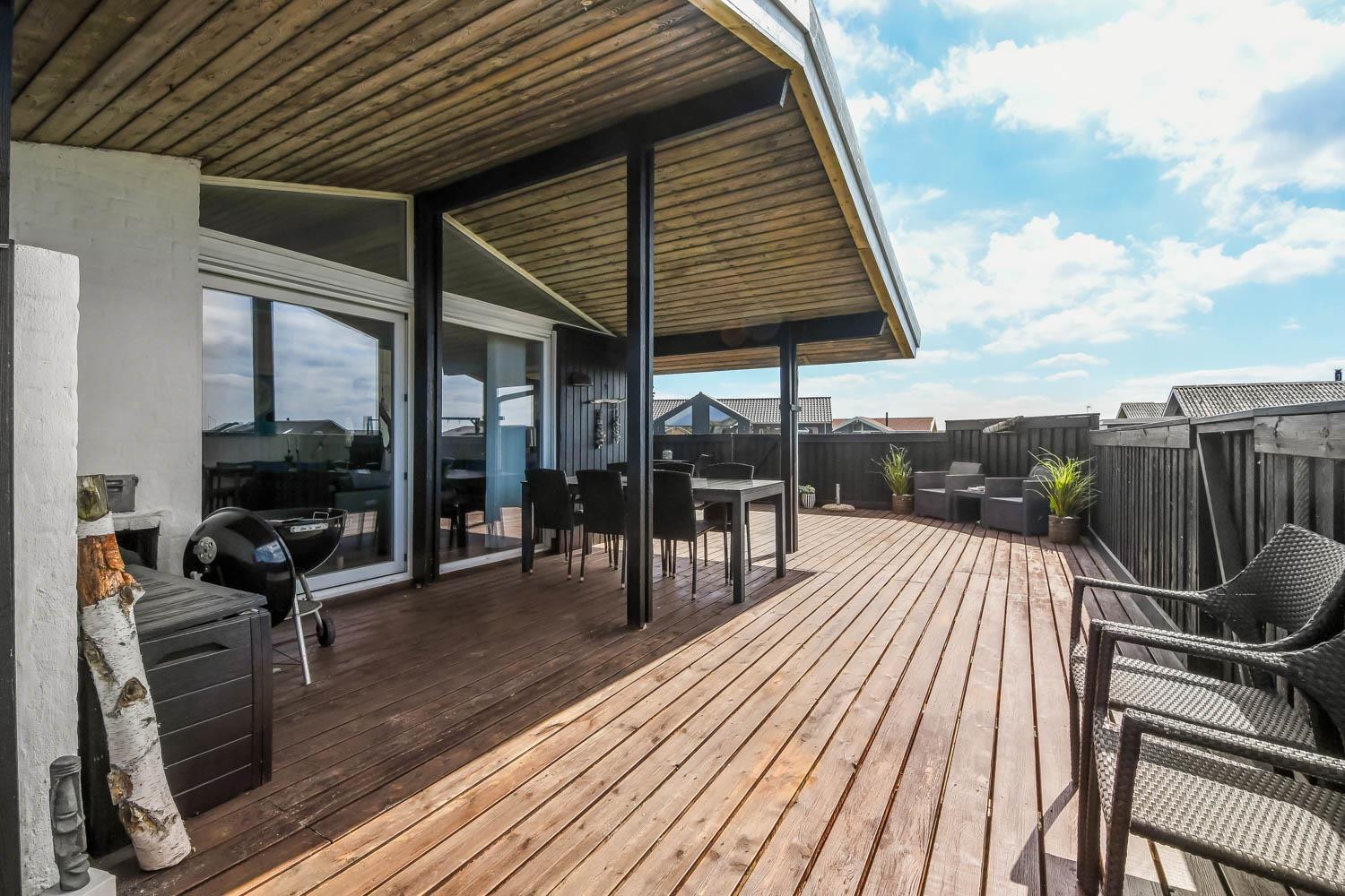 Huset er beliggende i Vejlby Klit blot 250 m fra Vesterhavet og 300 m fra Ferring Sø. Huset ligger på en naturgrund med en dejlig stor indhegnet træterrasse som er delvis overdækket og der er selvfølgelig havemøbler, solvogne og grill. Til de mindste gæster er der en sandkasse. Området omkring Vejlby Klit er meget velegnet til vandreture og cykelture. Der findes en sti omkring Ferring Sø, så man kan vandre hele vejen omkring søen. Vesterhavet indbyder hver dag til nye oplevelser og her er der mulighed for at bade, fiske, sætte drager op og meget andet. Et dejligt hus som er perfekt for en familie eller et par som ønsker et godt hus med en god beliggenhed.