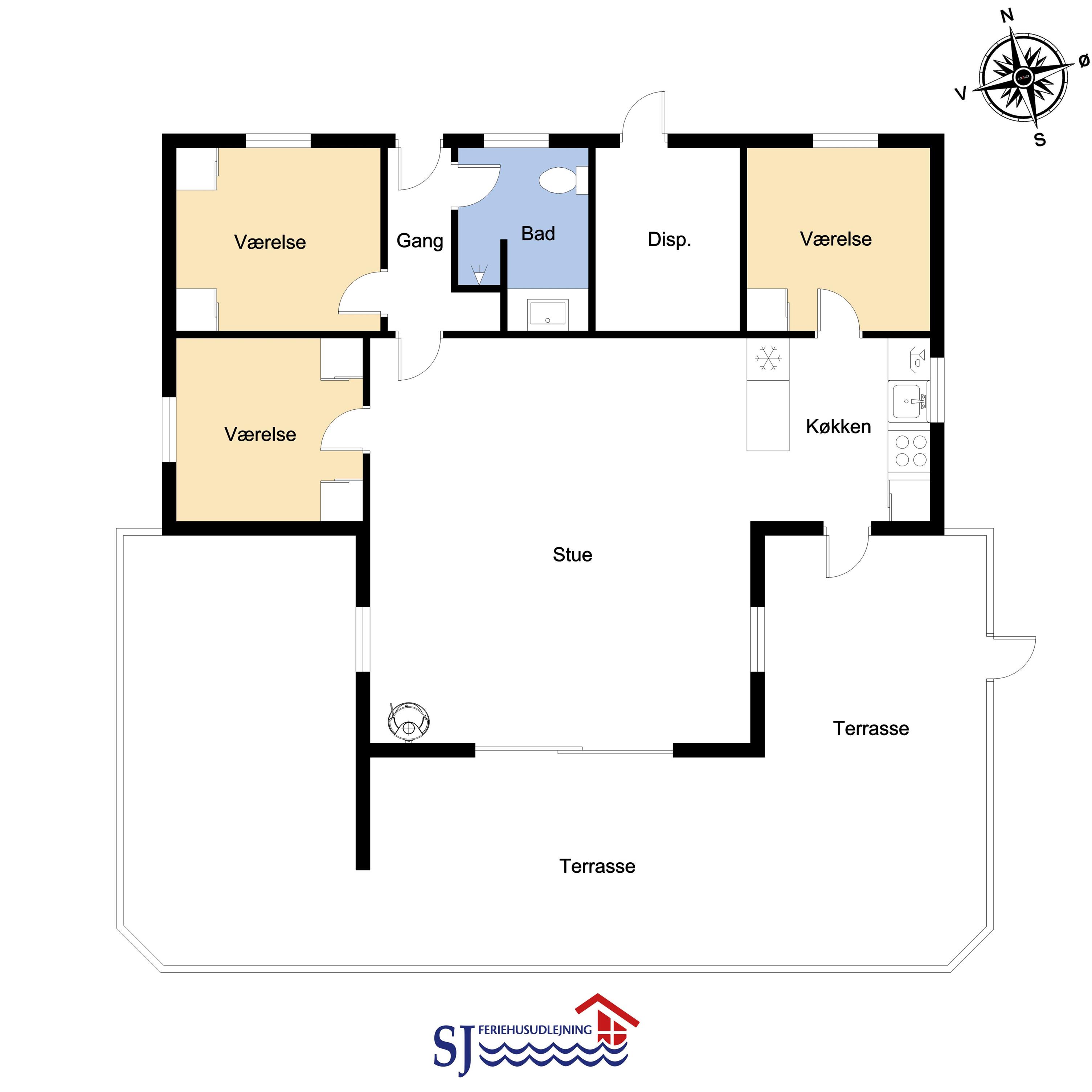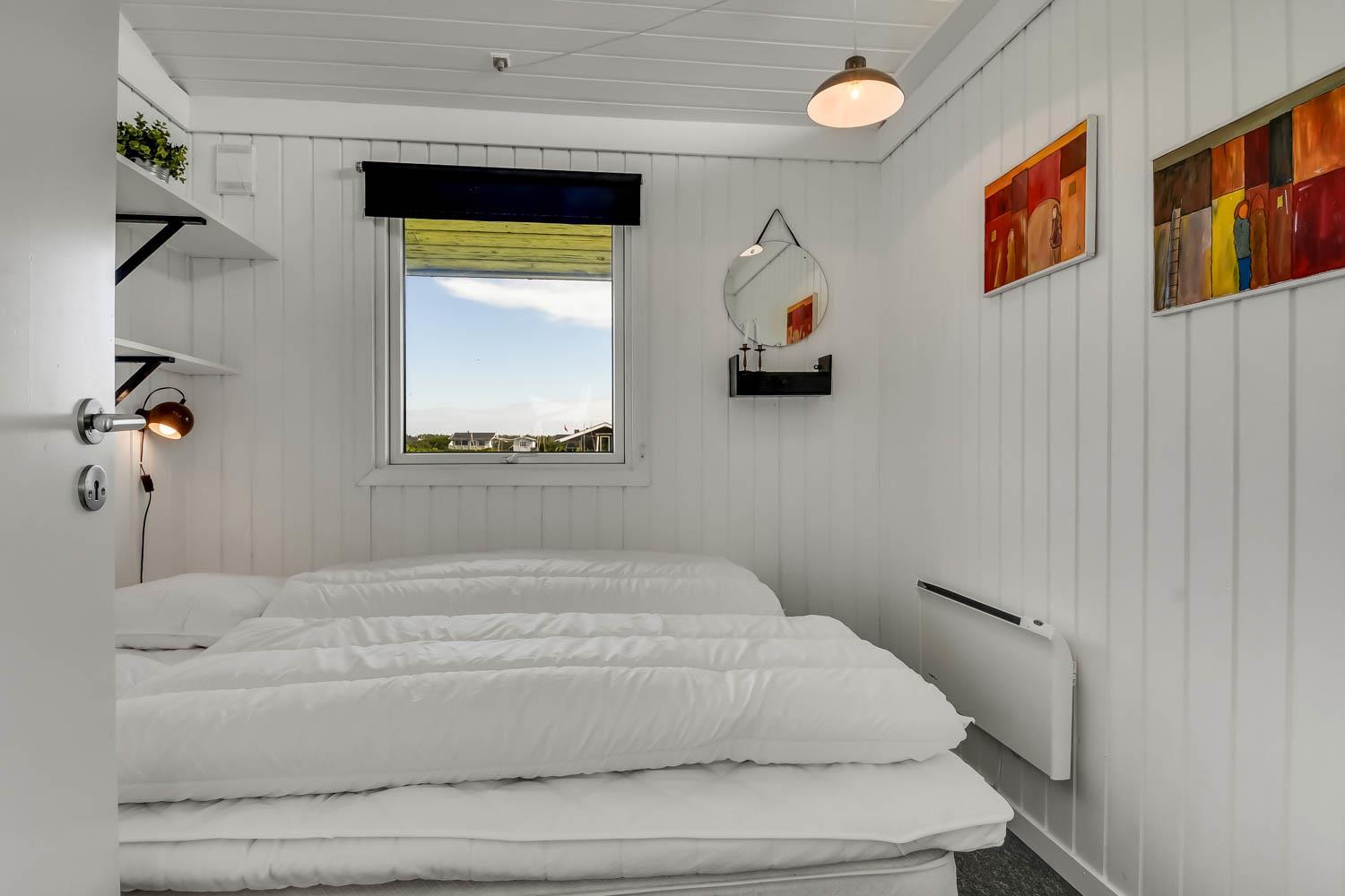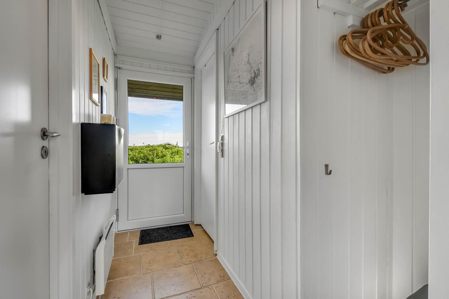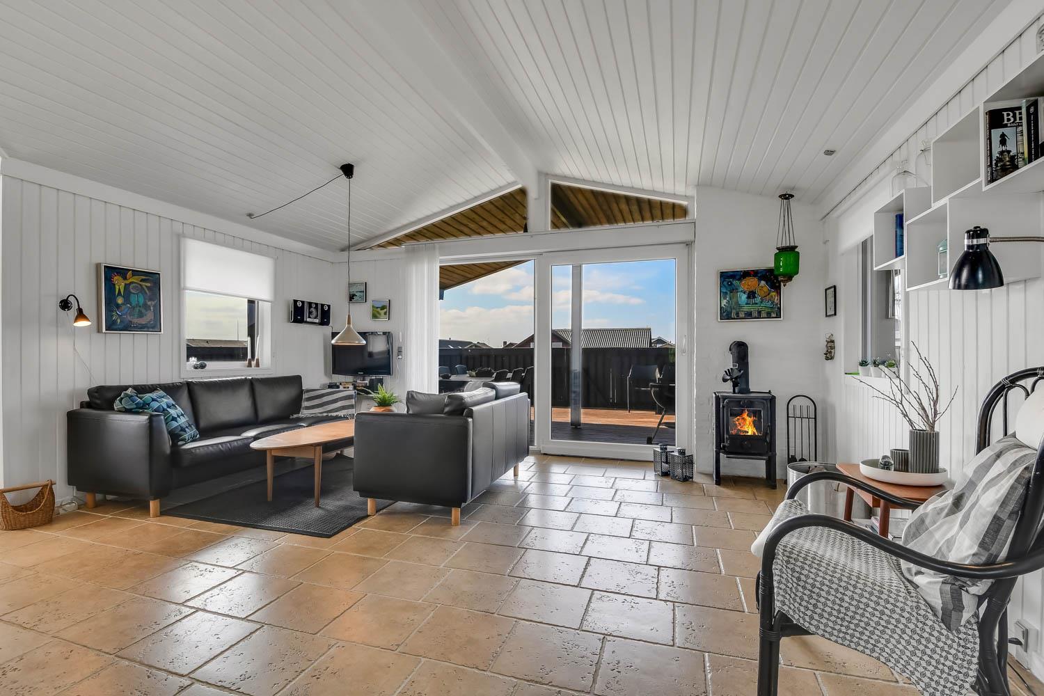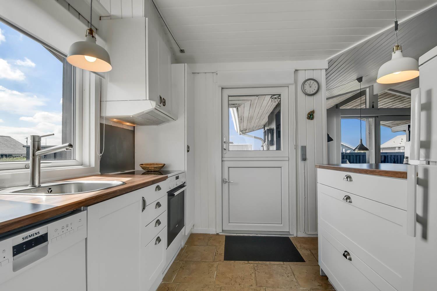 Huset er meget velholdt og dejligt indrettet og indeholder en stue som er kombineret med køkkenet. Køkkenet er godt udstyret og indeholder glaskeramisk komfur, køle-/fryseskab, opvaskemaskine og mikroovn, der er klinkegulv i køkkenet. Stor åben stue med stort vinduesparti som sørger for et godt lysindfald i hele rummet. Stuen er indrettet med lædermøbler, spisebord med stole og TV med danske og tyske programmer, CD-afspiller, gulv i stuen er klinker. Desuden er der en dejlig brændeovn og en varmepumpe som giver en behagelig og hyggelig varme, og er medvirkende til en billiger forbrugsregning. Der er 3 gode soverum i huset: 1DS + 1DS + 2S, der er gulvtæppe i soverummene. Badeværelse med toilet, håndvask og bruserbabybadekar og puslebord. Der er 1 barnestol til de mindste gæster. 1 husdyr er tilladt. Ikkeryger hus.