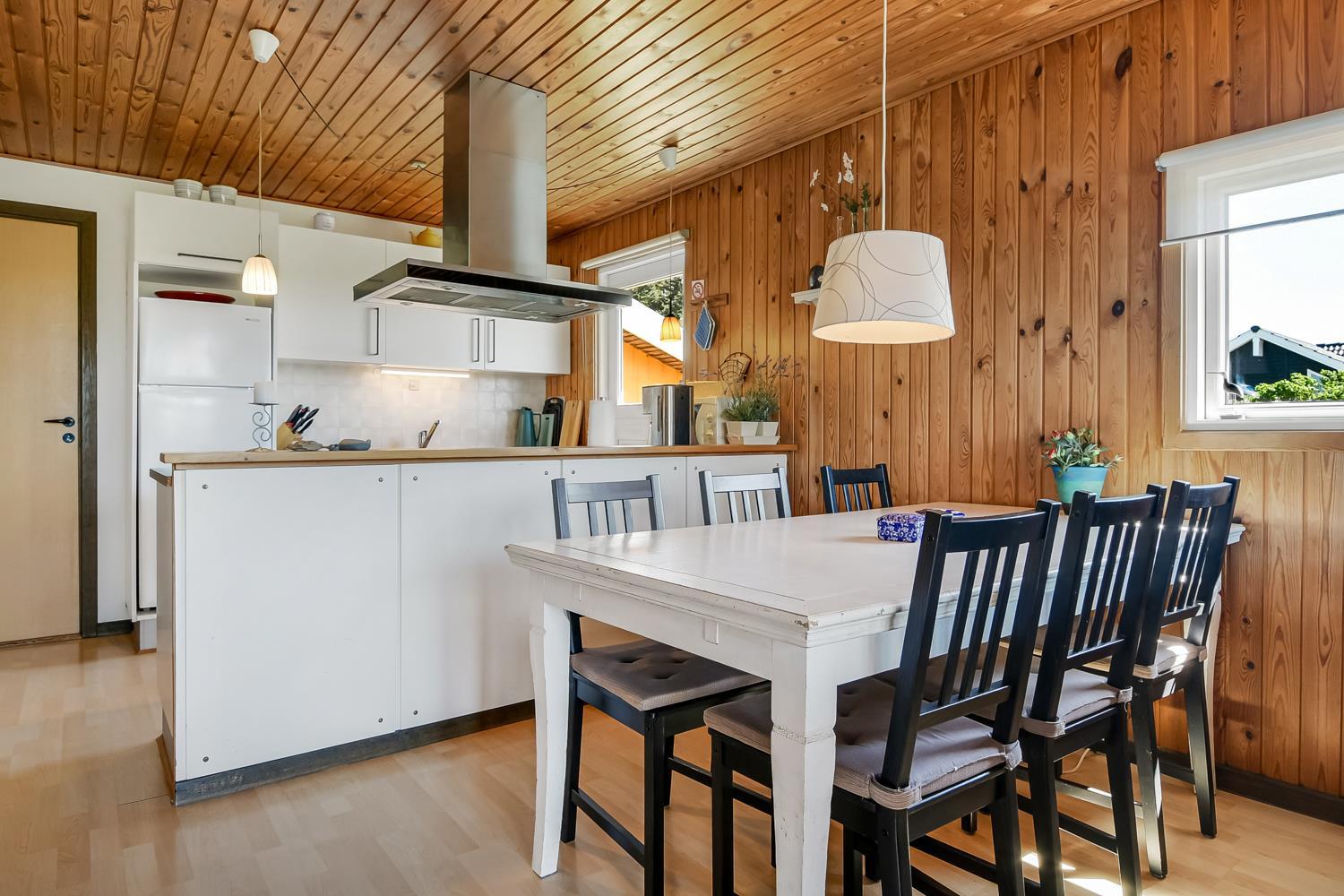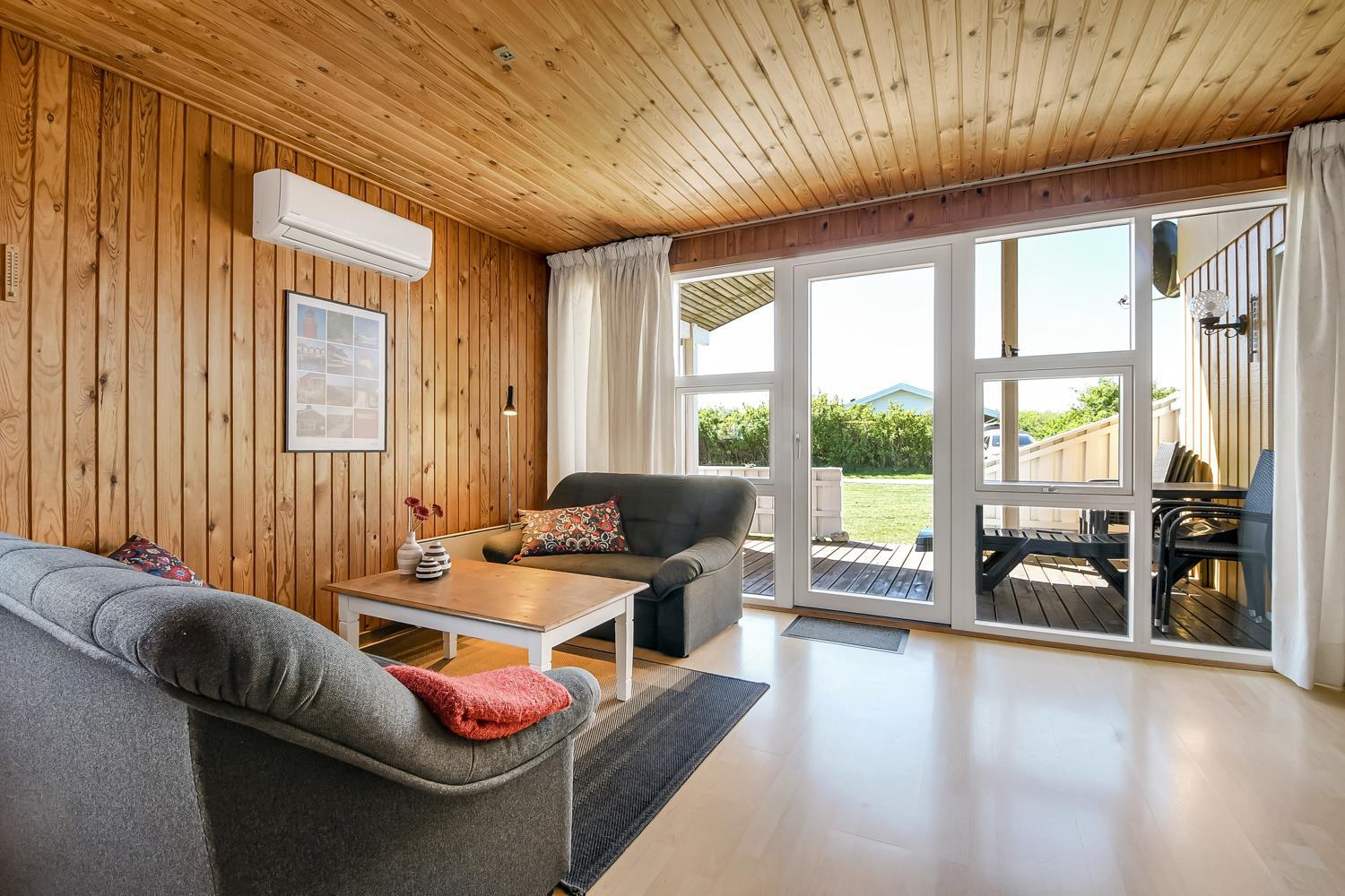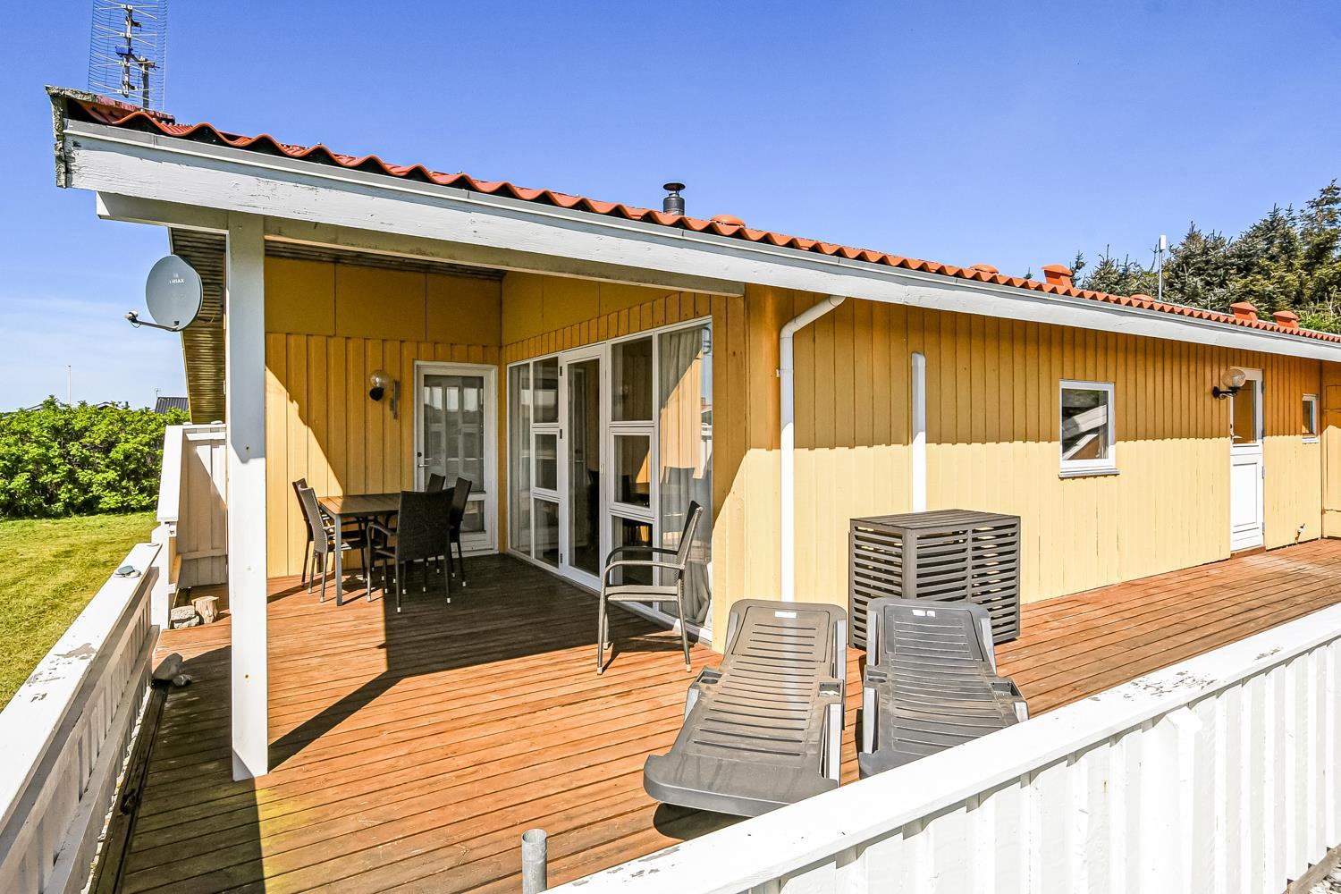 Huset har en åben og overdækket terrasse med havemøbler, hvor I kan nyde solen eller spise ude i læ. Til børnene er der gynge, barnestol og barneseng, så hele familien kan få en komfortabel og sjov ferie.