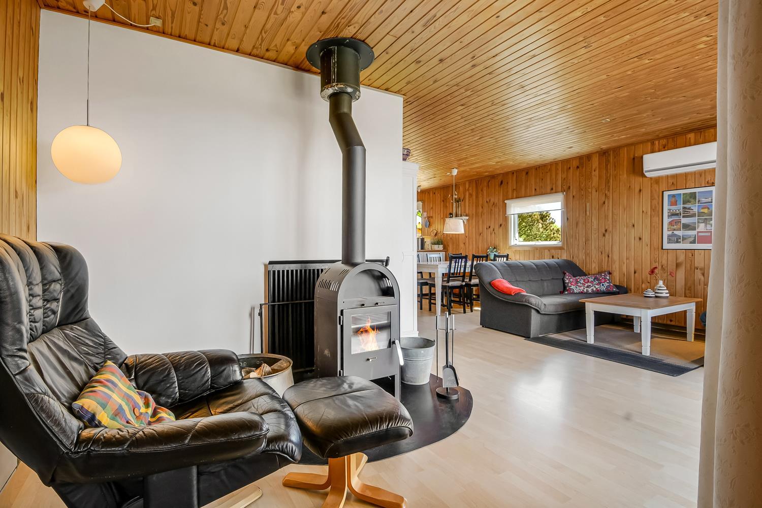 Opholdsstuen er hyggeligt møbleret og har brændeovn, farve-tv med parabol (kun tyske kanaler), dvd-afspiller og stereoanlæg med cd, så I kan slappe af efter en dag ved vandet eller på udflugter i området. Køkkenet er funktionelt udstyret med opvaskemaskine, mikrobølgeovn og lille fryser (15 l), hvilket gør det nemt at tilberede feriens måltider.