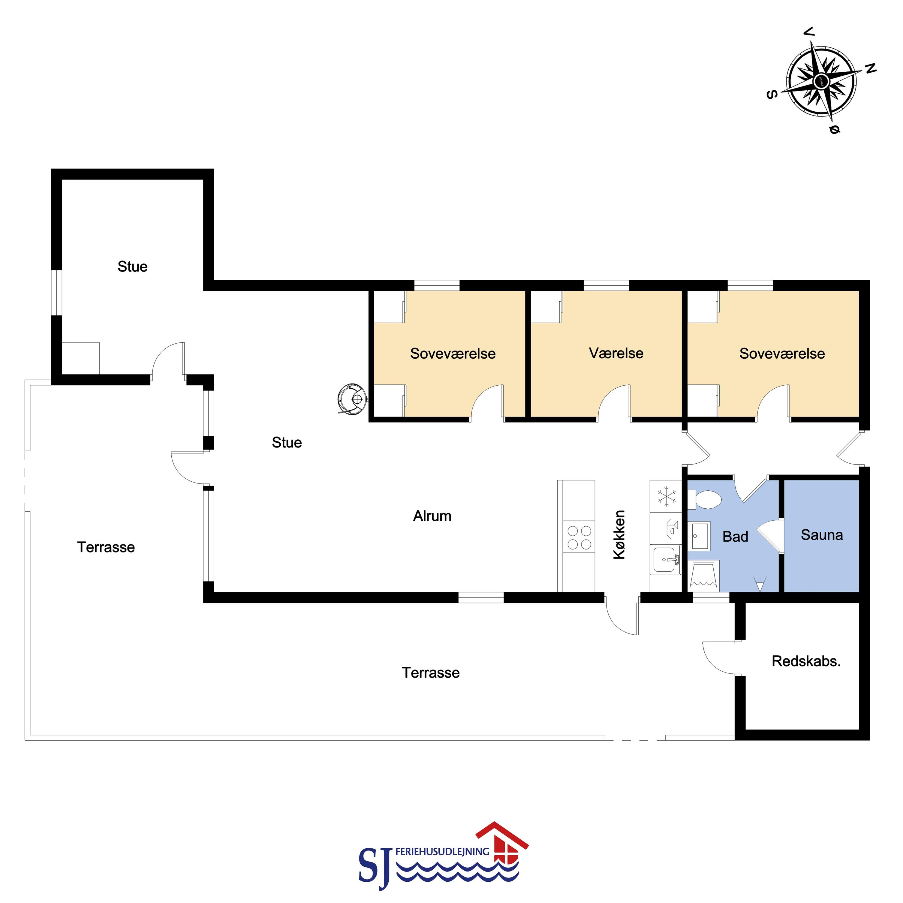 Huset har tre soveværelser: to med dobbeltsenge og ét med fire køjesenge – ideelt til børn og teenagere. Badeværelset er udstyret med bruser, gulvvarme og vaskemaskine, og der er direkte adgang til husets sauna – perfekt til afslapning efter en dag på stranden eller i naturen.