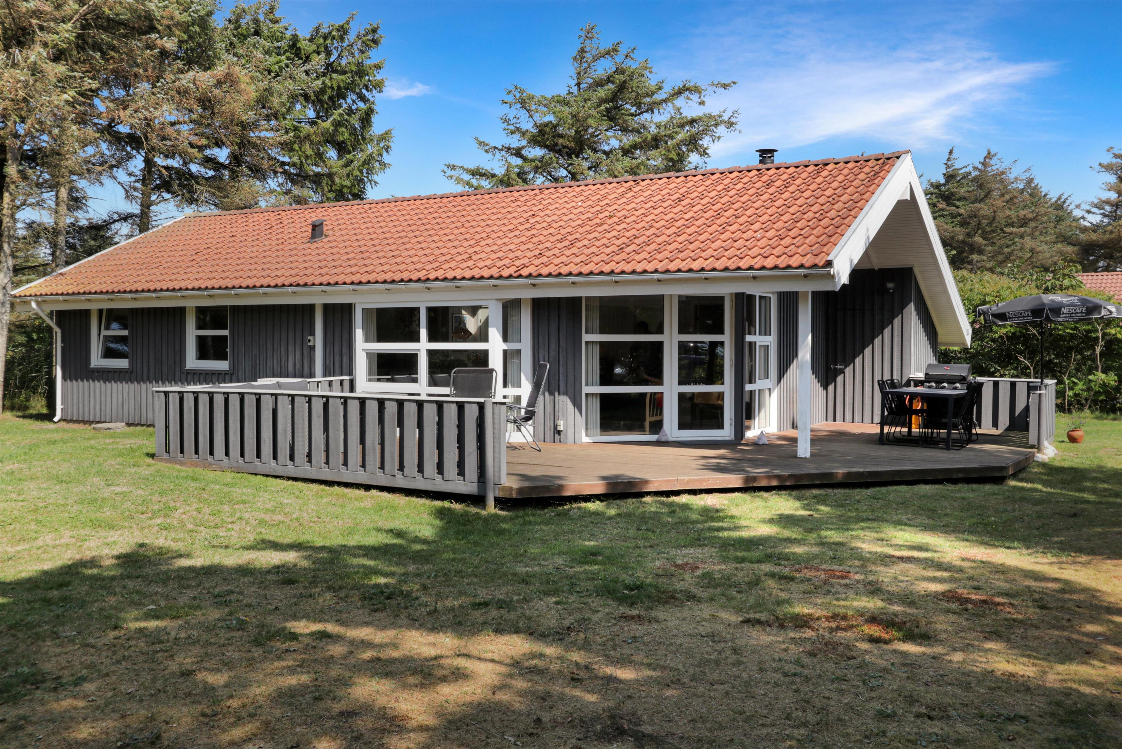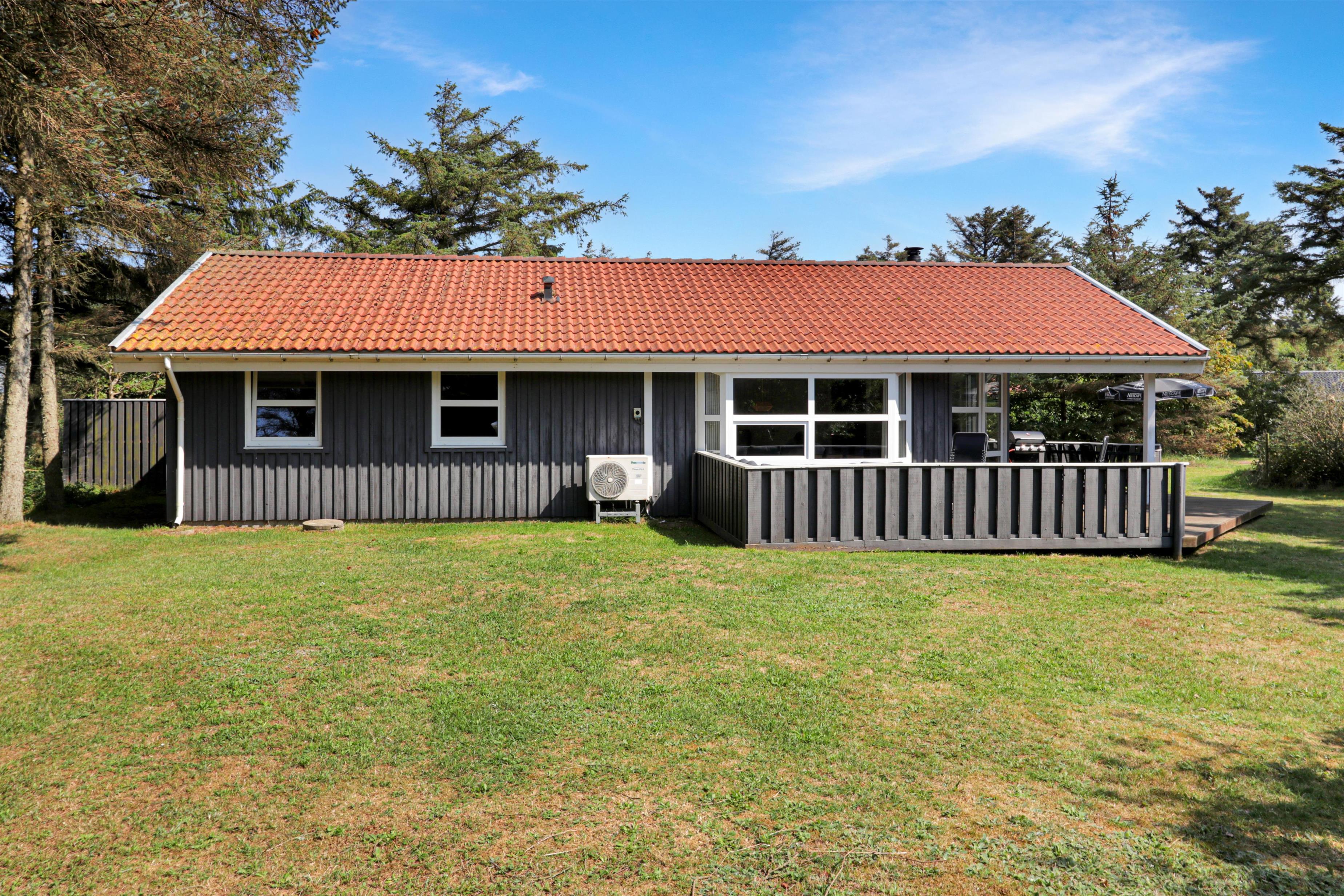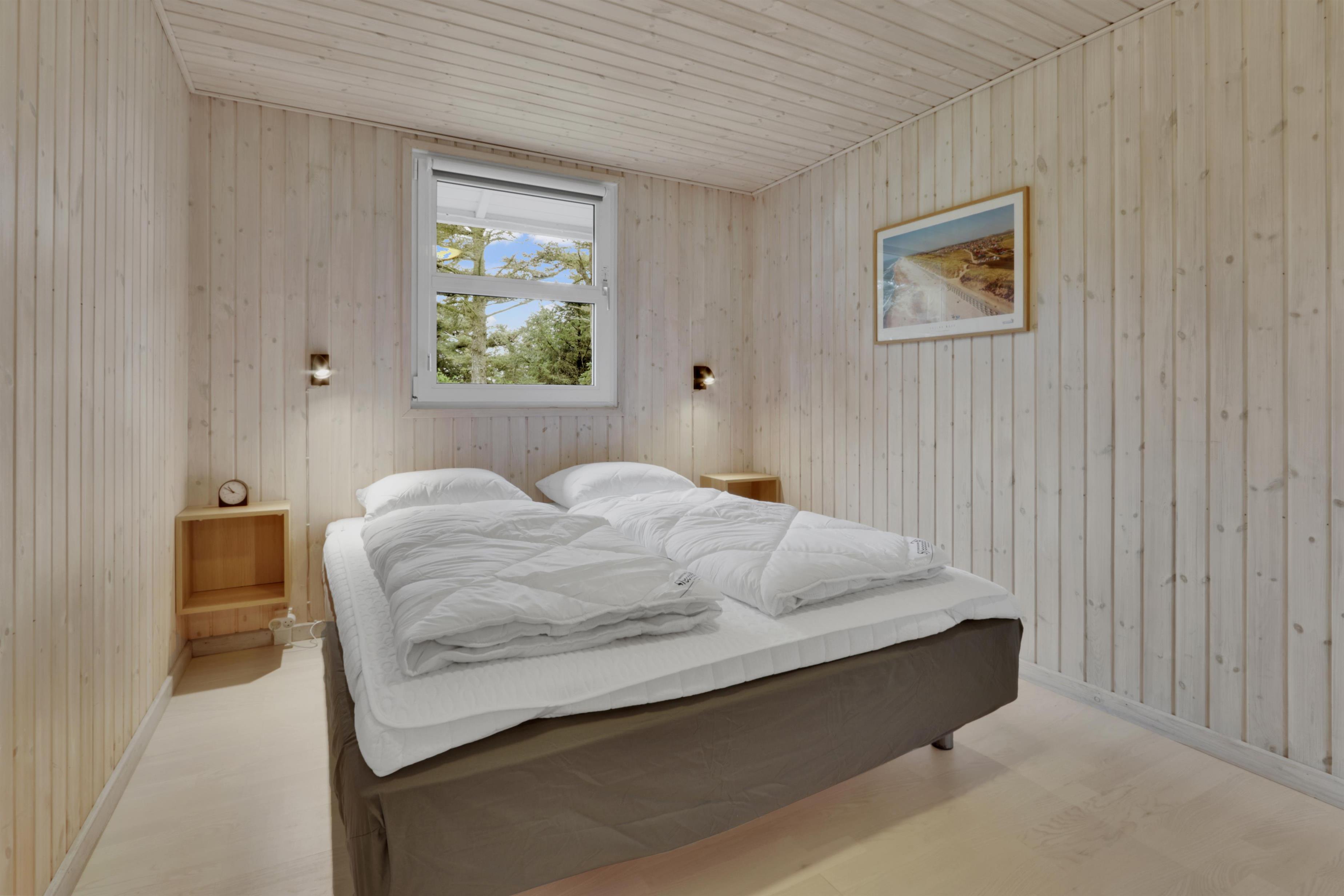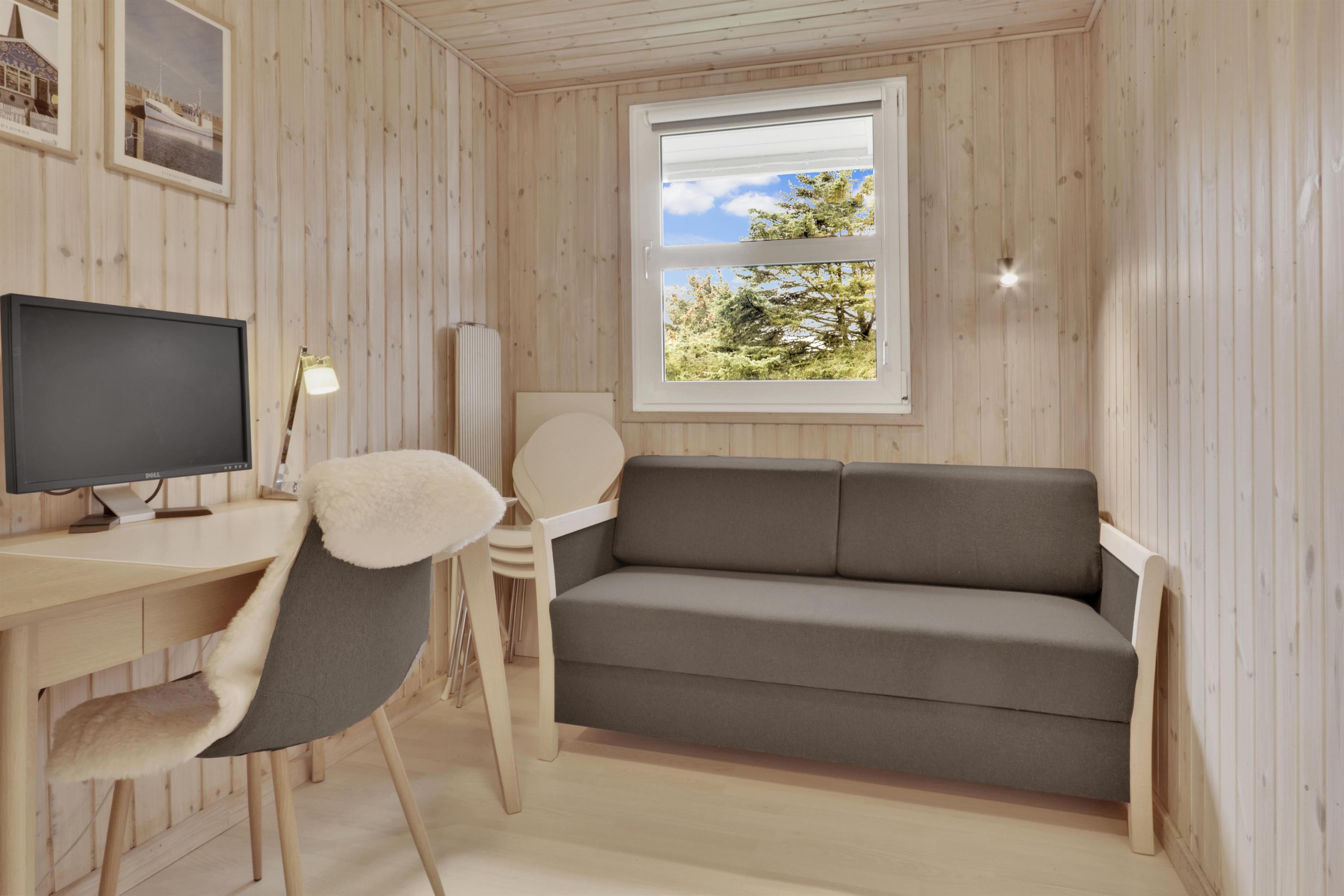 Træd ind i dette rummelige feriehus på 96 m2, hvor I straks vil føle jer hjemme. Med tre hyggelige soveværelser (1DS, 1DS, 2ES) samt et værelse som er indretttet som kontor med skrivebord og en sofa.