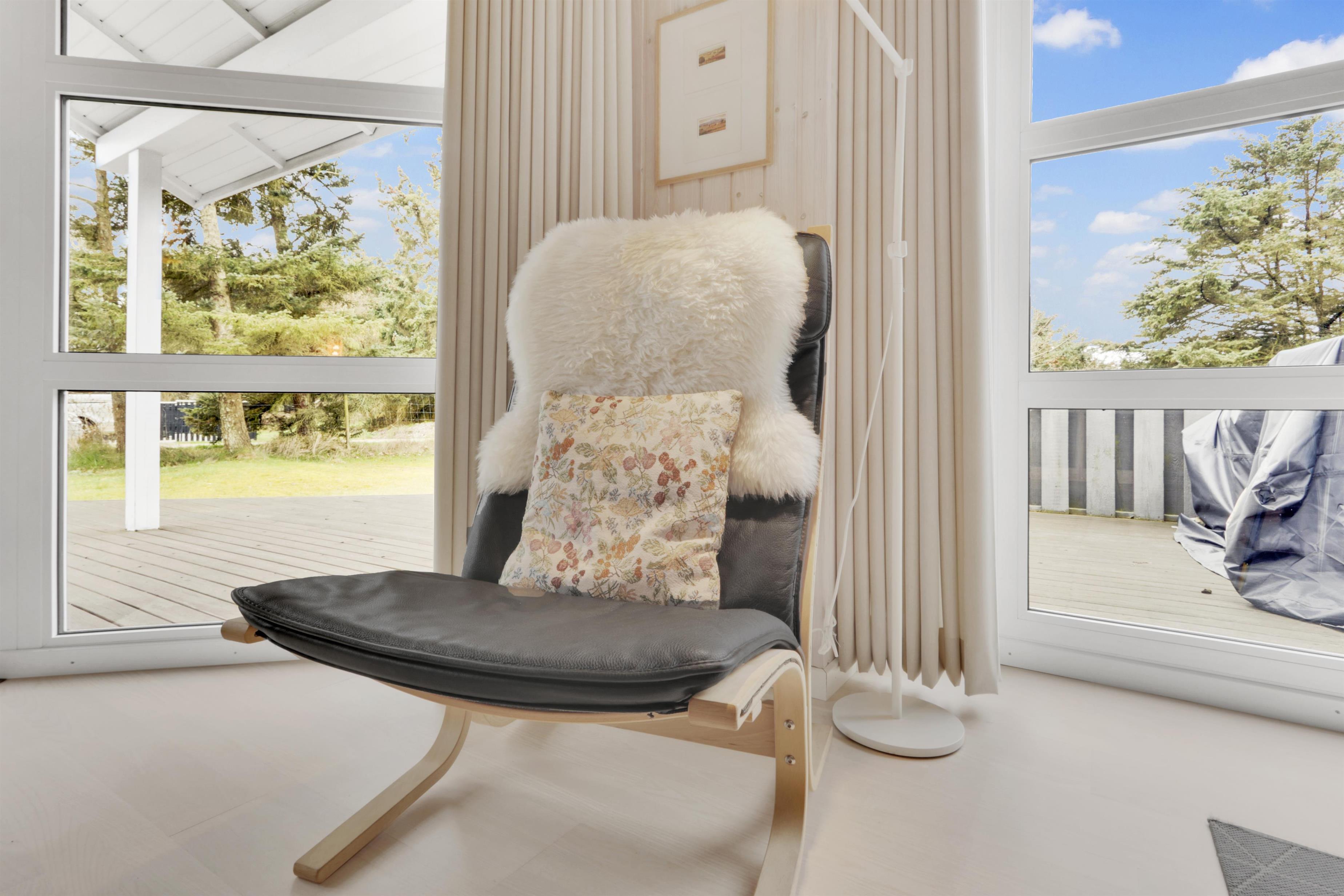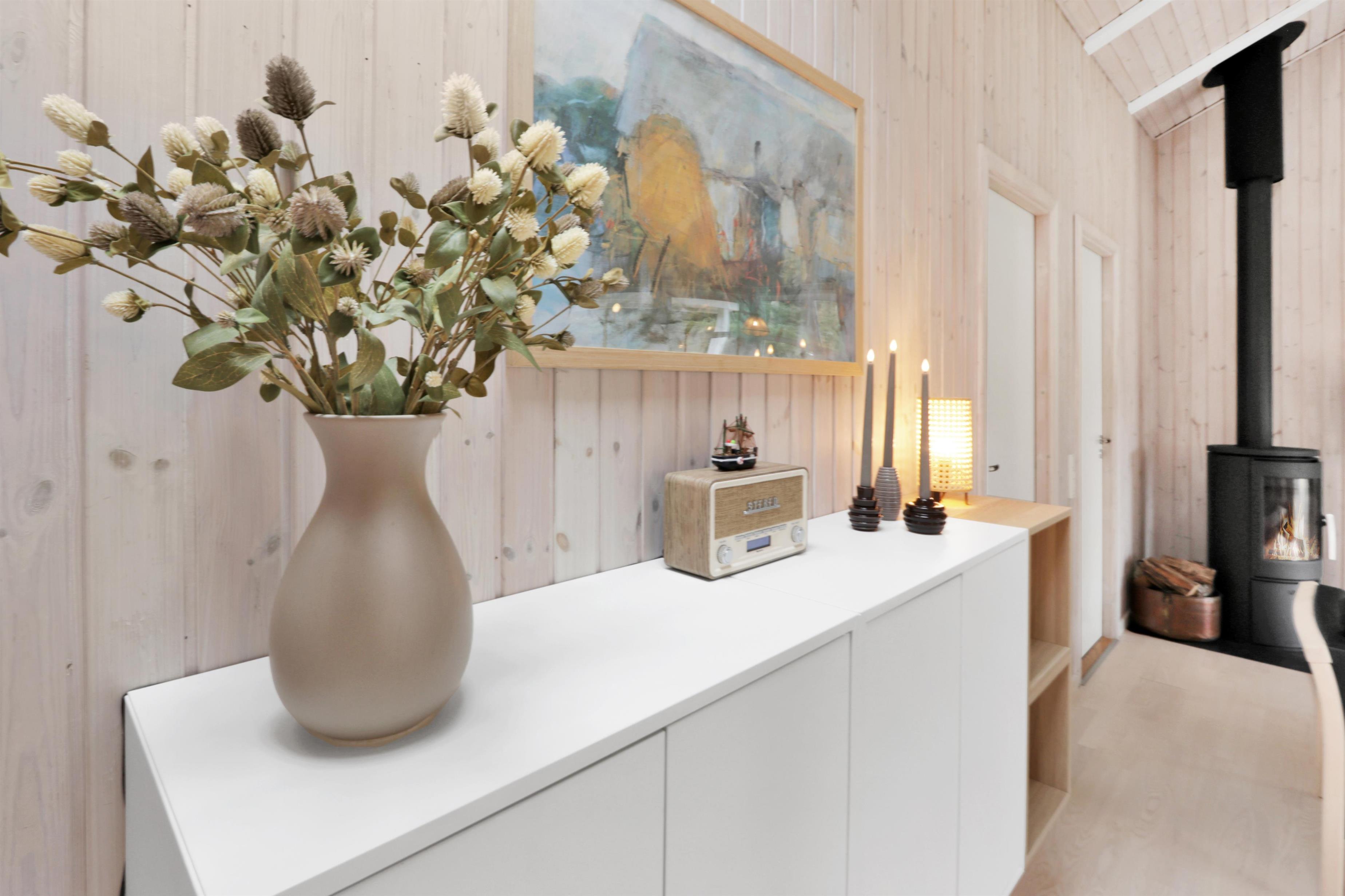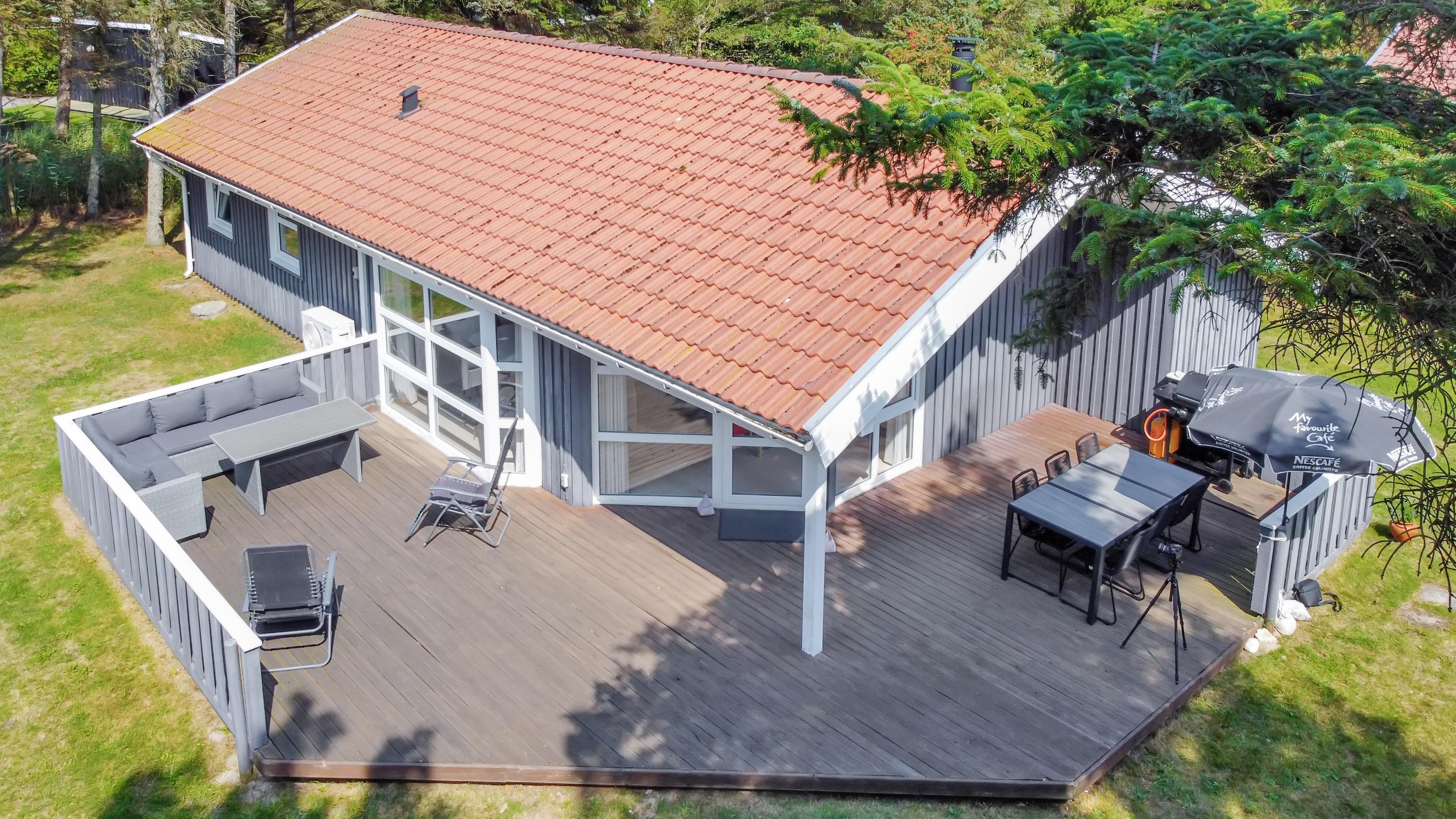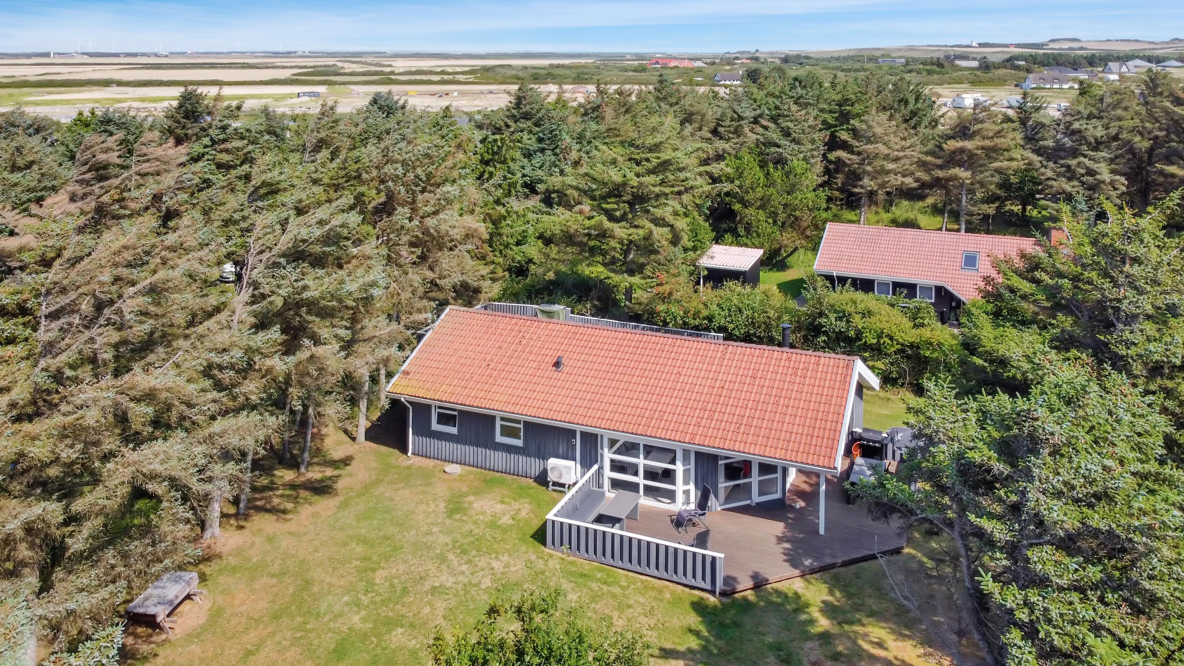 Træd ind i dette rummelige feriehus på 96 m2, hvor I straks vil føle jer hjemme. Med tre hyggelige soveværelser (1DS, 1DS, 2ES) samt et værelse som er indretttet som kontor med skrivebord og en sofa.
