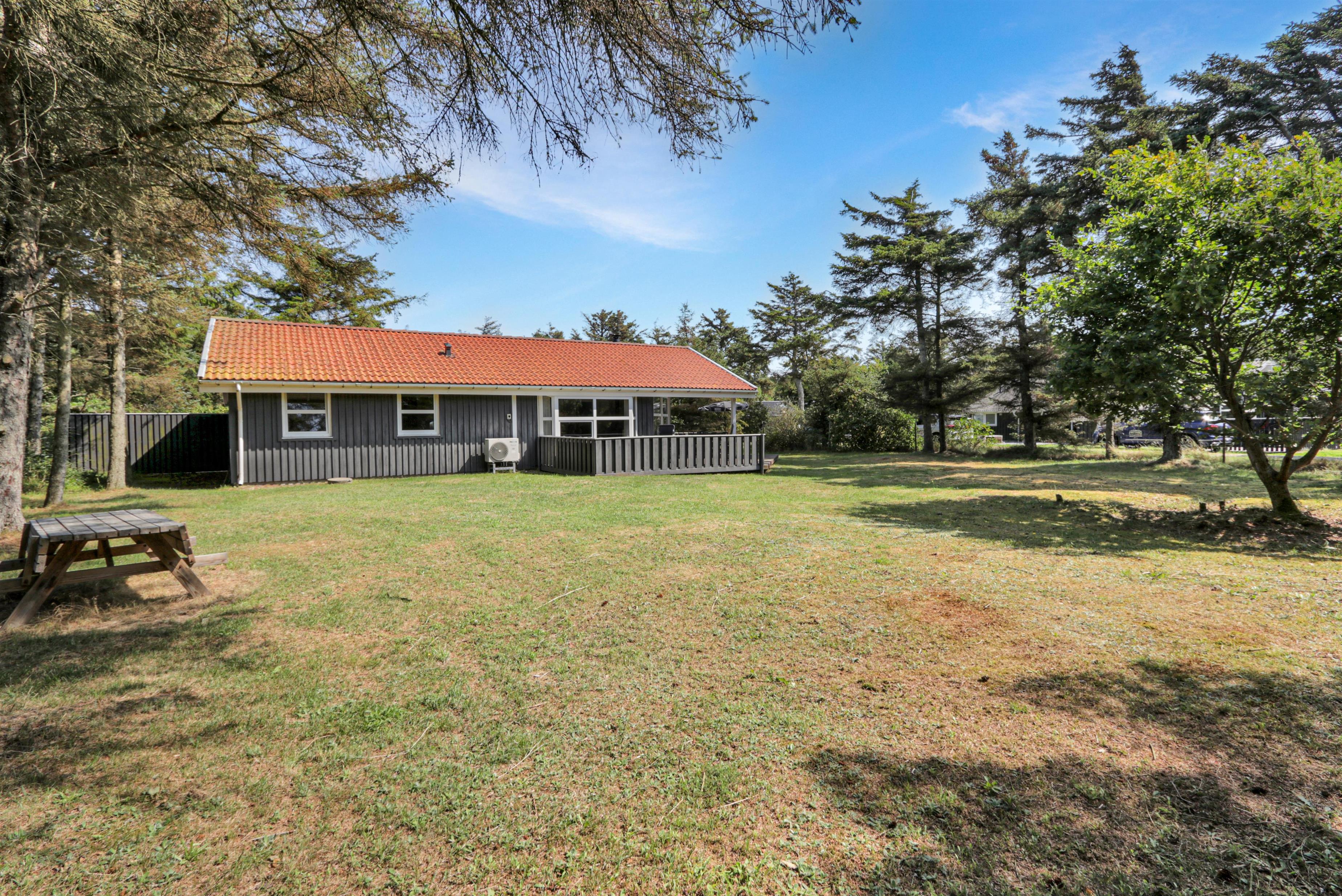 Allerede ved ankomsten til huset får I følelsen af ferie! Beliggende på en stor, indhegnet grund på ca. 1.200 m2, er der masser af plads til både leg og afslapning – perfekt for børn og hunde.