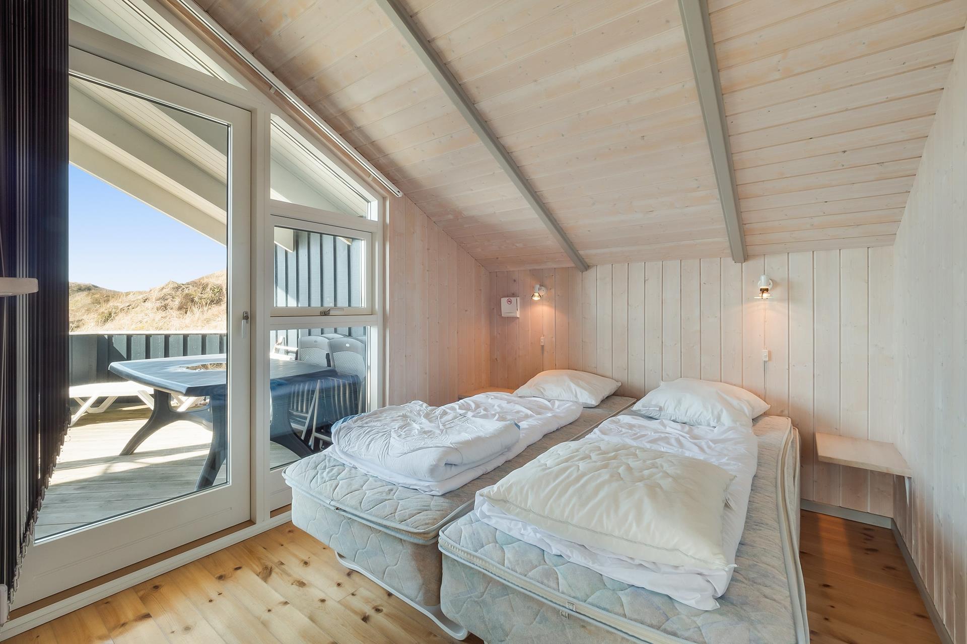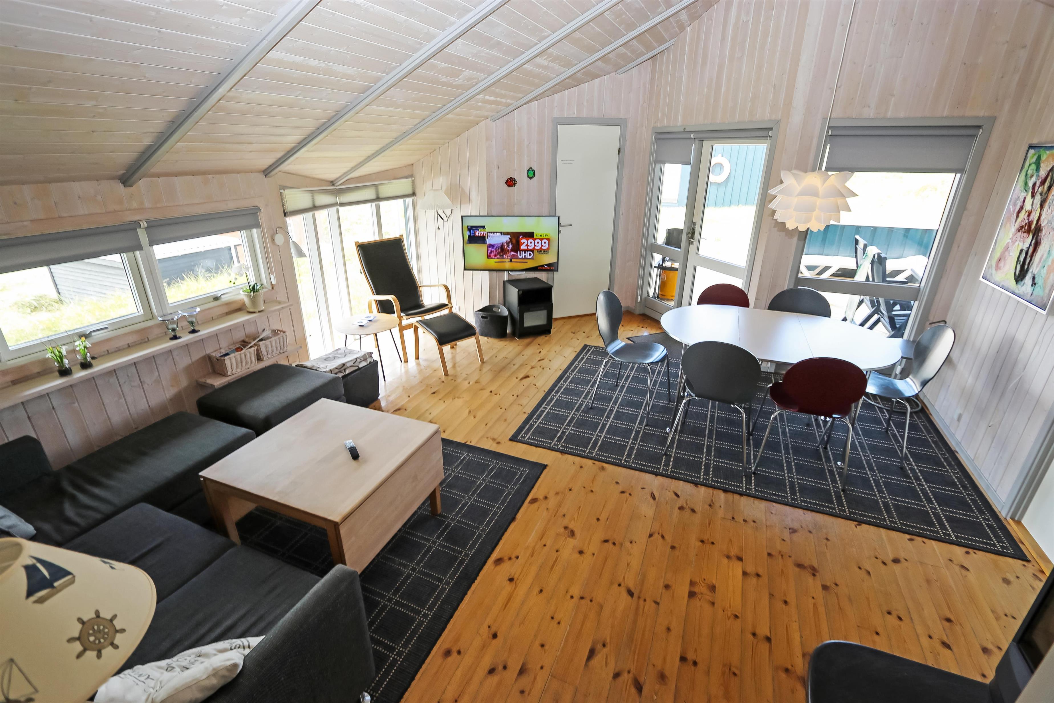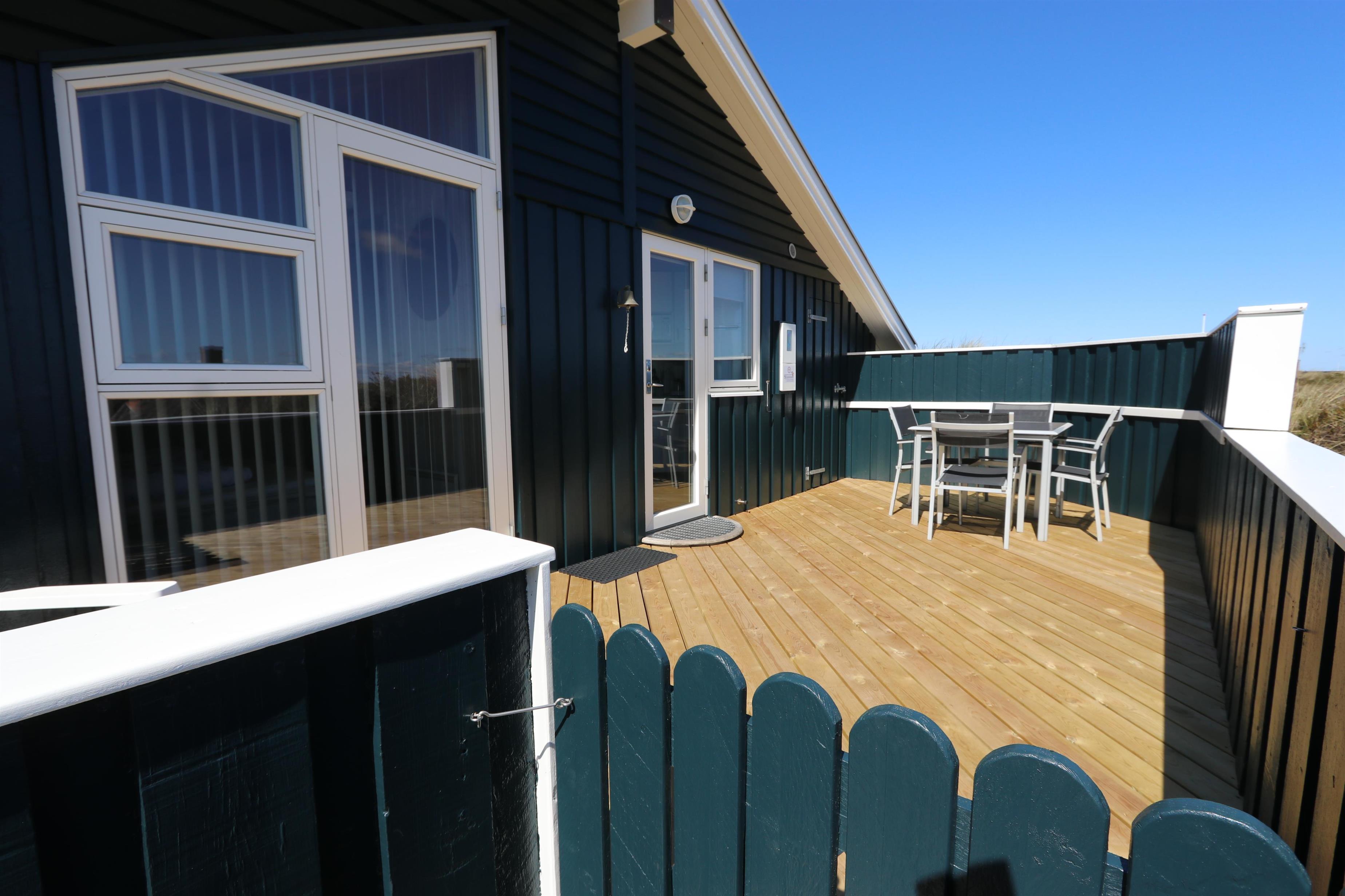 Fra de 2 terrasser på cirka 60 kvadratmeter hver har man en pragtfuld udsigt over sommerhusområdet med de mange klitter. Til huset hører både grill, havemøbler og 2 solvogne, så på terrassen kan man tilbringe næsten hele ferien med eksempelvis en god bog. Stranden ligger kun 150 meter væk, så man under sig selv at se solnedgangen over Vesterhavet minimum een gang på ferien. Stranden byder på masser af plads og mulighed for mange aktiviteter såsom vandsport, solbadning, drageflyvning eller børnene kan bygge sandslotte eller dæmninger. Besøg gerne havnebyen Thyborøn hvor der findes attraktioner som Jyllandsakvariet, Kystcenteret, SeaWar museum og selve havnemiljøet. Her er ligeledes en fantastisk børnevenlig sandstrand, så tag endelig badetøjet med. Lemvig som ligger 13 km inde i landet ved Limfjorden byder på en hyggelig havn og hyggelig gammel bymidte med gode shoppingmuligheder. Her er også oplagt at gå på vandrestier i det bakkede landskab som rager op til 80 meter over havet.