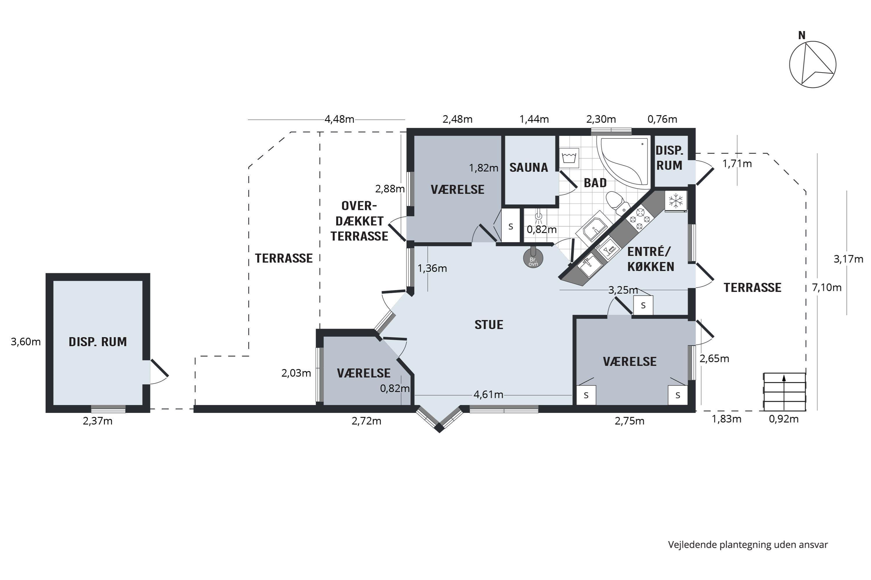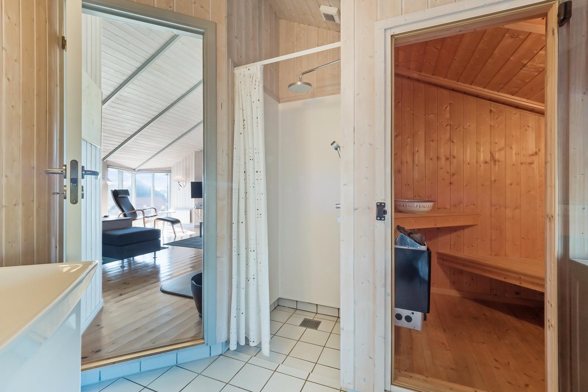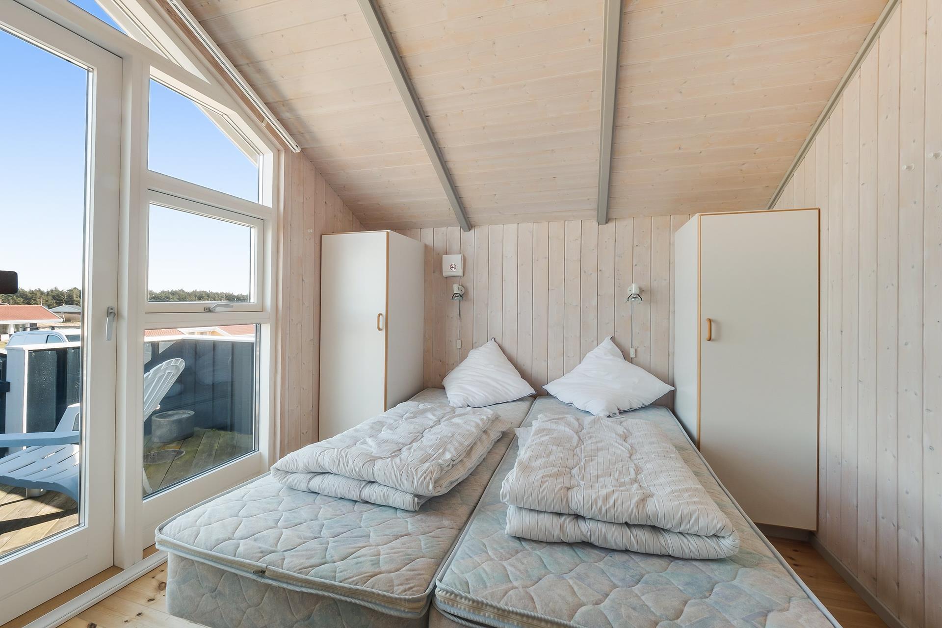 Fra de 2 terrasser på cirka 60 kvadratmeter hver har man en pragtfuld udsigt over sommerhusområdet med de mange klitter. Til huset hører både grill, havemøbler og 2 solvogne, så på terrassen kan man tilbringe næsten hele ferien med eksempelvis en god bog. Stranden ligger kun 150 meter væk, så man under sig selv at se solnedgangen over Vesterhavet minimum een gang på ferien. Stranden byder på masser af plads og mulighed for mange aktiviteter såsom vandsport, solbadning, drageflyvning eller børnene kan bygge sandslotte eller dæmninger. Besøg gerne havnebyen Thyborøn hvor der findes attraktioner som Jyllandsakvariet, Kystcenteret, SeaWar museum og selve havnemiljøet. Her er ligeledes en fantastisk børnevenlig sandstrand, så tag endelig badetøjet med. Lemvig som ligger 13 km inde i landet ved Limfjorden byder på en hyggelig havn og hyggelig gammel bymidte med gode shoppingmuligheder. Her er også oplagt at gå på vandrestier i det bakkede landskab som rager op til 80 meter over havet.