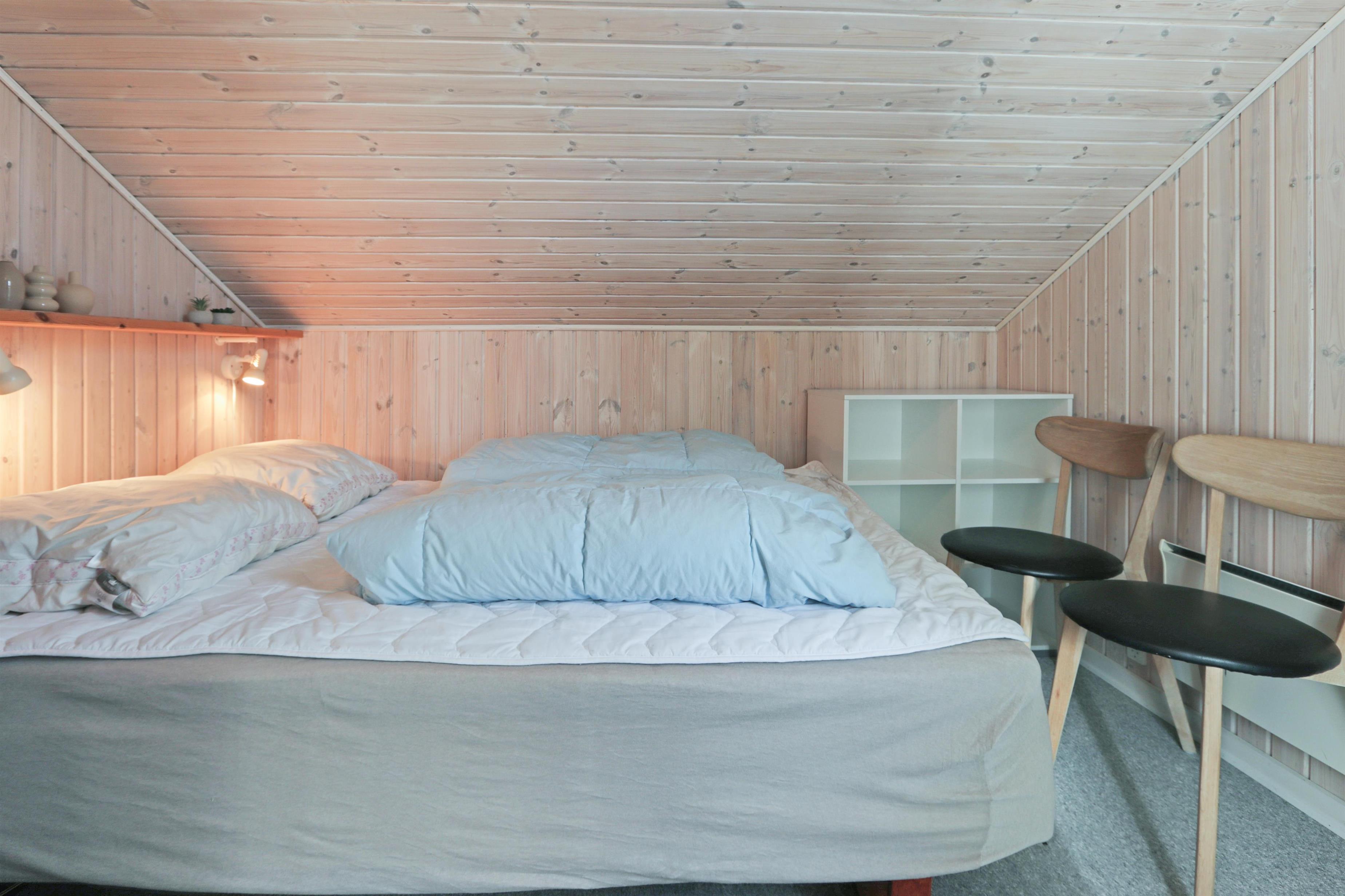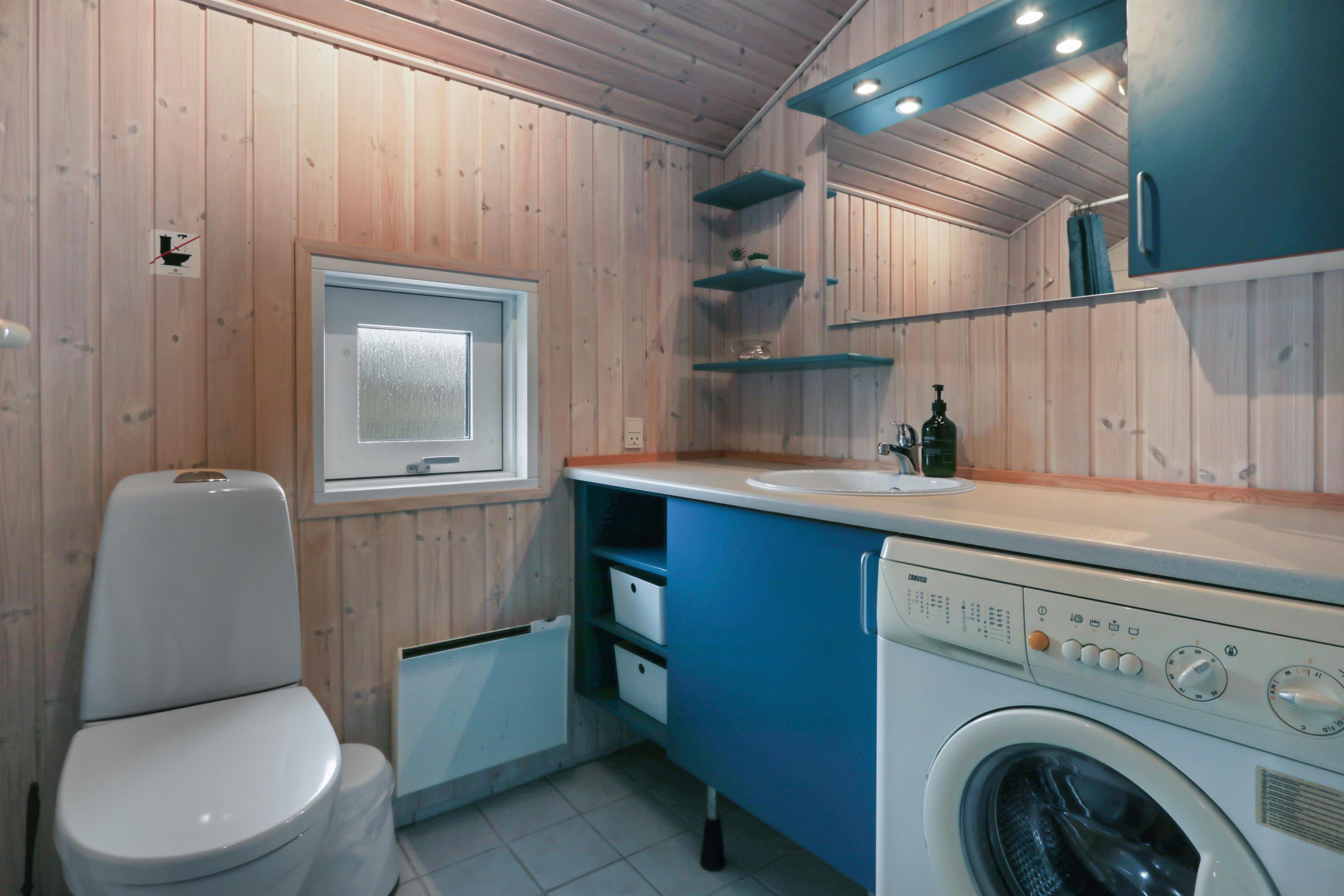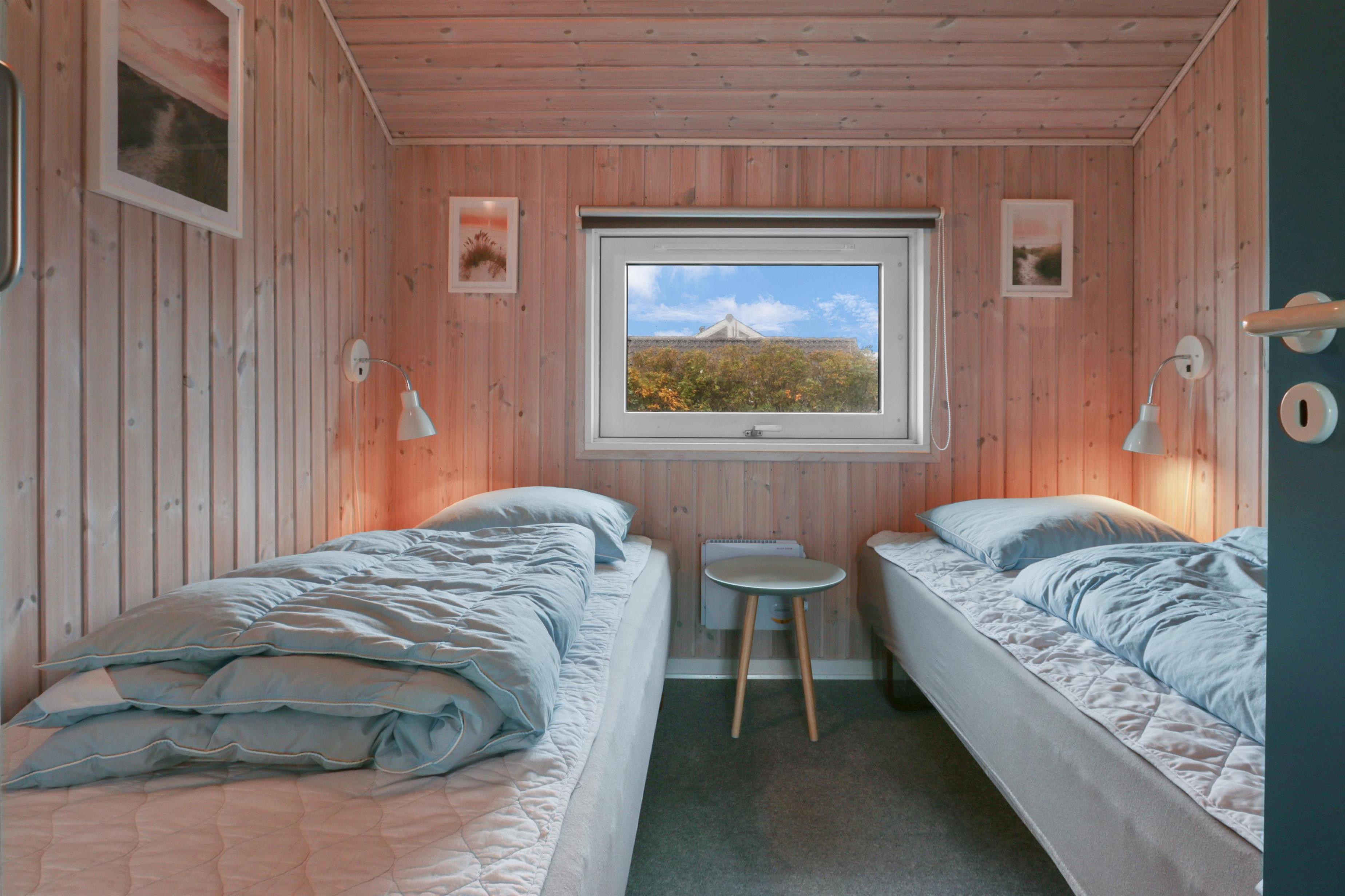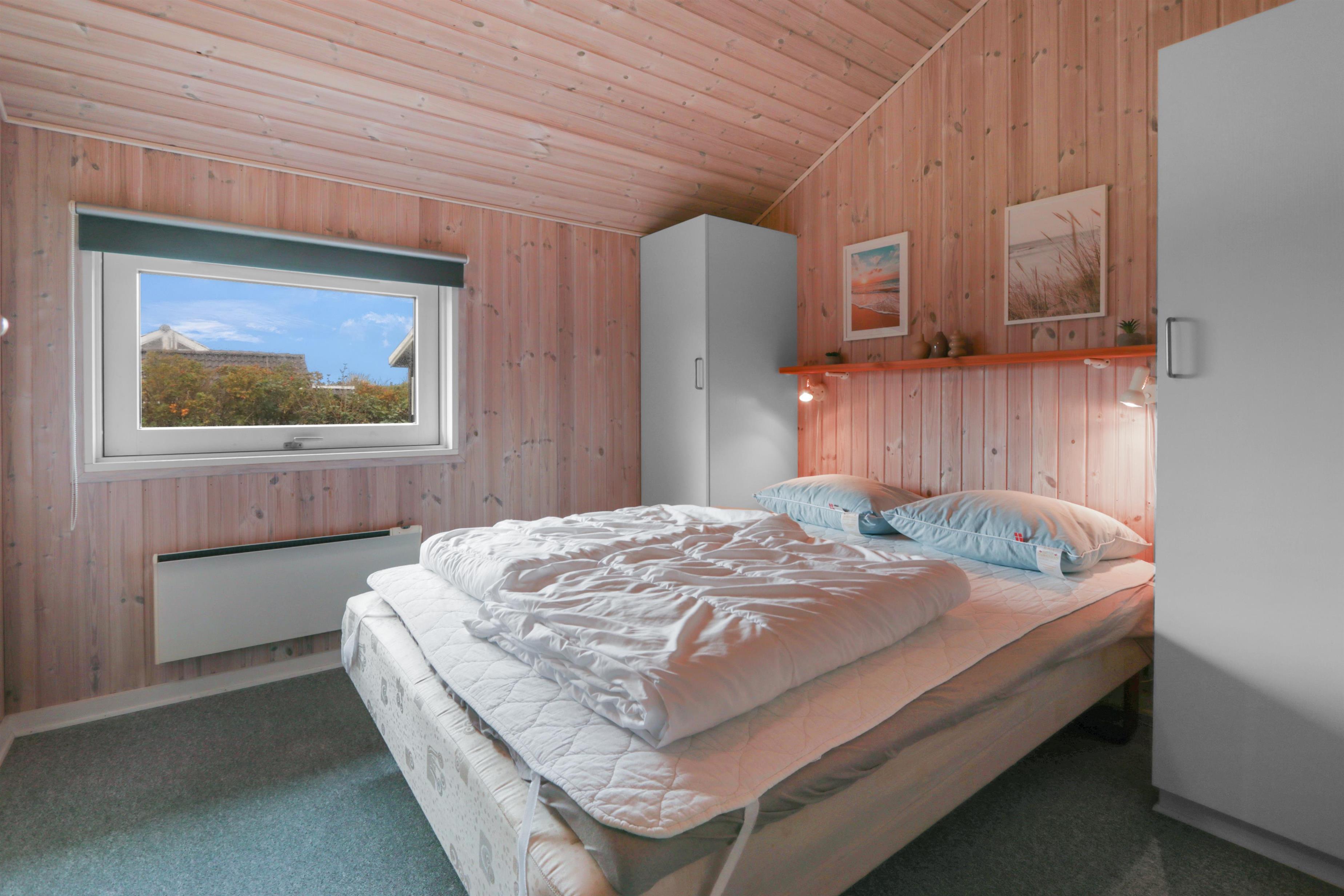 Huset råder over tre soveværelser – to med dobbeltseng og ét med to enkeltsenge – alle med gulvtæpper. Badeværelset er lyst og funktionelt med bruser, toilet, vaskemaskine og klinkegulv. For gæster med elbil eller plug-in hybrid er der opsat ladeboks ved huset. Det er et røgfrit hus, og husdyr er ikke tilladt.