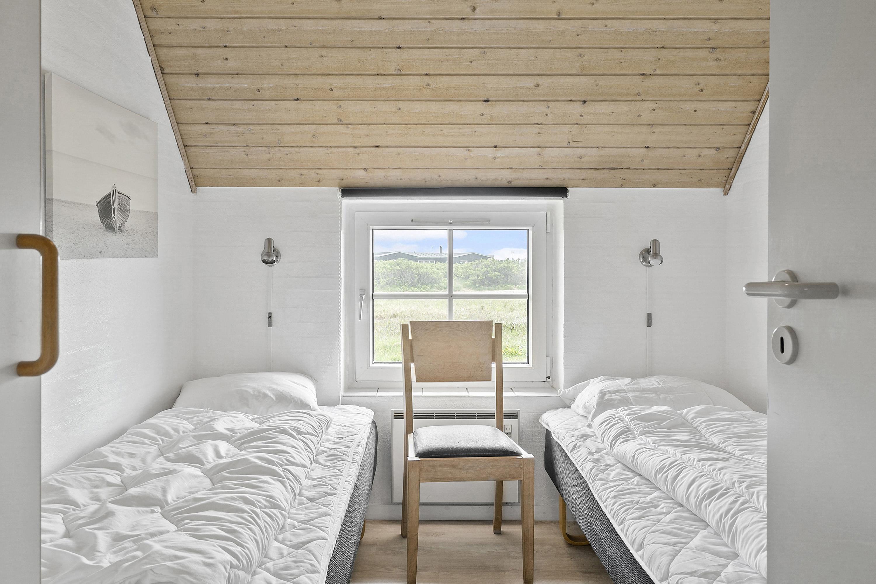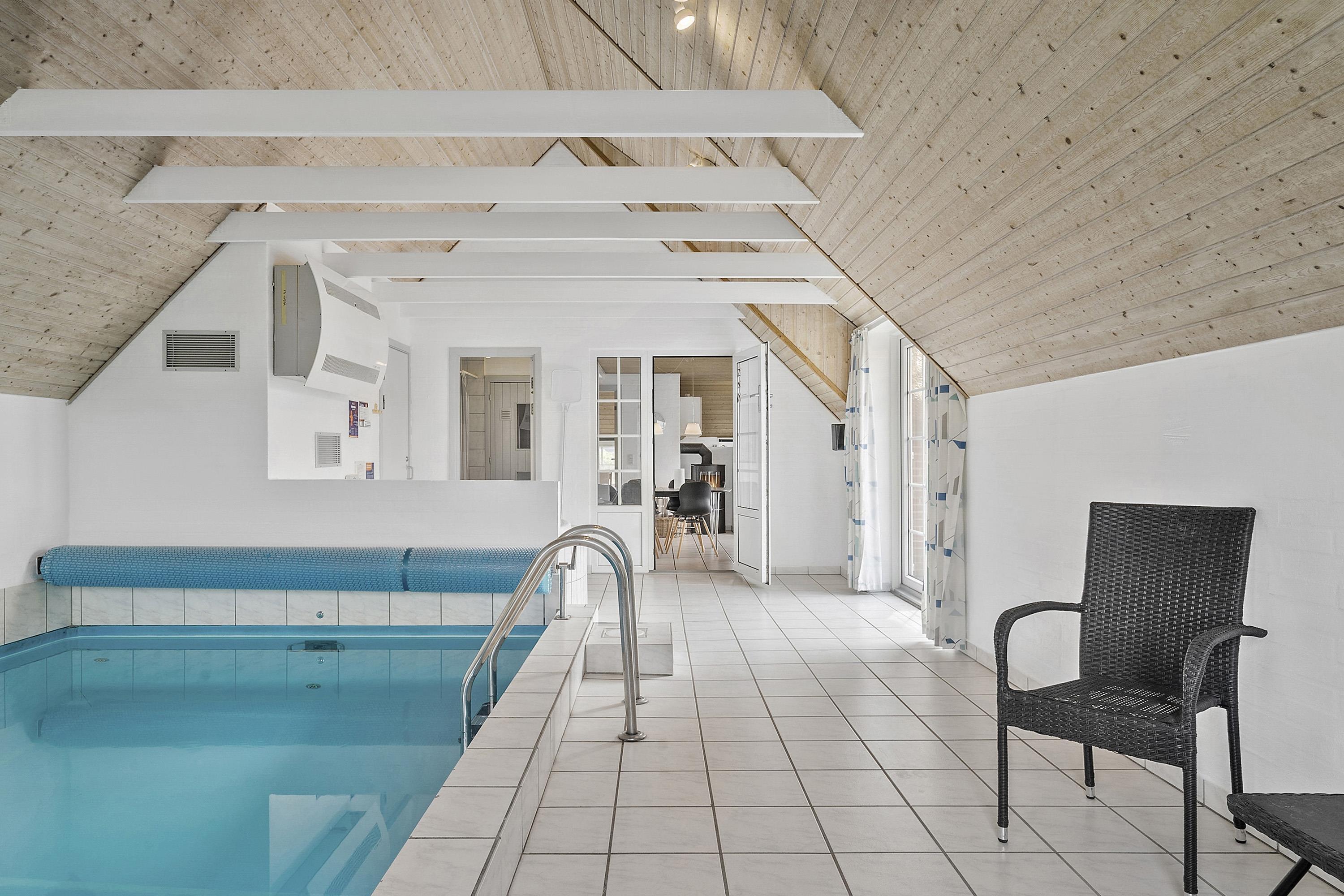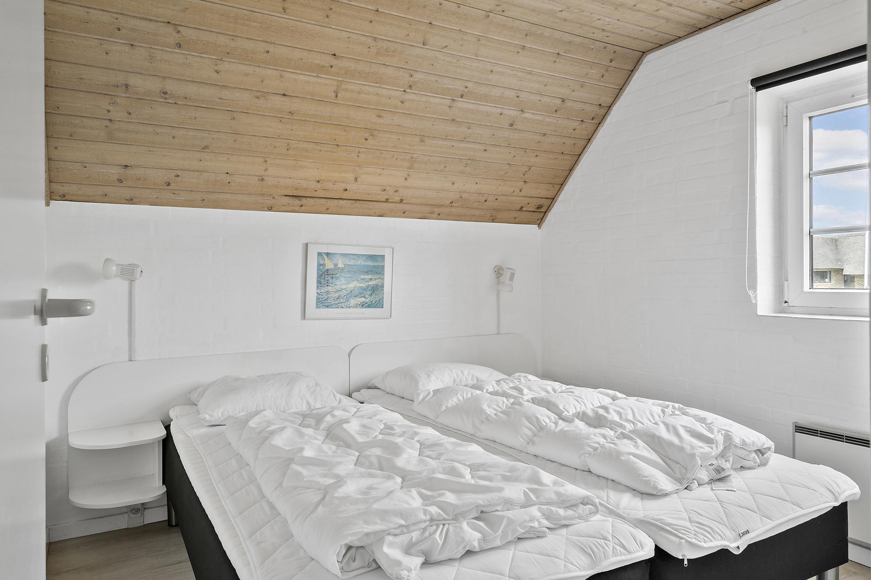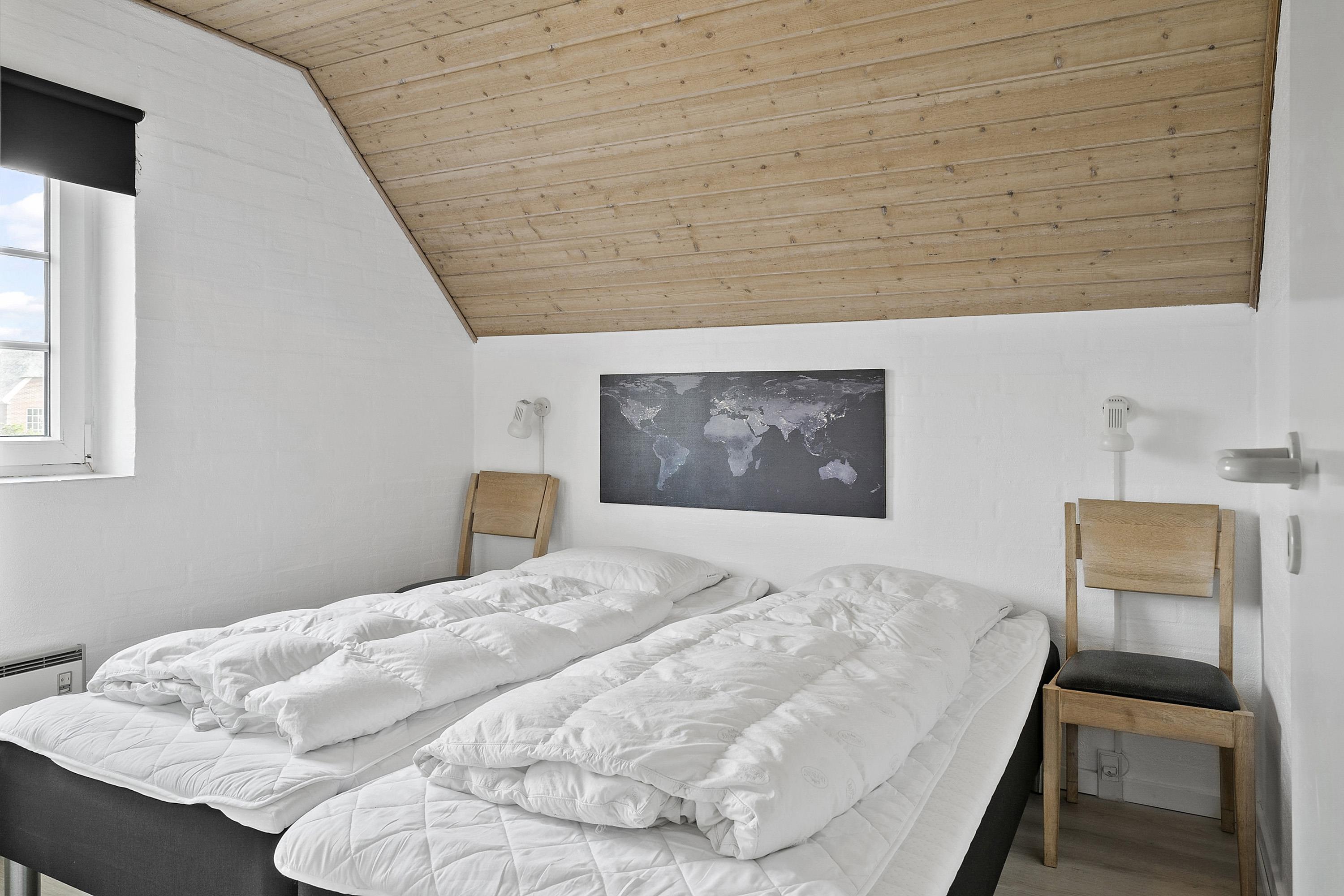 Huset har 4 soveværelser med henholdsvis 1DS + 1DS + 2S + 2S. Barneseng. Husets 2 badeværelser er begge med bruser og gulvvarme, dog er det ene badeværelse i poolrummet, hvor husets lækre nye spa også findes. I poolrummet er der selvfølgelig poolen, som er 3x6m og er 1,50m dyb. Polen er undervandsbelyst og med modstrømsanlæg/svømmetræner, her kan der tages en god, afslappende svømmetur, poolen er opvarmet med luft til vand varmepumpen så det gør jo at forbrugsafregningen blir lavere og så bagefter gå ind og blive opvarmet i saunaen. Fra 2026 er der luft til luft varmepumpe installeret. Har man el-bil eller en Plug-In hybrid, så er der ved Ladeboks til Type 2 ladestik, der kan lade op til 11 kWh. Depositum vintersæson kr. 3000 og sommersæson kr. 2200. Ikke rygerhus.