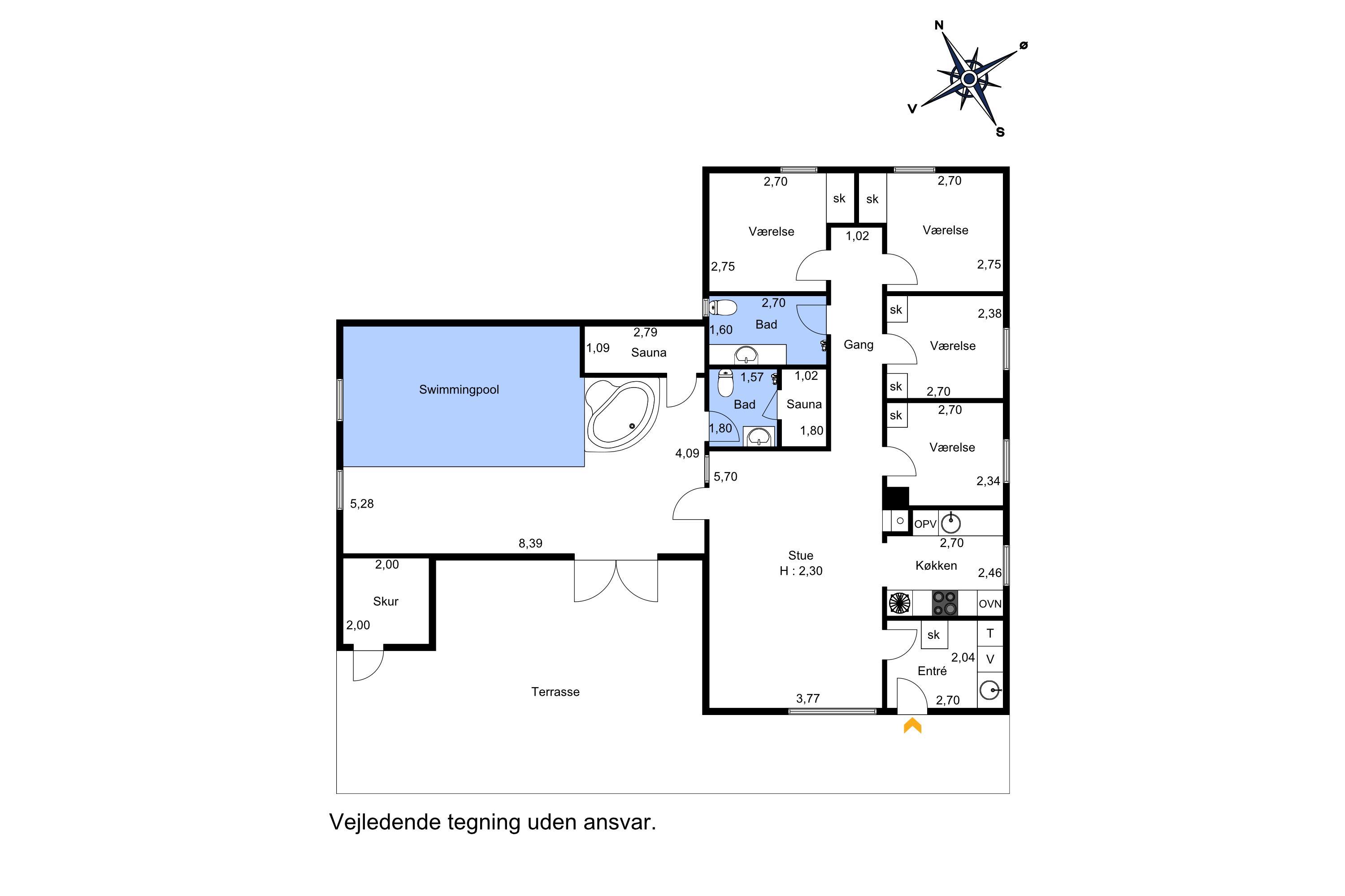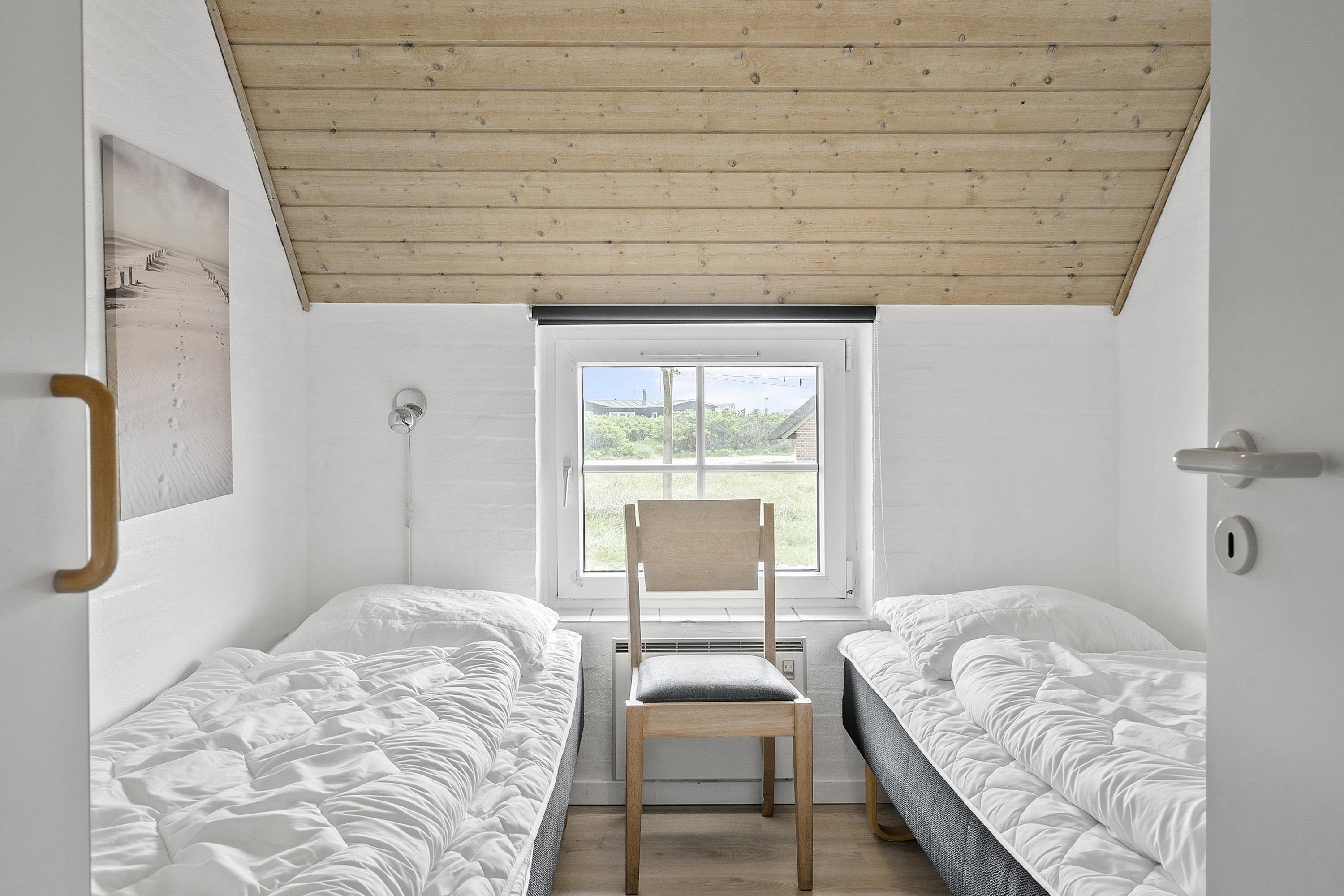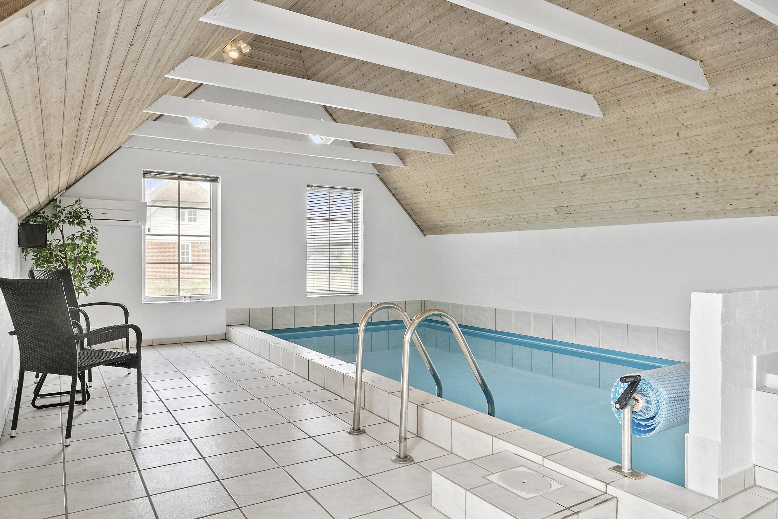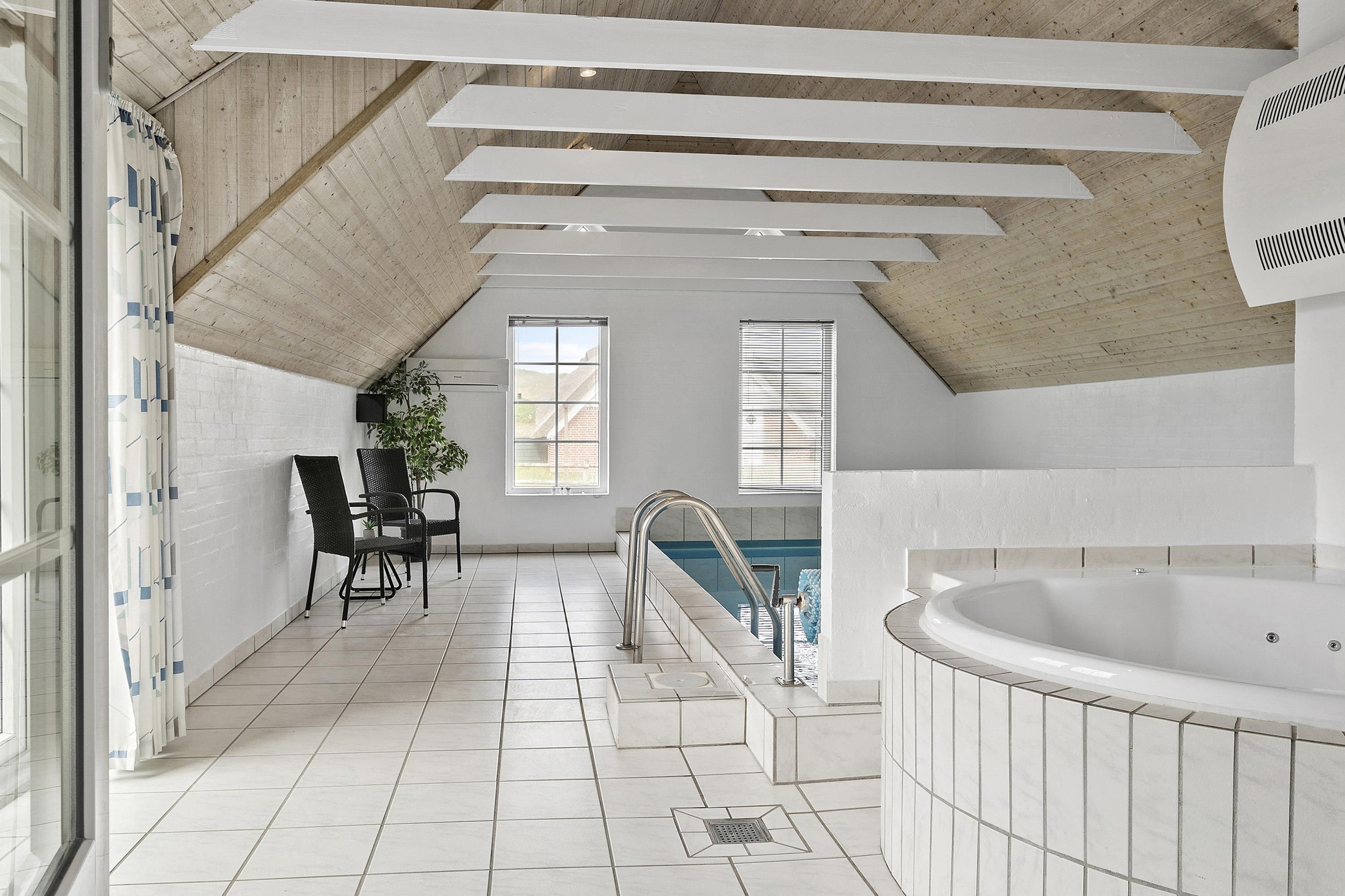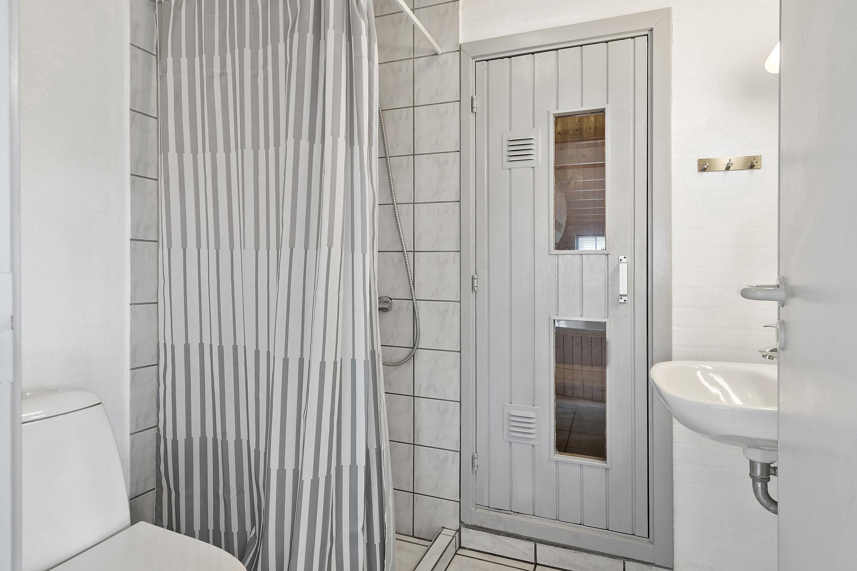 Huset har 4 soveværelser med henholdsvis 1DS + 1DS + 2S + 2S. Barneseng. Husets 2 badeværelser er begge med bruser og gulvvarme, dog er det ene badeværelse i poolrummet, hvor husets lækre nye spa også findes. I poolrummet er der selvfølgelig poolen, som er 3x6m og er 1,50m dyb. Polen er undervandsbelyst og med modstrømsanlæg/svømmetræner, her kan der tages en god, afslappende svømmetur, poolen er opvarmet med luft til vand varmepumpen så det gør jo at forbrugsafregningen blir lavere og så bagefter gå ind og blive opvarmet i saunaen. Fra 2026 er der luft til luft varmepumpe installeret. Har man el-bil eller en Plug-In hybrid, så er der ved Ladeboks til Type 2 ladestik, der kan lade op til 11 kWh. Depositum vintersæson kr. 3000 og sommersæson kr. 2200. Ikke rygerhus.