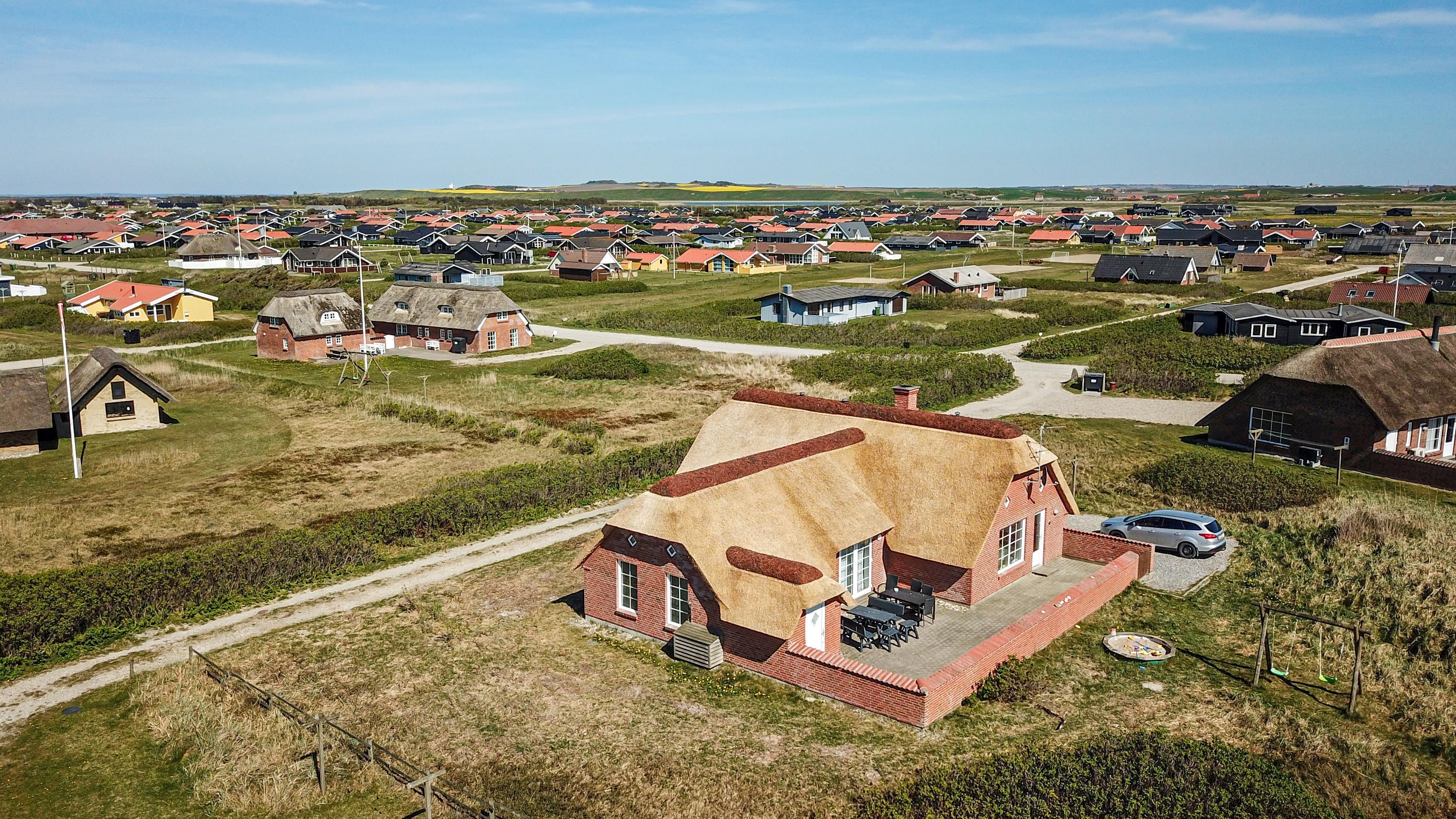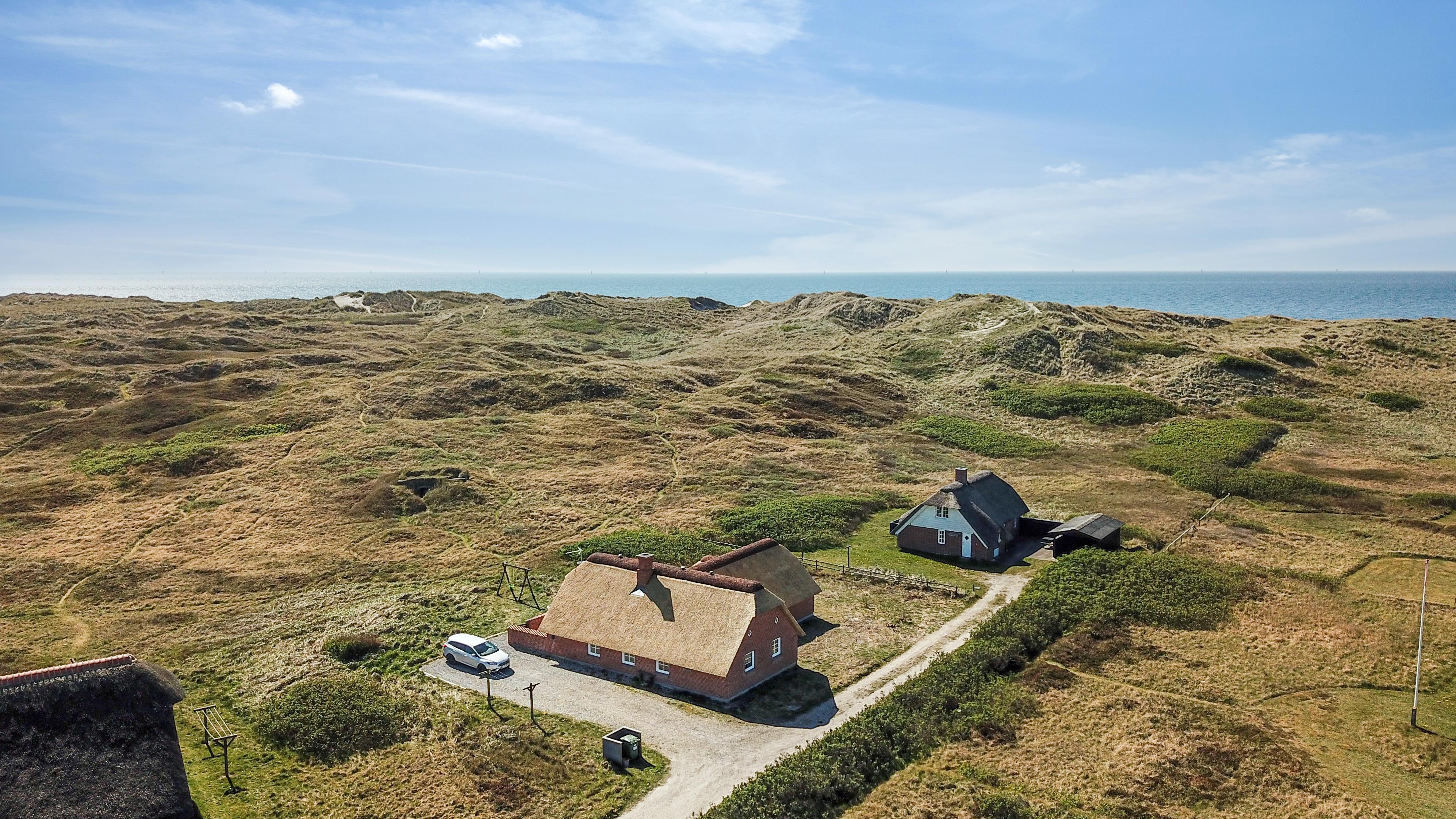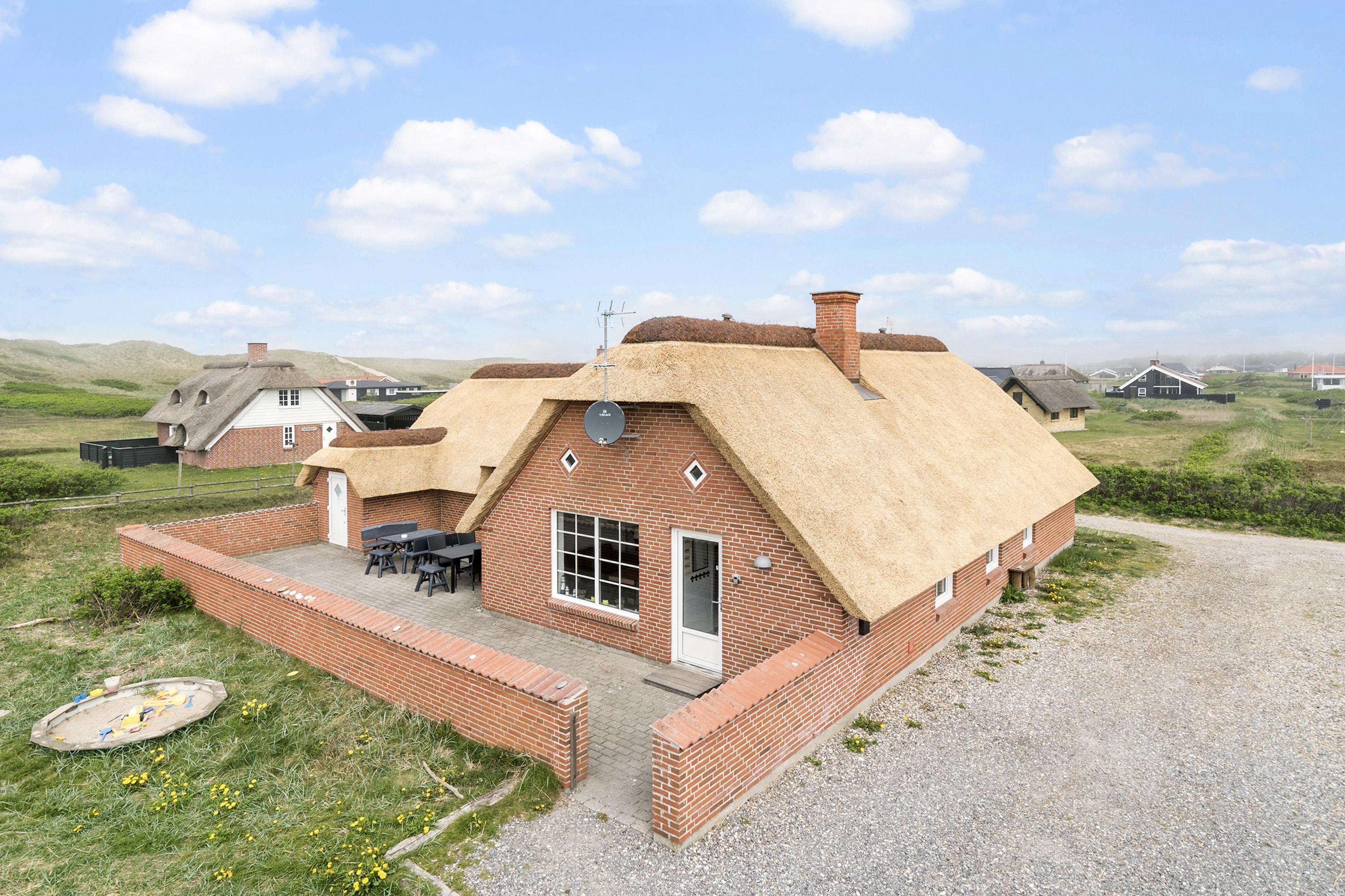 Hyggelig og meget velholdt drømmehus med stråtag, beligende på 2167m2 stor kuperet grund som går direkte op til fredningslinien, kun 130 m fra vesterhavet. Gratis Internetadgang.