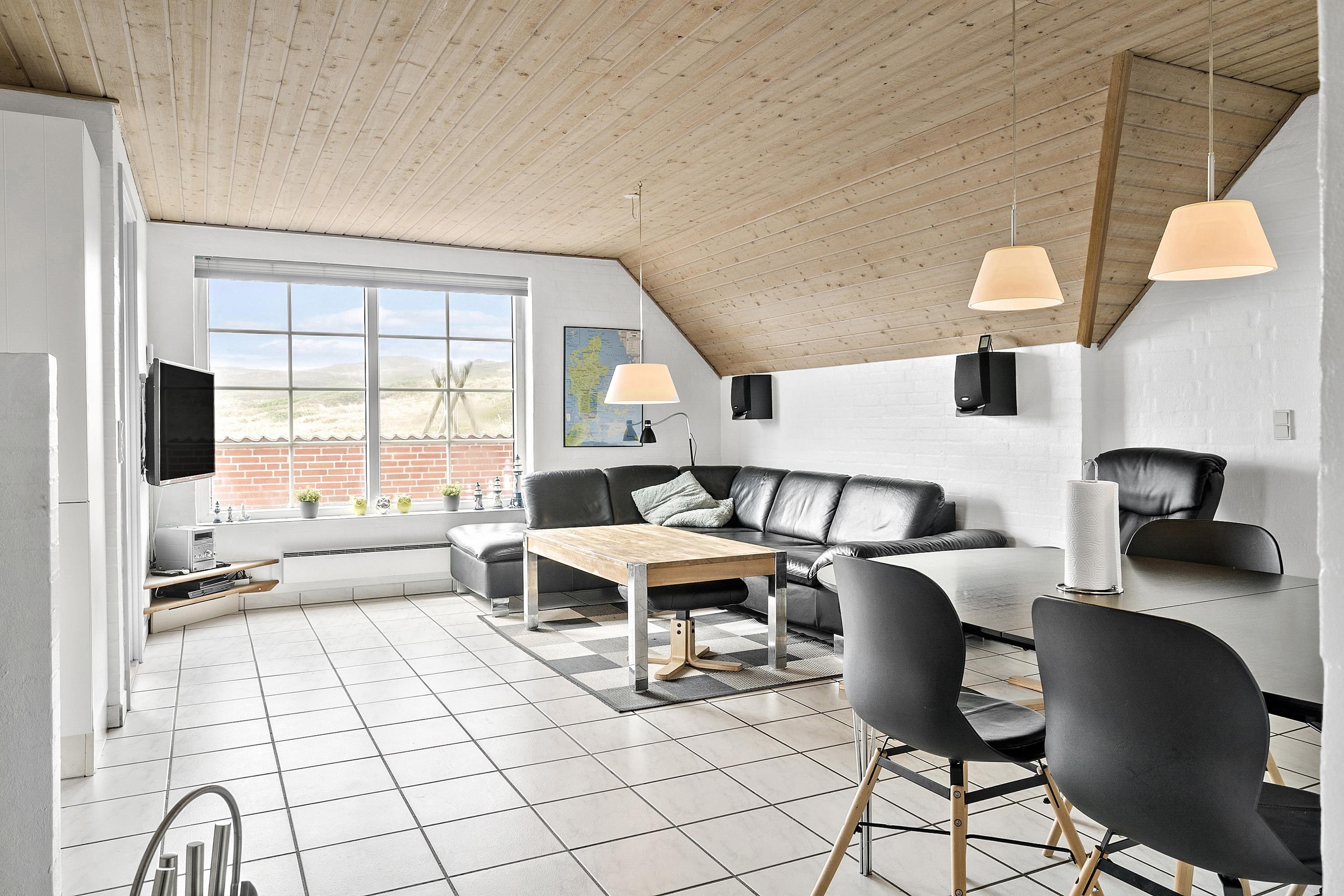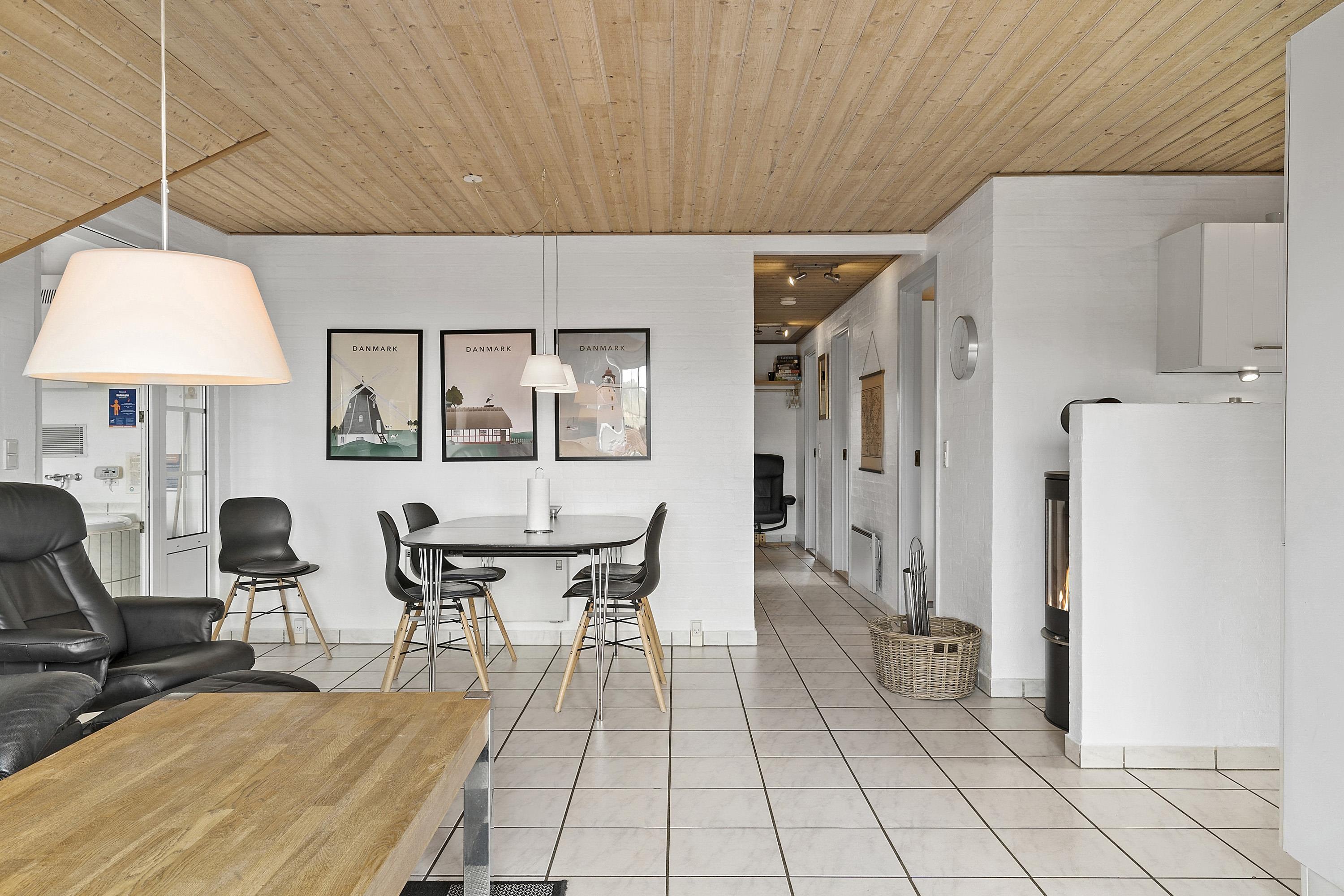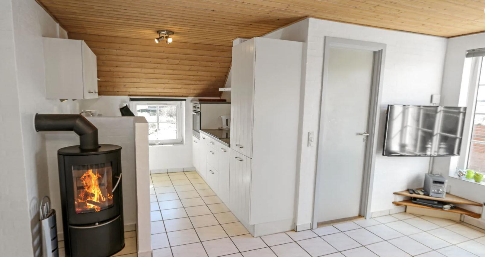 Huset er indrettet med hyggeligt sofahjørne, hvor man kan nyde den knitrende brændeovn og sidde komfortabelt og se sine yndlingsprogrammer på fladskærms-TV, hvor der er Chromecast og den store pakke boxer-TV samt parabol kun med tyske kanaler. Spiseplads til 8 personer.