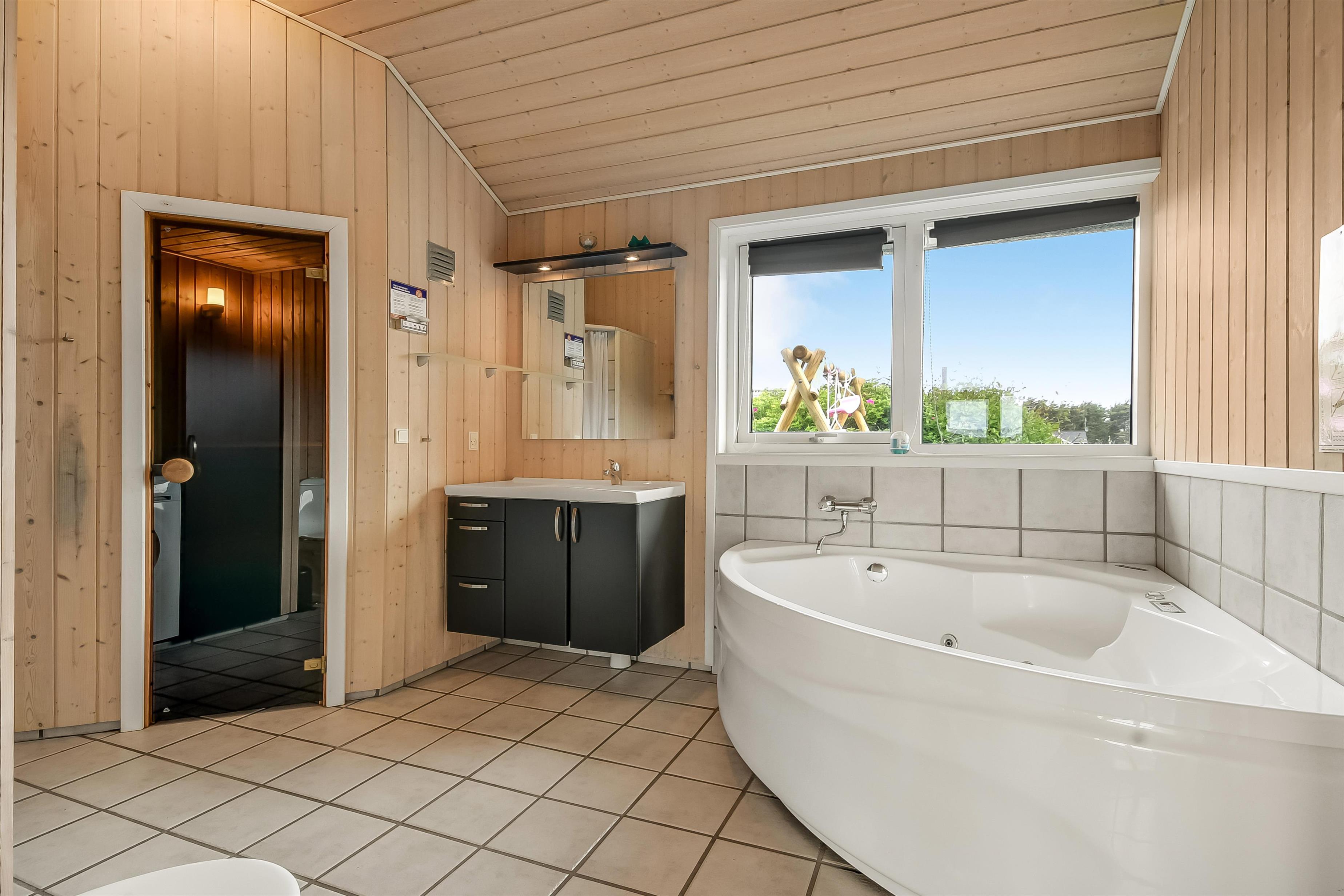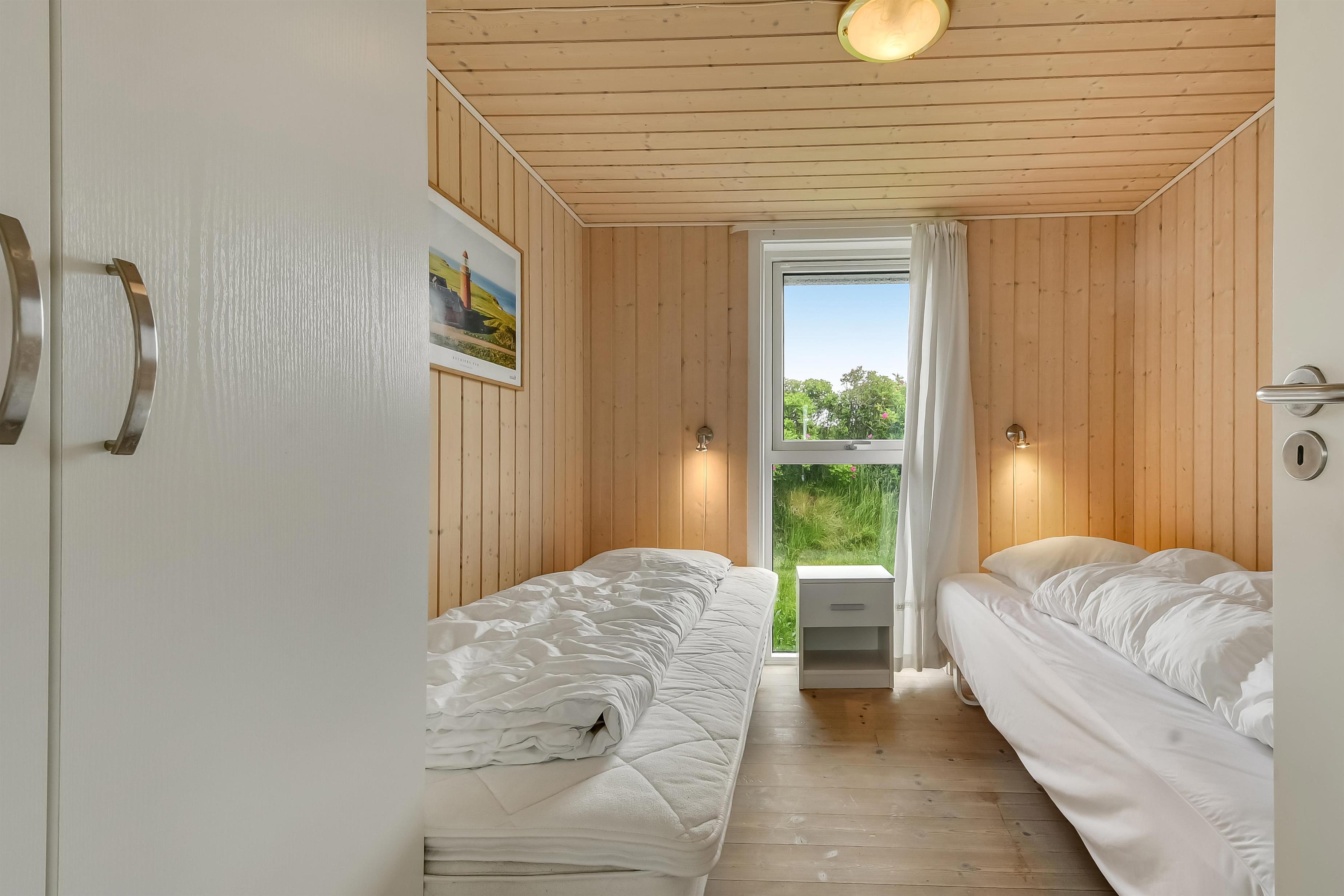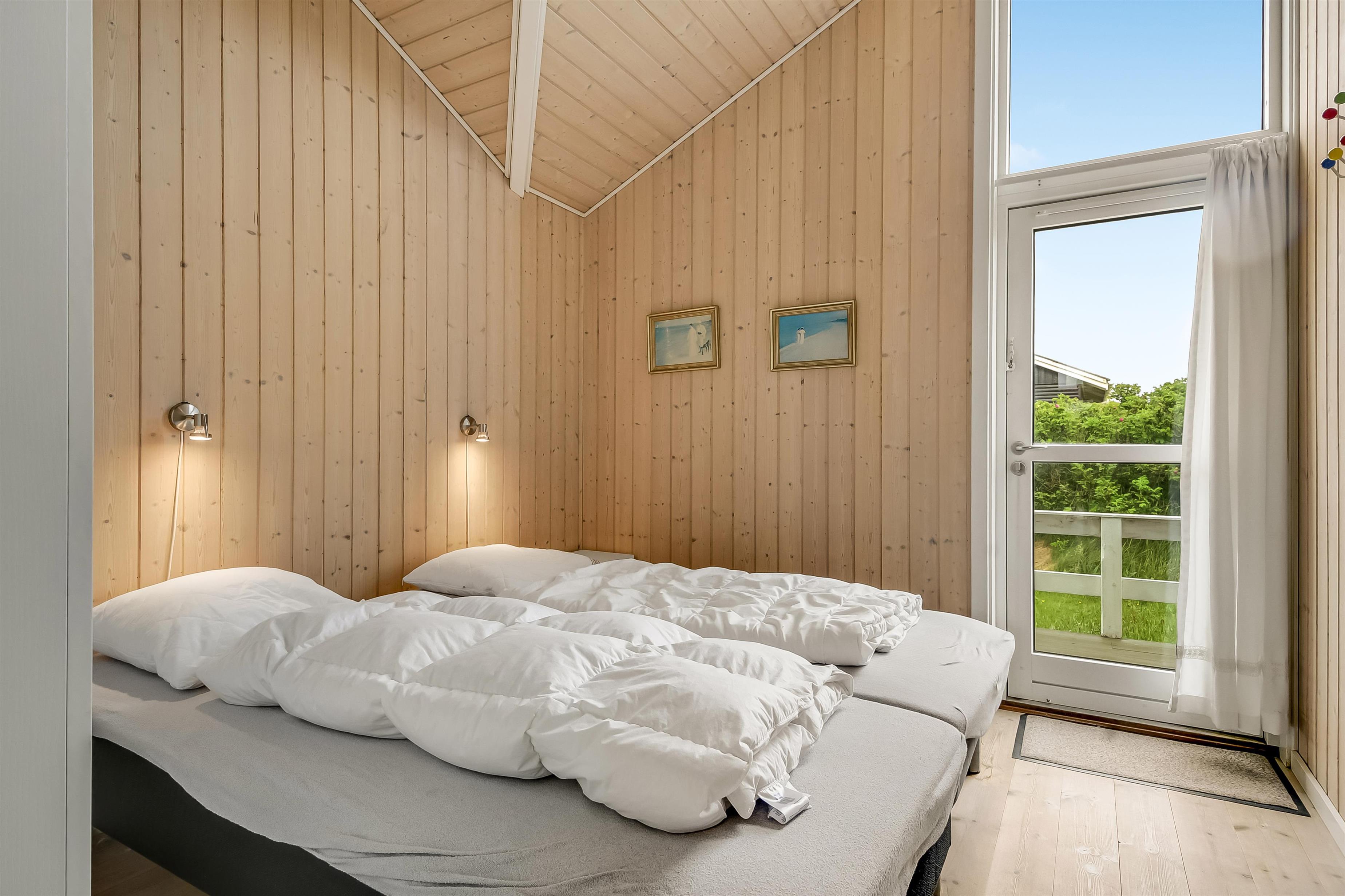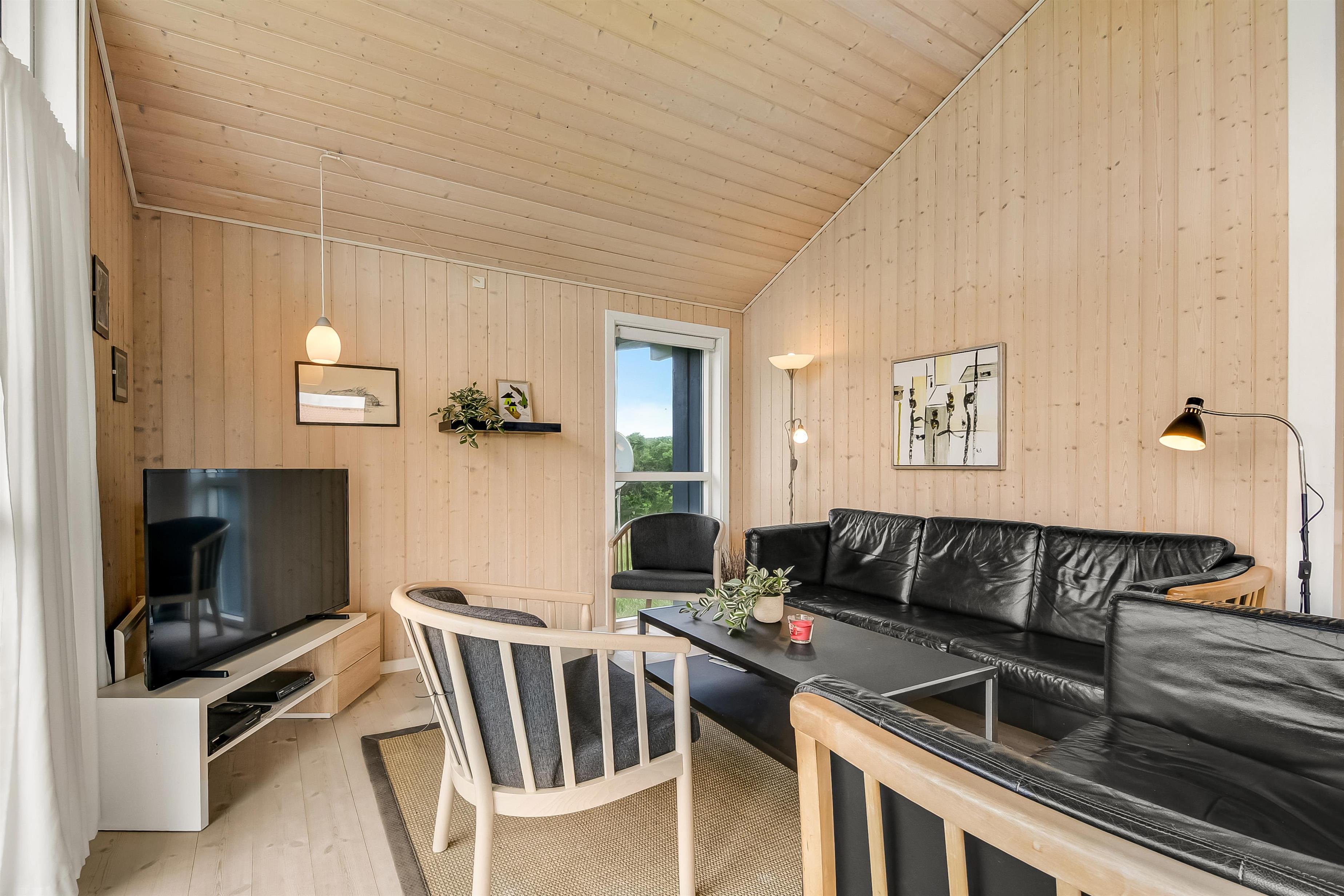 Huset er indrettet med kombineret stue og køkken. Køkkenet er flot og veludstyret med keramisk komfur, opvaskemaskine, køle/ fryseskab og mikrobølgeovn. Stuen er indrettet med komfortable lædermøbler. Der er TV med danske programmer, parabol med tyske programmer og DVD. Desuden stereoanlæg med cd-afspiller og gratis trådløst internet. Til en kølig sommeraften eller en efterårsdag med regn og rusk er der brændeovn til at varme og skabe en hyggelig stemning. Huset er indrettet med tre gode og lyse soveværelser. To værelser er indrettet med dobbeltseng og et med to enkeltsenge. Der er desuden to enkelte sovepladser på husets store hems. Til de yngste gæster er der en højstol i huset. Husets rummelige badeværelse indeholder spabad, bruseniche, toilet, bordarrangement med håndvask og vaskemaskine . Der er behagelig gulvvarme på badeværelset. Fra badeværelset er der direkte adgang til husets sauna, hvor I kan blive gennem varmet efter en lang travetur, ved det brusende Vesterhav og områdets flotte natur. Der er ekstra badeværelse med bruseniche, toilet og bordarrangement med håndvask. Der er installeret varmepumpe i huset og det betyder, at du som gæst kan spare en del på din elvarmeregning