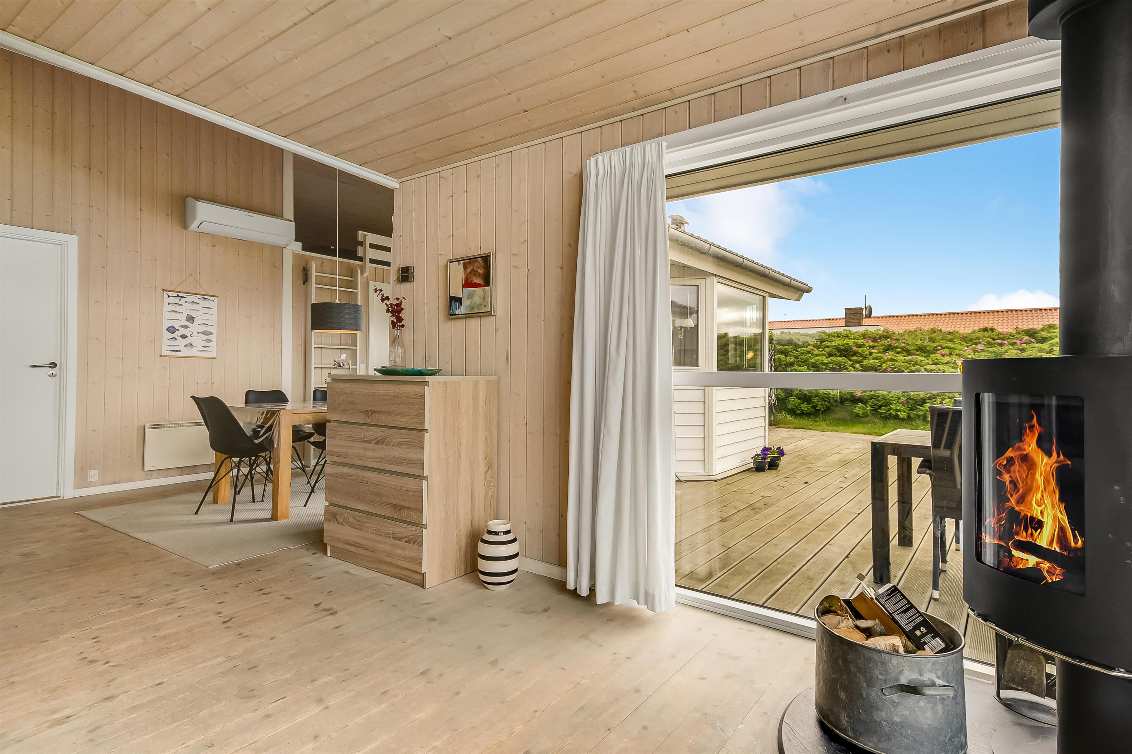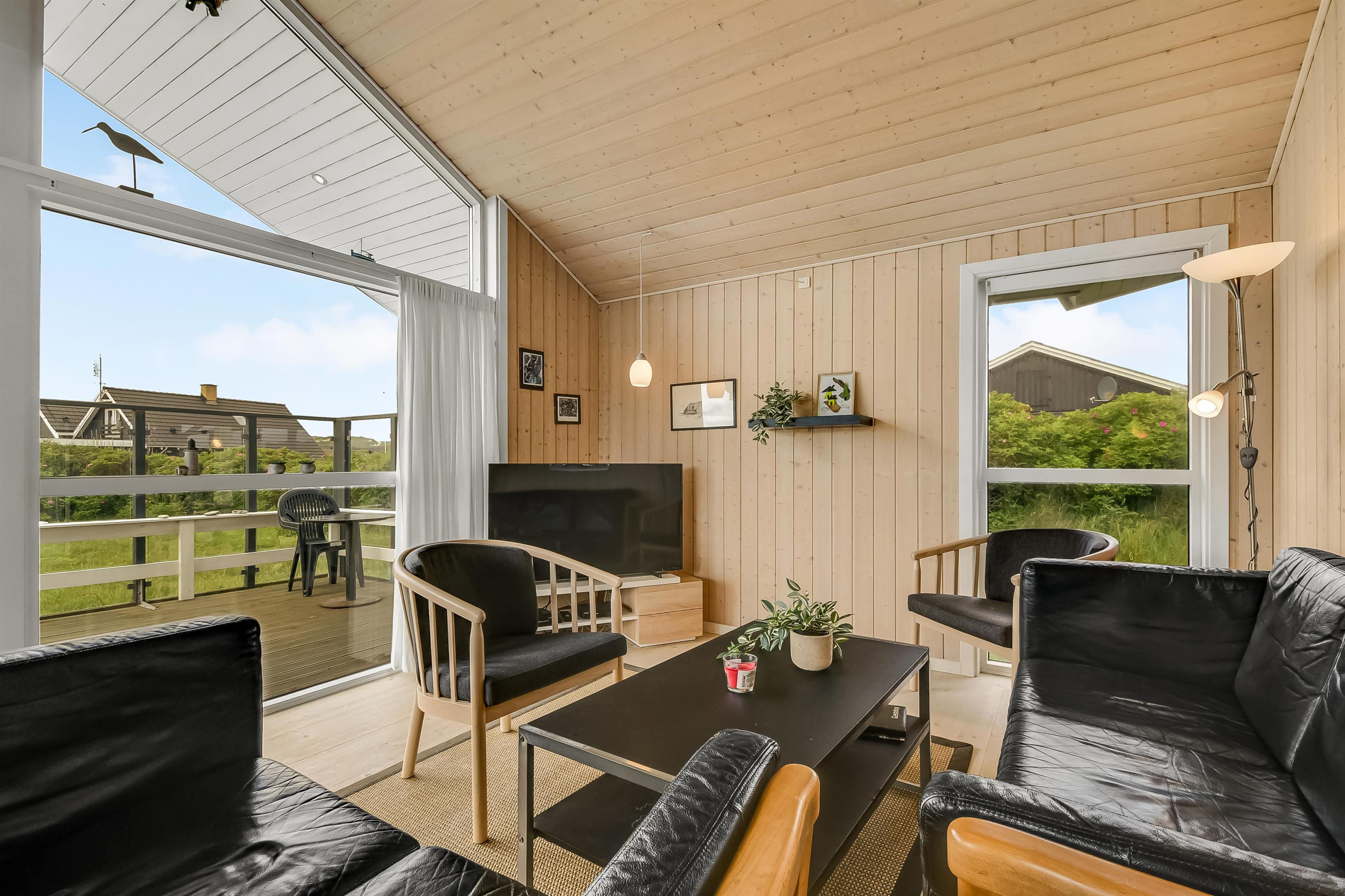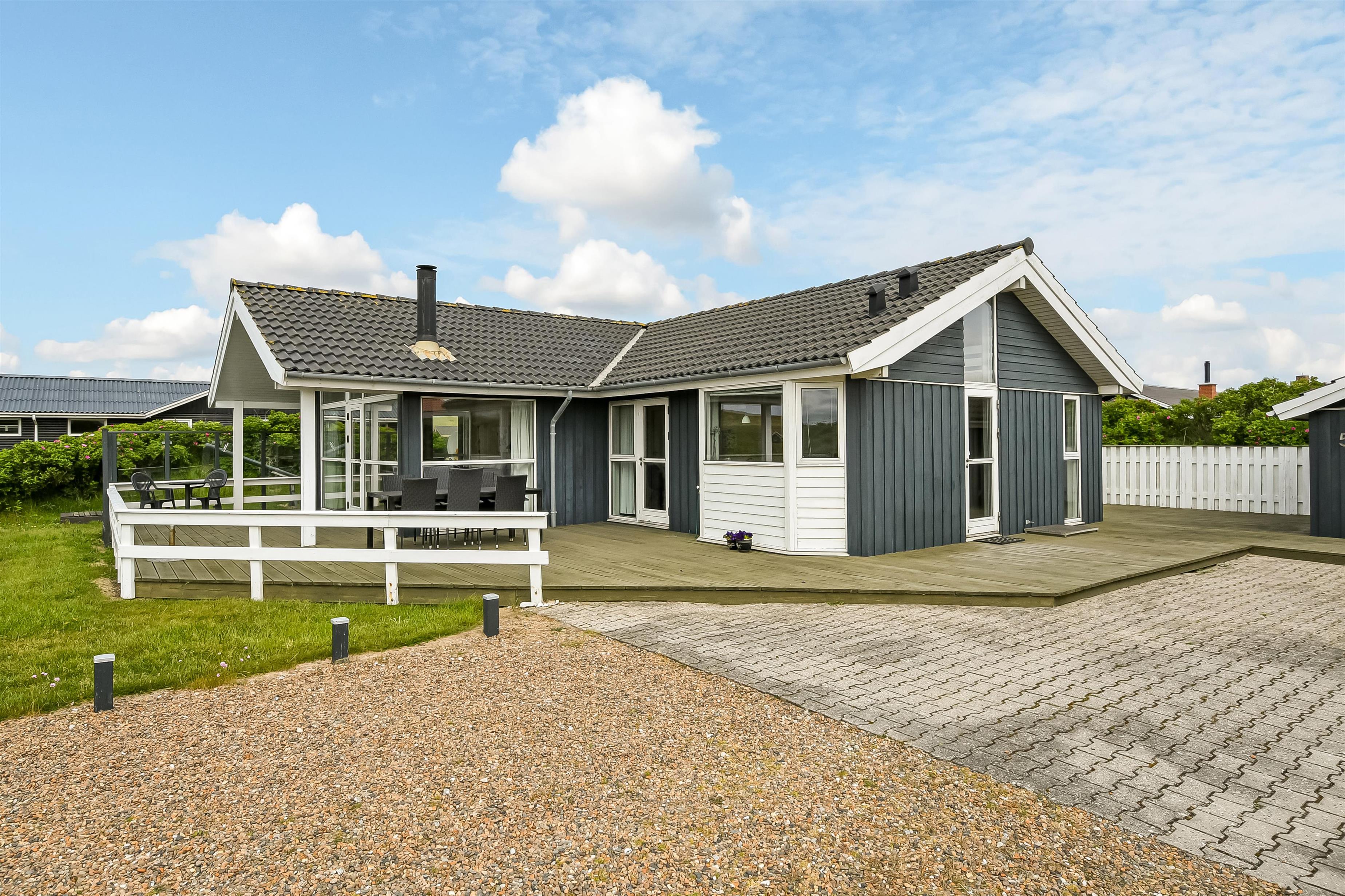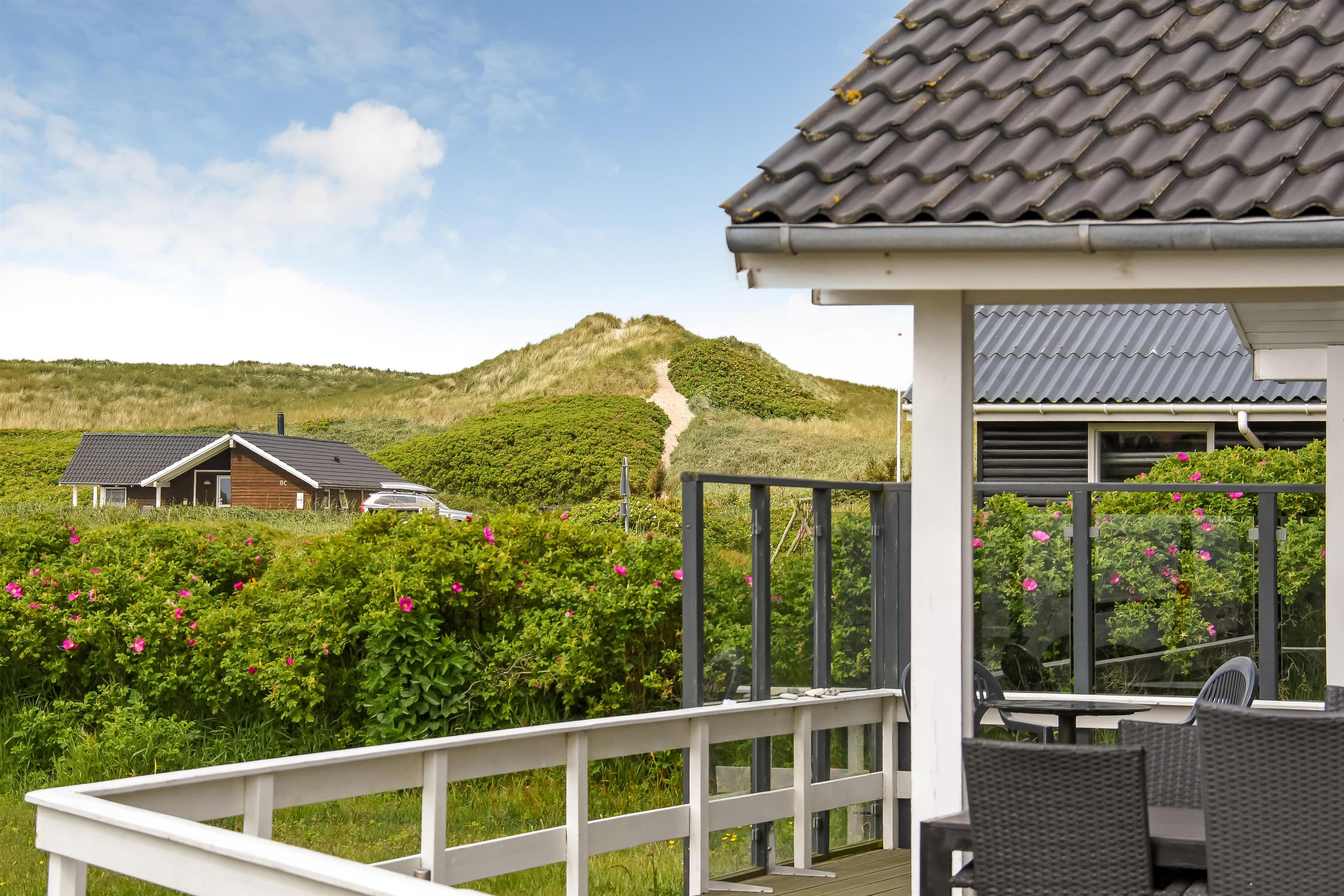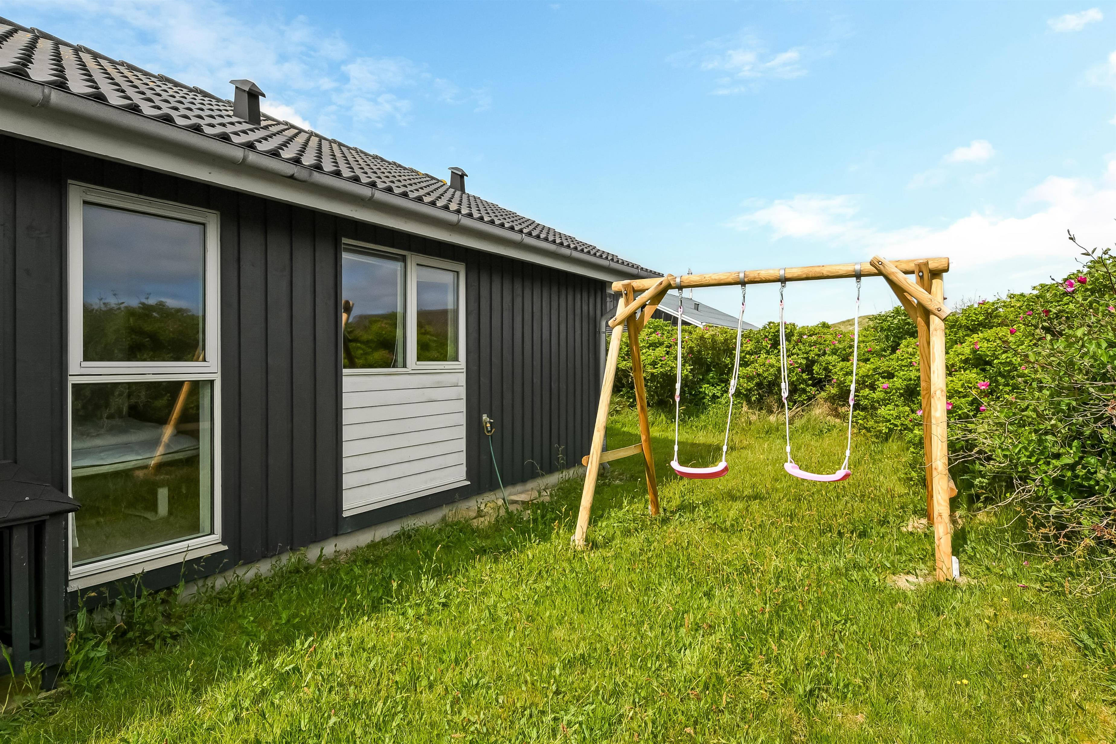 Der er terrasser næsten hele vej rundt om huset, hvoraf en del er overdækket, så det er næsten altid muligt at finde godt med læ. Der er havemøbler til begge terrasser. Aftensmaden kan tilberedes på husets grill, og nydes de lyse sommeraftner på terrassen. Til de yngste gæster er der sandkasse ved huset. Området byder på mange udflugtsmuligheder. Prøv at stå tidligt op i ferien, og tage på fiskeauktion i Thyborøn. Det er en oplevelse at se de mange kasser fisk skifter ejer på få minutter. Thyborøn byder på et spændende havnemiljø og Jyllandsakvariet med mange spændende fisk og aktiviteter for børn. Kystcentret i samme område er også et besøg værd. Fra Thyborøn er der en lille færge til Agger, hvor i kan besøge Danmarks første Nationalpark Thy. Lemvig er en hyggelig by ved Limfjorden, kun 15 min fra sommerhuset. Der finder i en hyggelig gågade samt et stort udvalg i dagligvarer forretninger og specialbutikker.