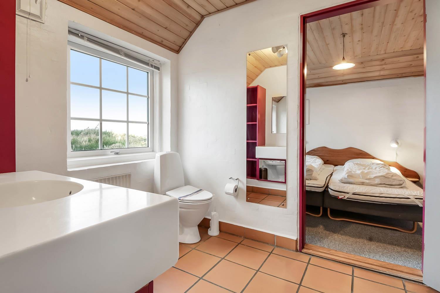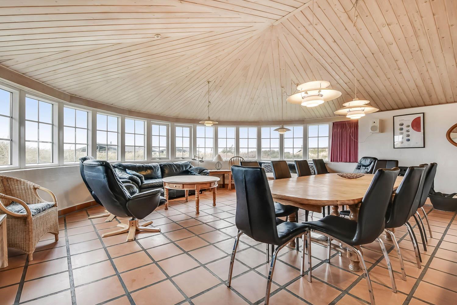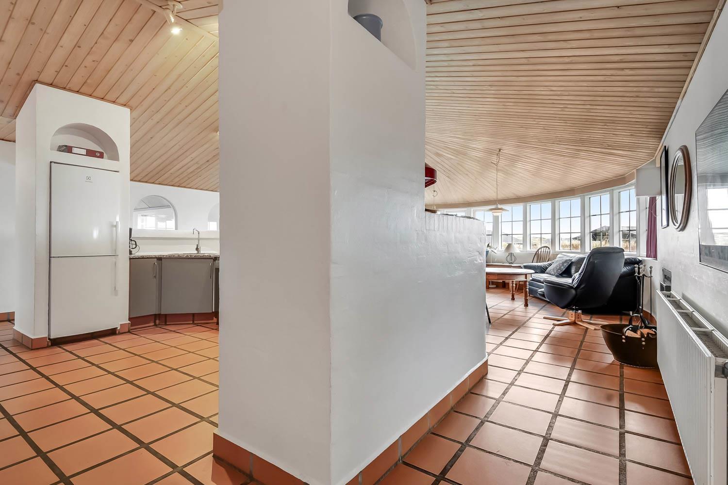Dette flotte, stråtækte feriehus er pragtfuldt beliggende på en klitgrund kun 150 m fra Vesterhavet på en 3000 m2 kuperet natur klitgrund med kig klitterne fra grunden. Huset råder over en åben og en overdækket terrasse med havemøbler, solvogne og grill. Et rigtig dejligt feriehus som på alle årstider vil kunne danne rammen om en vellykket ferie. Har man lyst til at udforske området, er der rige muligheder bl.a. kan man køre en tur til Bovbjerg og besøge Bovbjerg Fyr, her er der altid mange gode arrangementer og cafèen er indbydende og har altid et godt hjemmelavet måltid med råvarer fra området. Eller prøv det store kage tagselvbord som bugner af rigtig lækre hjemmelavede kager. Ovenpå sådan et kagebord kan man gå en tur ned på stranden ad trapperne og få brændt kalorierne væk, eller gå en tur op i fyret og se udsigten over området og ud over Vesterhavet.