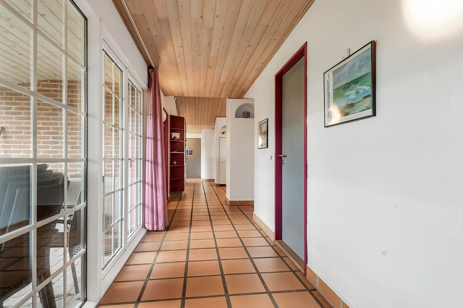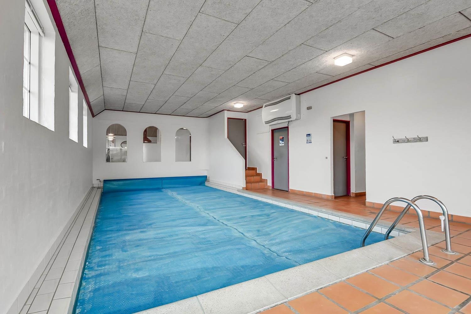 Køkkenet er med keramisk komfur, opvaskemaskine, mikroovn og 50 l fryser. Den store stue, som er i forbindelse med køkkenet, er indrettet med brændeovn, DVD, stereoanlæg med CD samt fladskærms-TV med DR1 samt parabol som modtager tyske kanaler. Gulvene i huset er belagt med klinker, dog er der tæpper i soverummene. I den store poolafdeling er husets store swimmingpool (8,0 x 4,0 x 1,45 m), 3 pers spa og badeværelse med gulvvarme og bruser. Herfra er der adgang til husets sauna. Fra køkkenet og stuen har man en flot udsigt ud over poolrummet. Huset indeholder endvidere to separate soveafdelinger med tilhørende badeværelser. I badeværelserne er der bruser. Obligatorisk slutrengøring. Huset har 5 soverum: 1DS + 1DS +2S +1DS +2K. Huset opvarmes med olie. Separat rum med vaskemaskine og tørretumbler. Desuden er der barnestol. Bemærk: Max et husdyr er tilladt. Et dejligt feriehus som på alle årstider vil kunne danne rammen om en vellykket ferie. Depositum vintersæson kr. 4500 og sommersæson kr. 2200.