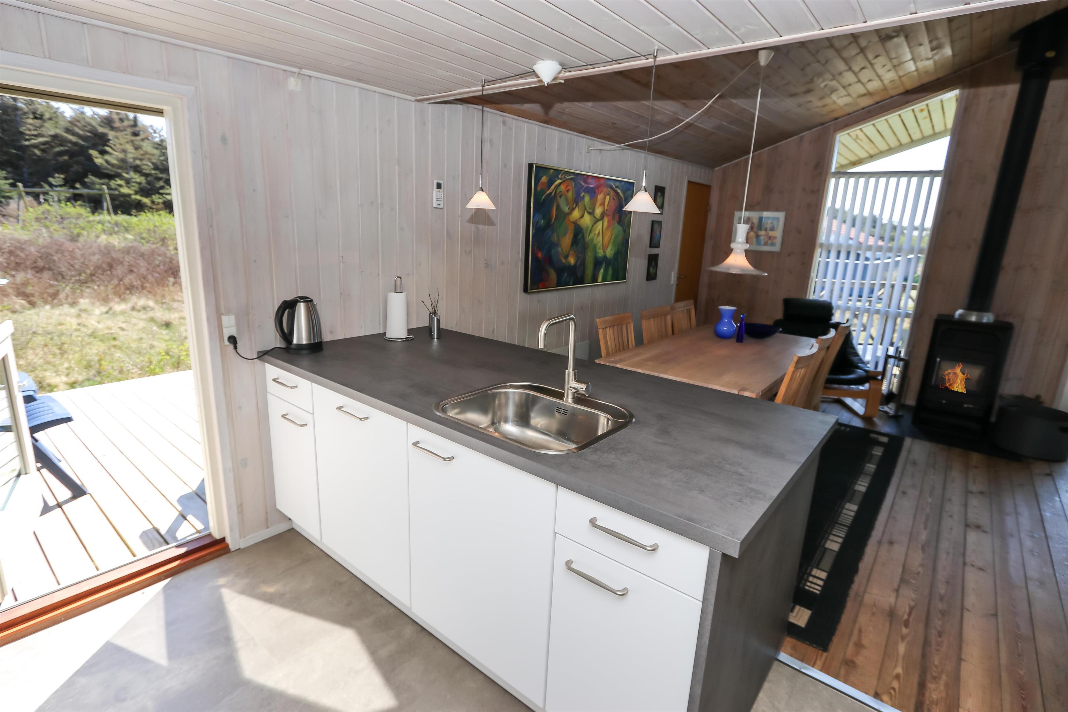 Huset er beliggende på en 1250 m2 naturgrund tæt på Vesterhavet. 65 kvadtratmeter åben og overdækket terrasse med havemøbler og grill - hvor man altid kan finde læ til at nyde solen. Til børnene er der gynger. Huset er beliggende tæt på Vesterhavet som hver dag byder på nye oplevelser og historier. I området er der mange gode muligheder for at vandre eller cykle, ligesom der er mulighed for lystfiskeri. Huset ligger ca. 15. min kørsel fra havnebyen Thyborøn som byder på flere aktiviteter, restauranter og attraktioner. Lemvig kan også nåes i bil ca. 15 min kørsel væk og her er der en dejlig havnepromenade med legeplads, skaterbane og mange gode butikker. Et rigtig godt hus som er velegnet til familier som ønsker at bo tæt på Vesterhavet i et dejligt område.