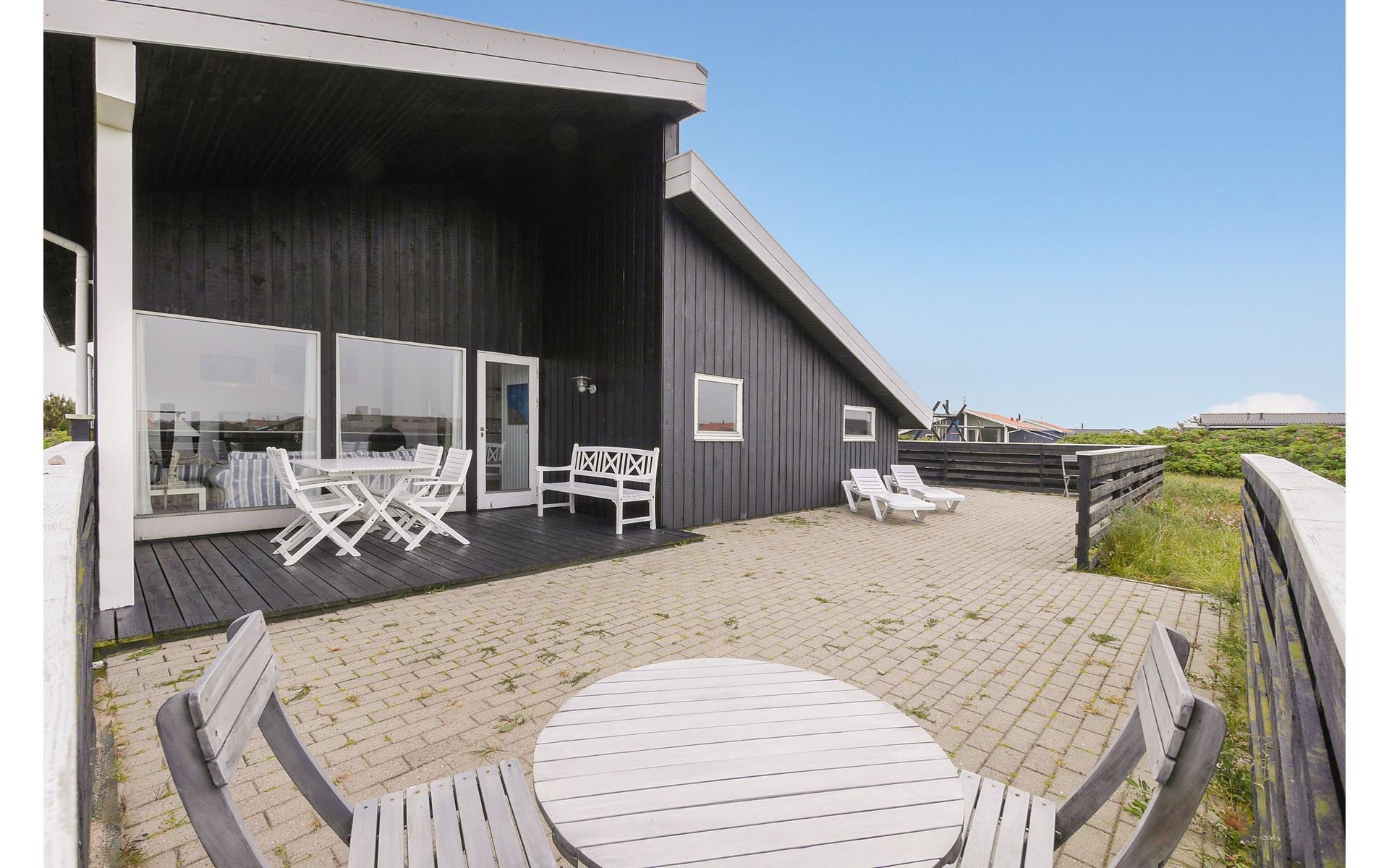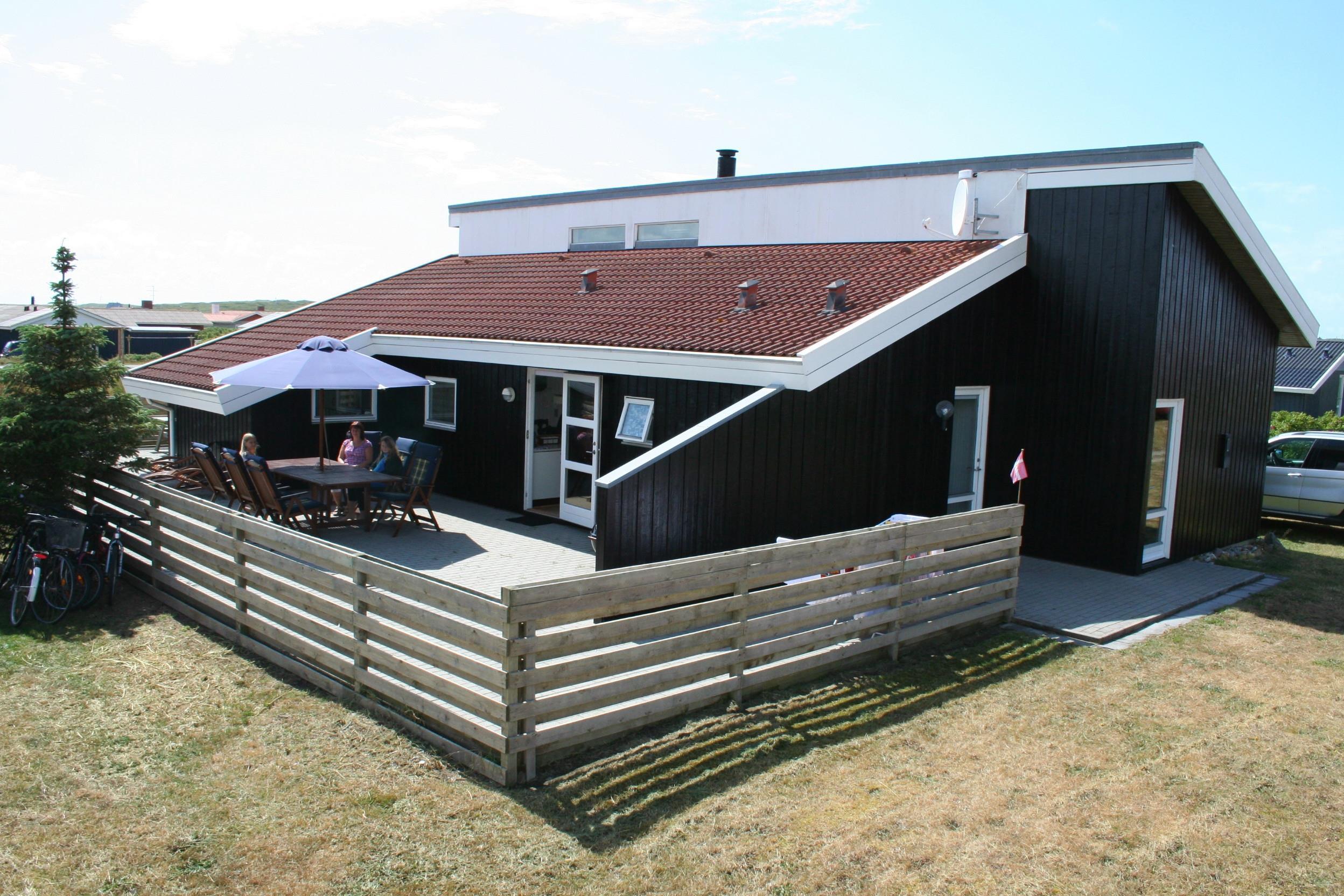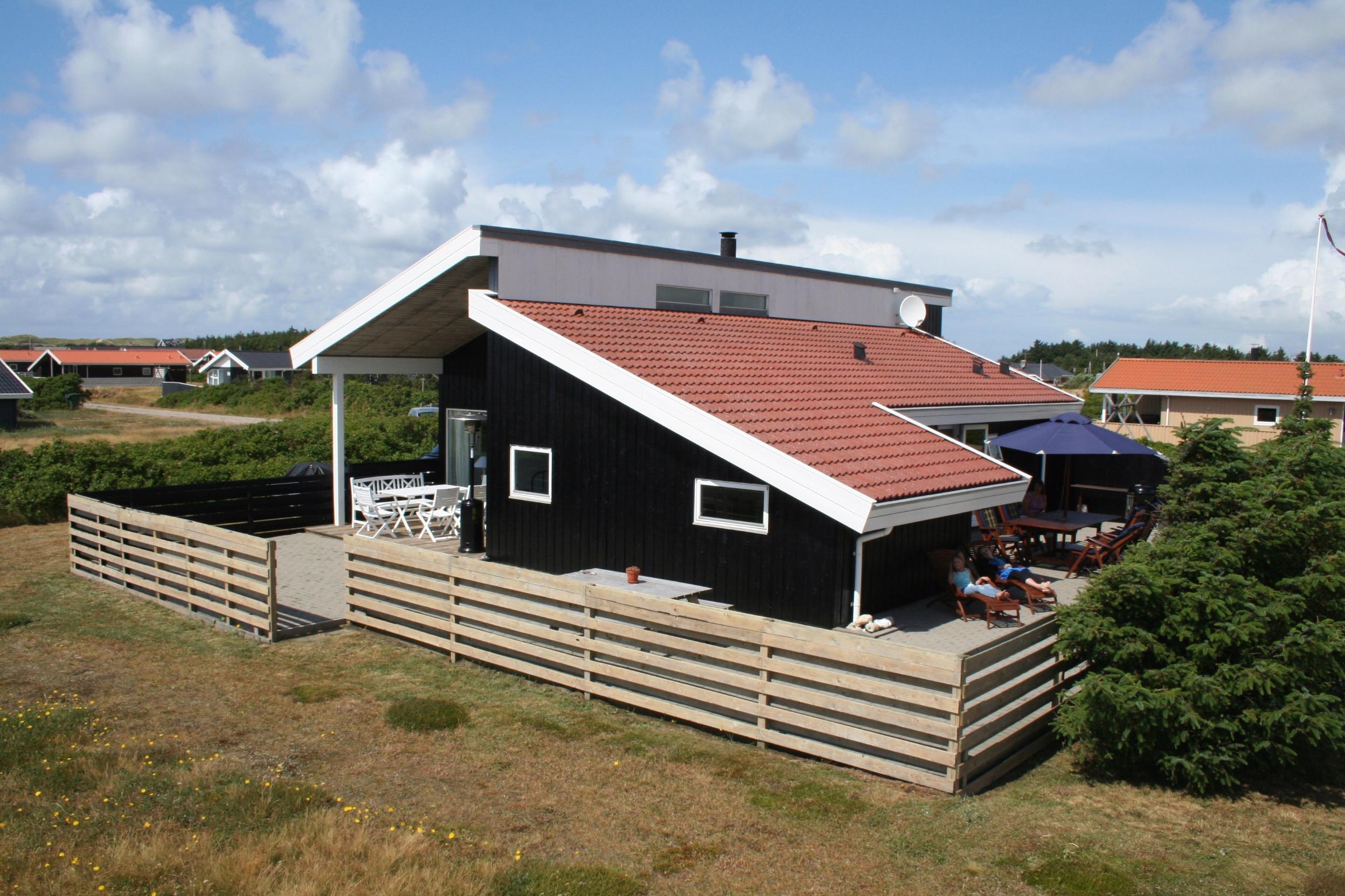 Dette flotte arkitekttegnede feriehus ligger på en naturgrund kun 300 m fra Vesterhavet og 200 m fra cafeteria (åben i sæsonen). Afstanden til Ferring Sø er kun 600 m. Huset er renoveret i 2009 og fremstår lyst og venligt med store vinduer og terrassepartier. Stuen er indrettet med moderne og komfortable møbler, CD, DVD, radio, TV med danske og tyske kanaler. 4 rummelige soveværelser: 1DS + 1DS + 1DS + 1DS. Badeværelse: Toilet, håndvask og bruser, sauna og gulvvarme. Godt indrettet køkken som ligger i forbindelse med stuen. Køkkenet indeholder Glaskeramisk komfur, køleskab, og opvaskemaskine. i udhuset står der en 120 l fryser. Til de små er der højstol. Vaskemaskine. Husdyr er ikke tilladt. Ikke rygerhus.