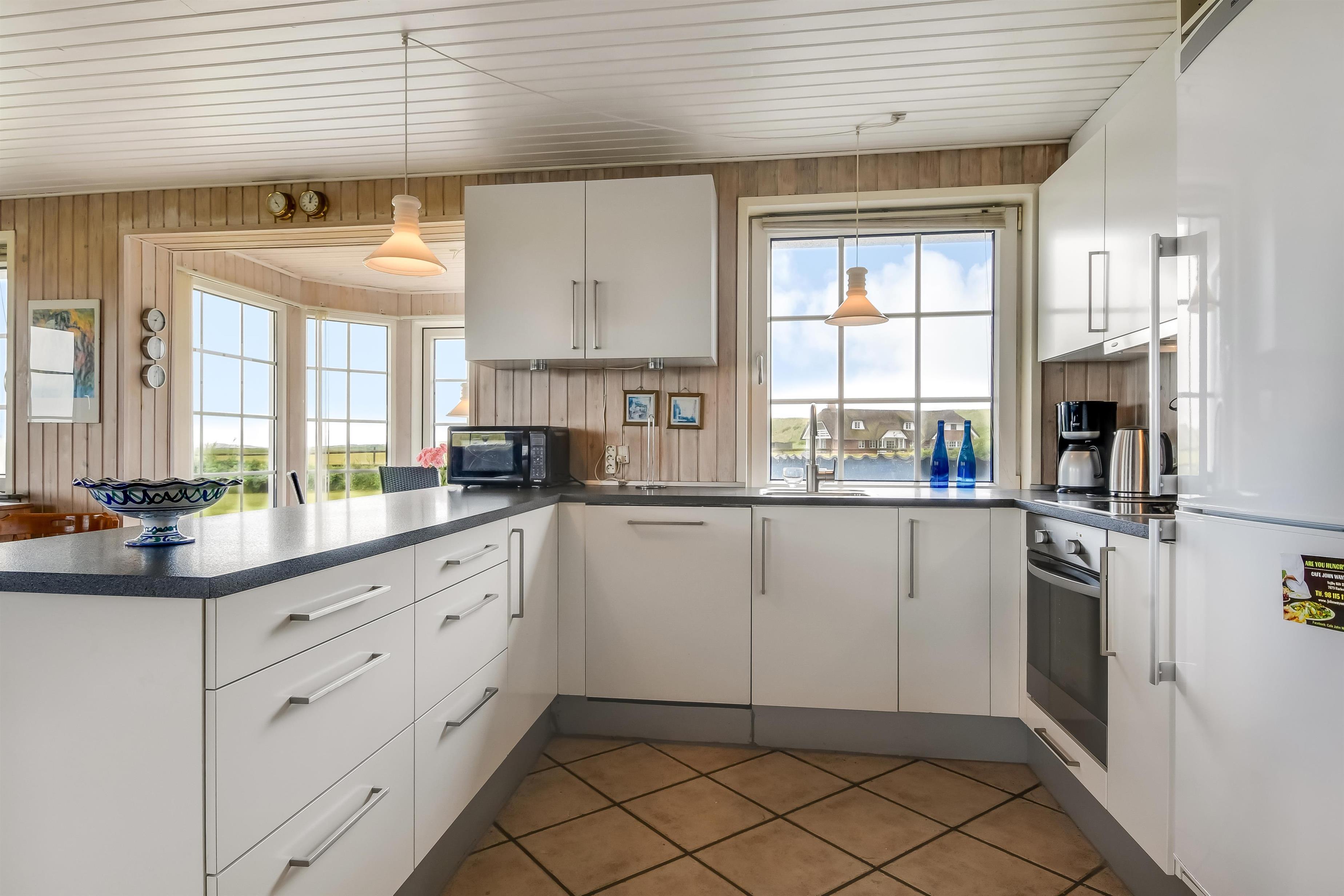 Meget flot 2 etagers hus som er rummelig indrettet. I stueetagen er der kombineret køkken og stue med klinkegulv. Køkkenet er moderne indrettet med alle tænkelige faciliteter. Glaskeramisk komfur, emhætte, køle-/fryseskab, mikroovn, opvaskemaskine. Stue med lædermøbler, F-TV med danske og tyske programmer samt Chromecast til streaming af TV / Radio / Apps, som I selv har abonnement til . DVD- og CD afspiller. I stue og køkken er der gulvvarme. Dejlig brændeovn og varmepumpe som sørger for en behagelig varme og en billigere elregning. Ved køkkenet er der en lille havestue med vinduer fra gulv til loft og overalt indefra og udefra huset er der en flot udsigt over Ferring Sø. Dejligt badeværelse med toilet, håndvask, bruser og gulvvarme. Fra stuen er der en trappe op til 1. sal hvor der er en ekstra stue med lædermøbler og TV. Her er der også panoramavinduer og en fantastisk udsigt over Ferring Sø. Her findes også et værelse med en DS. I stueetagen findes der også et soveværelse med 1DS. På 1. sal er der to små balkoner som vender ud mod Ferring Sø. Ikke rygerhus. 1 husdyr er tilladt.